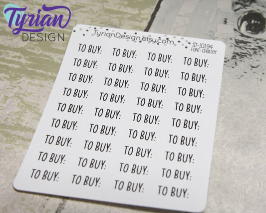To Buy Stickers | 36 Stickers | .68 x .35" Each | Charley Font