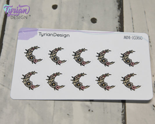 Mini Spring Moon Stickers | Mini Sheet of Flower Moons | 10 Stickers | .6 x .65" each | 3.375" x 2.125" Mini Sheet | White or Clear Matte