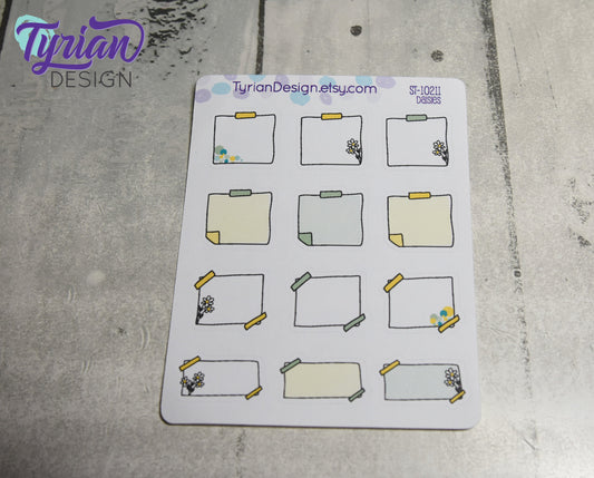 List Sticky Note Stickers | Different color options | Hand Drawn stickers | Layering Stickers | Over washi stickers | White Matte