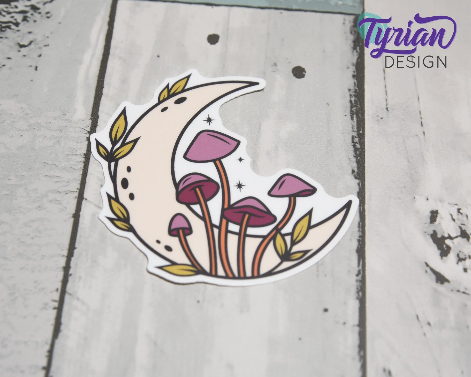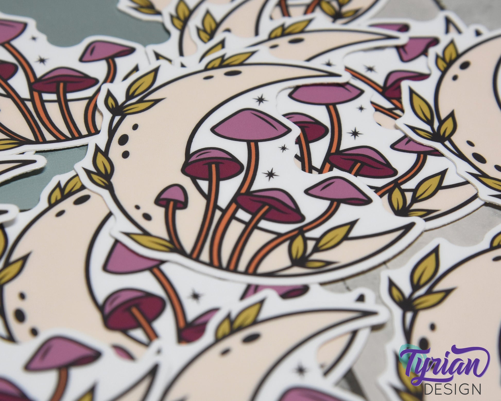 Autumn Moon Vinyl Sticker | high quality weather proof vinyl | 3 x 3" | Moon with Mushrooms Pastel sticker | Autumn Shades