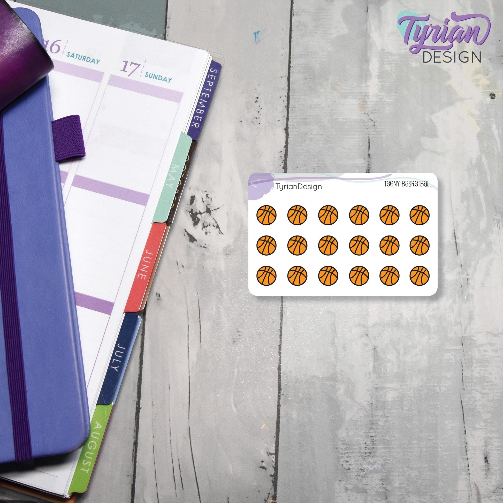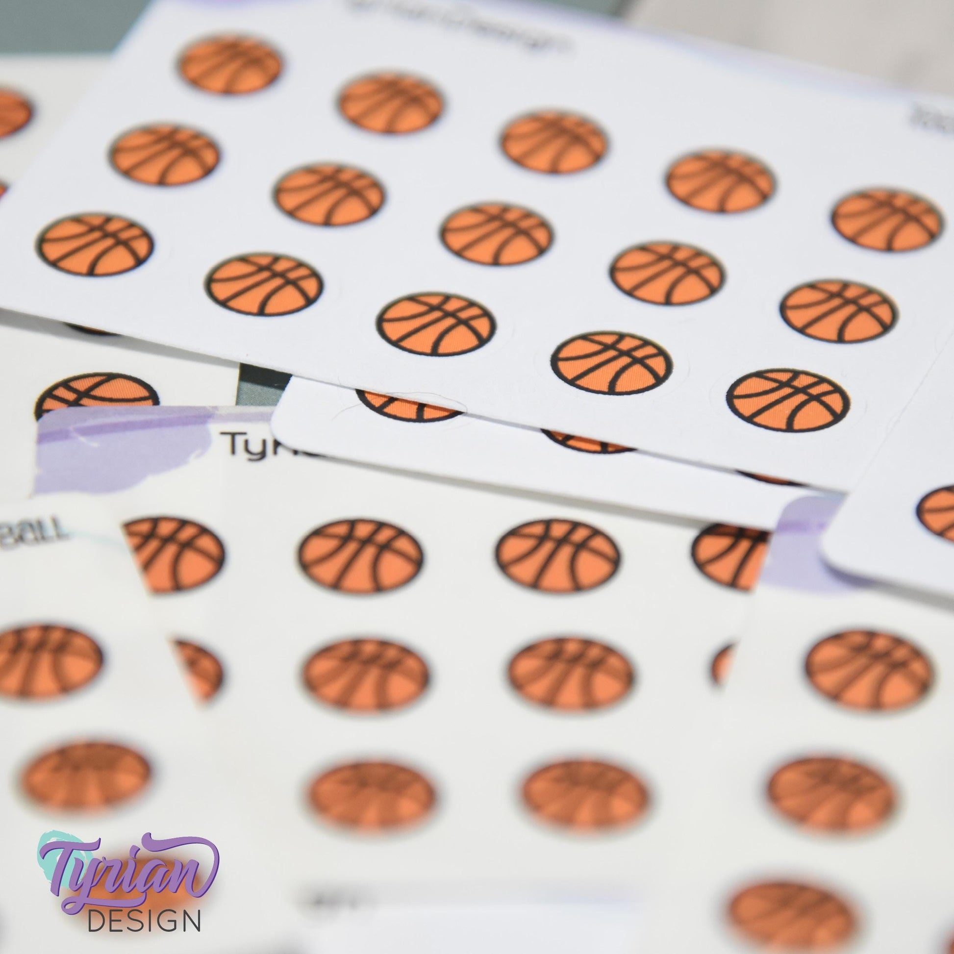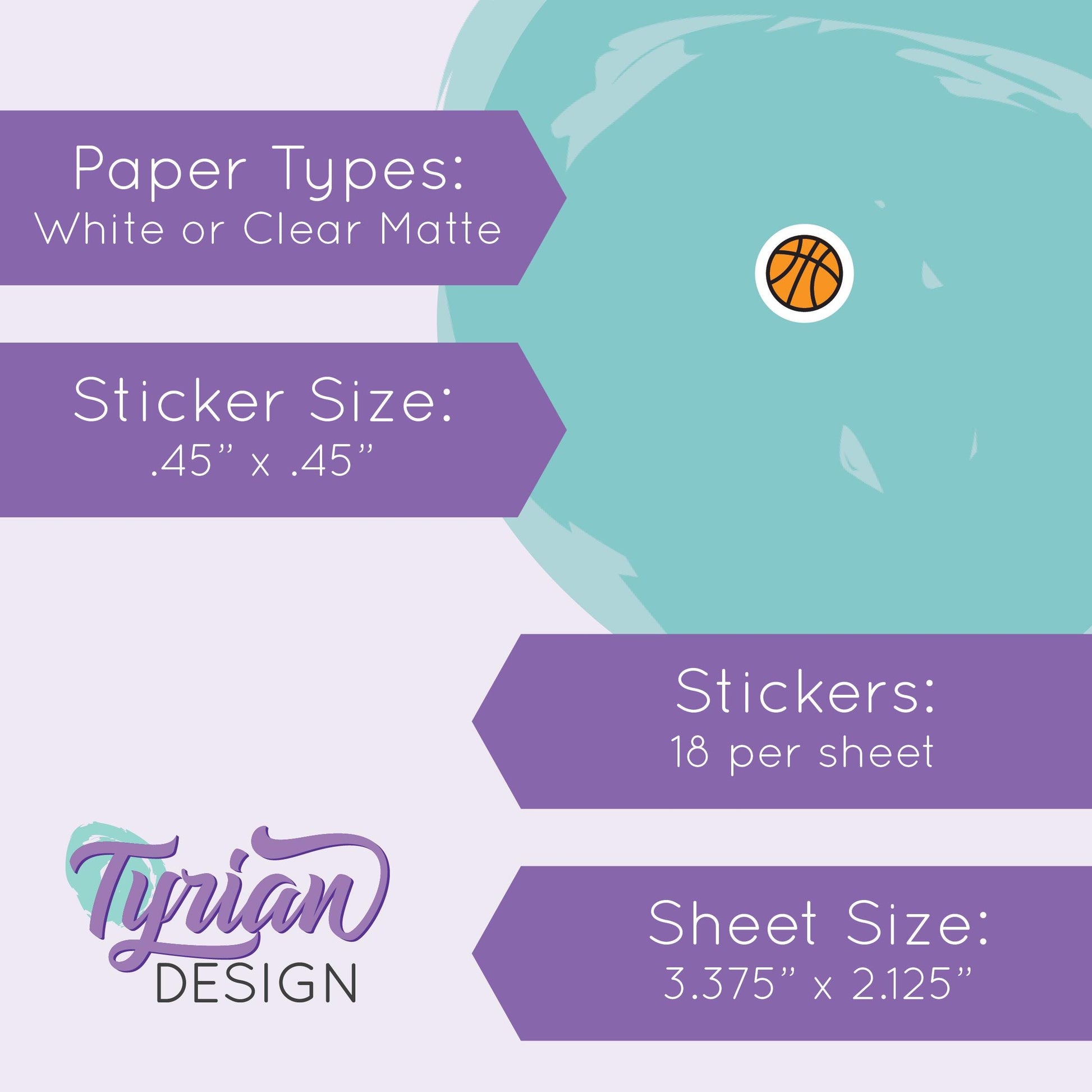 Basketball Stickers | Tiny Basketball stickers | Mini sheet | 18 stickers | .45 x .45" each | Basketball icon | White or Clear Matte