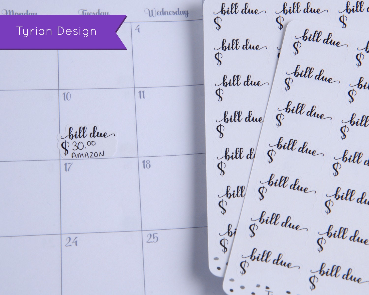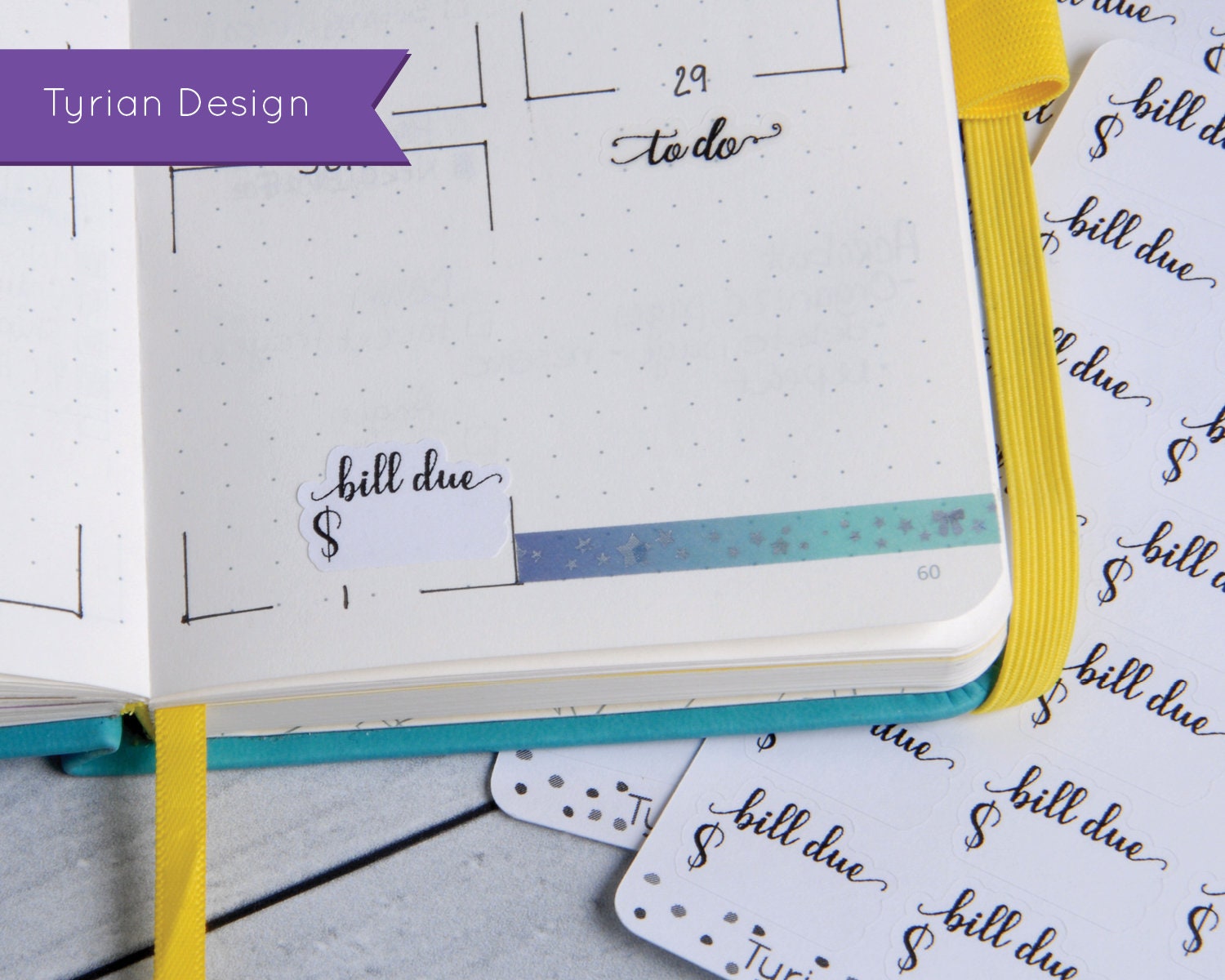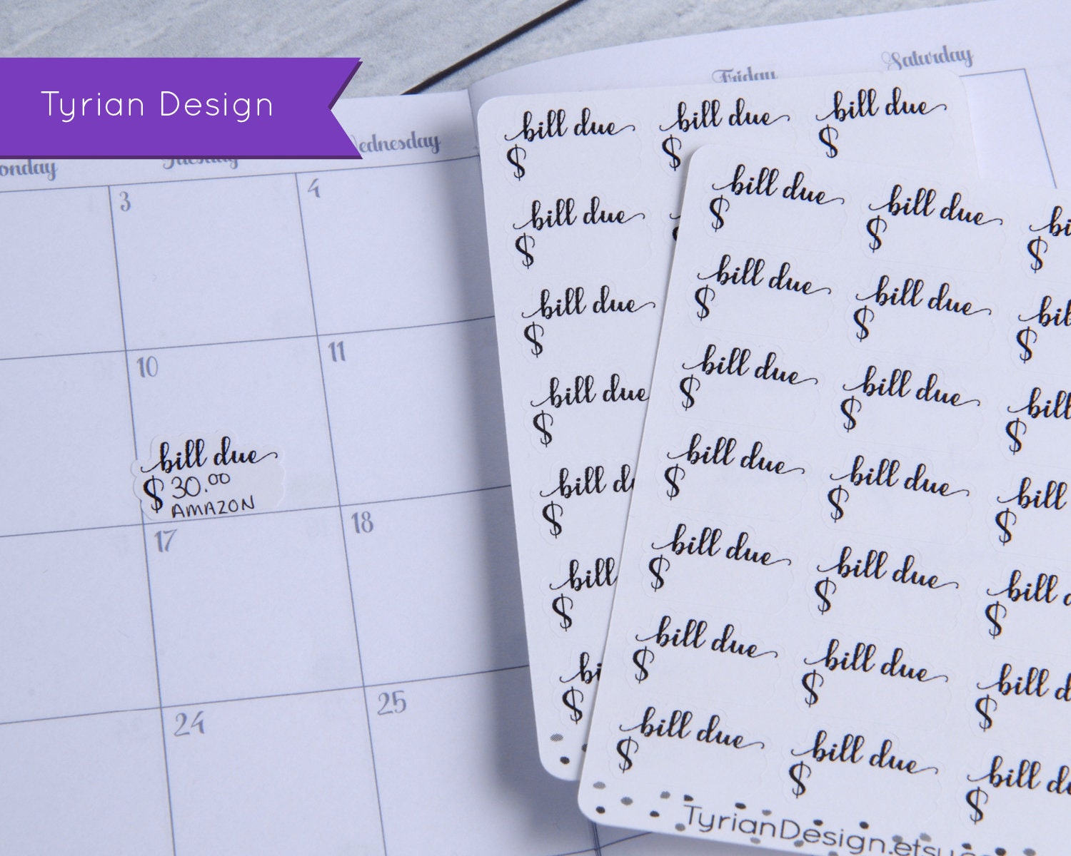 Bill Due Stickers (Small) for Planners and Journals. (Shown on an Pocket Scribbles that Matter Journal)