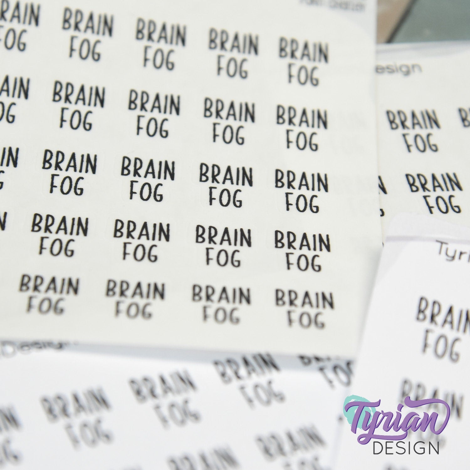 Brain Fog Sticker | Word Sticker | 25 Stickers | .52" x .61" Each | 3.5 x 4.5" Sheet | Charley Font | White or Clear