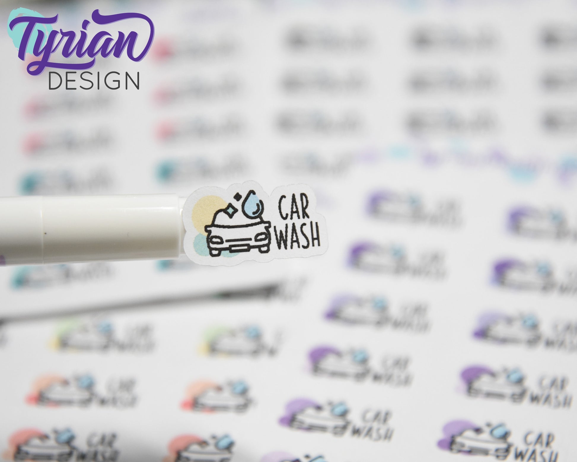 Car Wash Icon Stickers | 18 Stickers | .9 x .5 | Icon Sticker