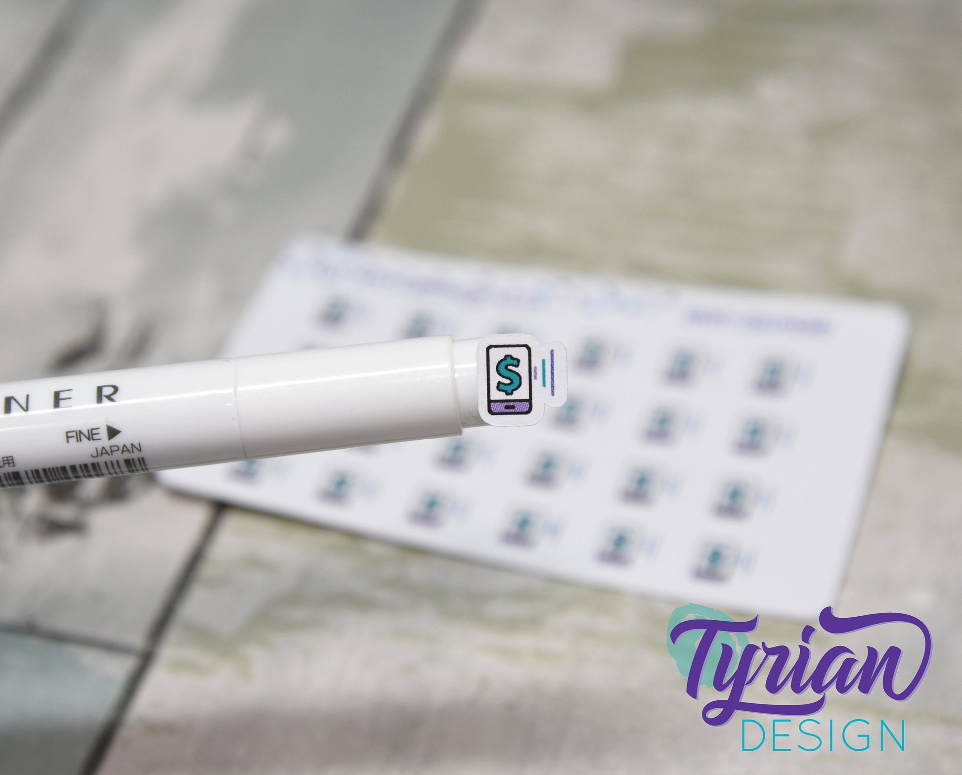 Cell Phone Stickers - Tiny Cell Phone payment stickers on a mini sheet - For small bullet Journals, Planner, Budget, or mimimalist planners