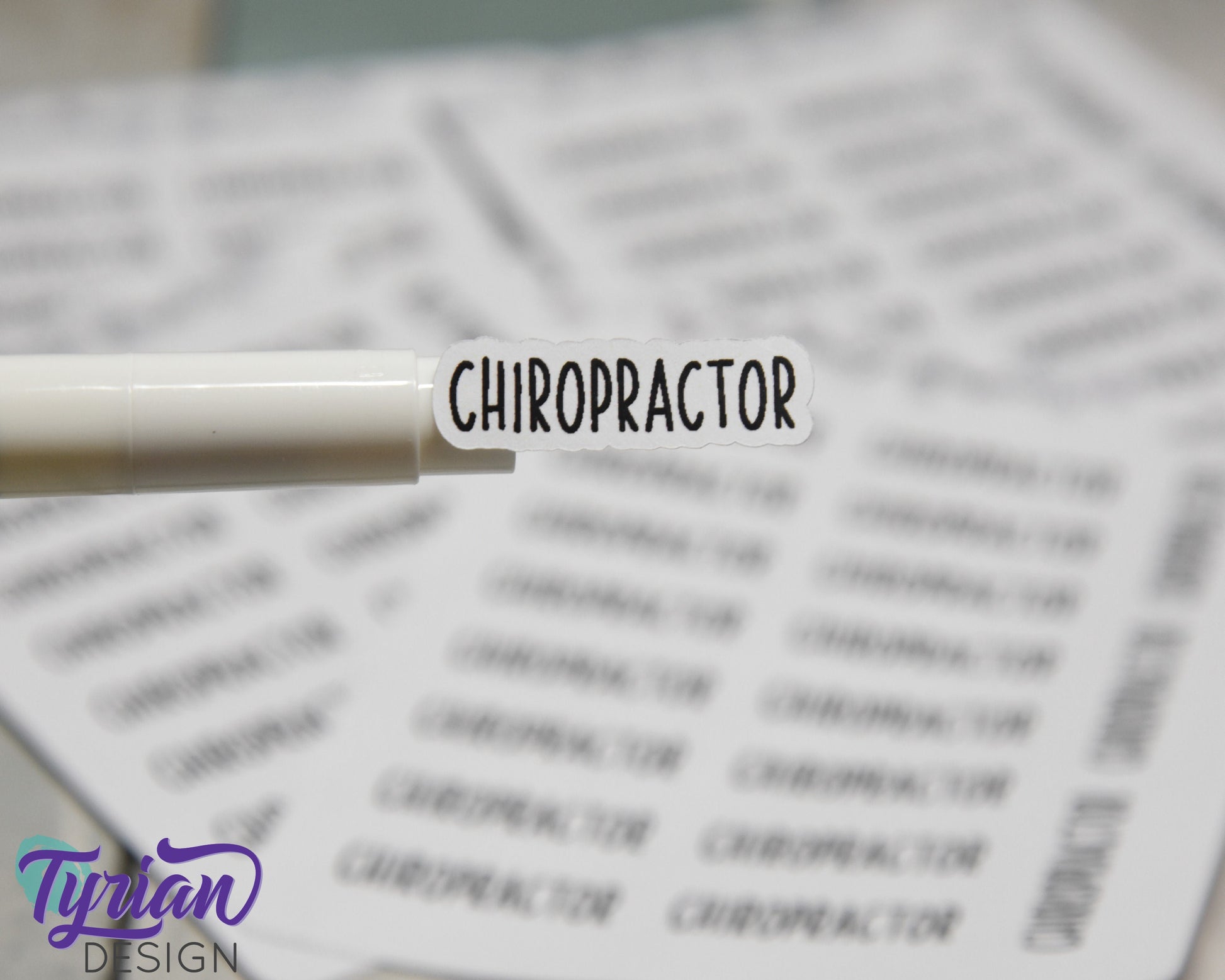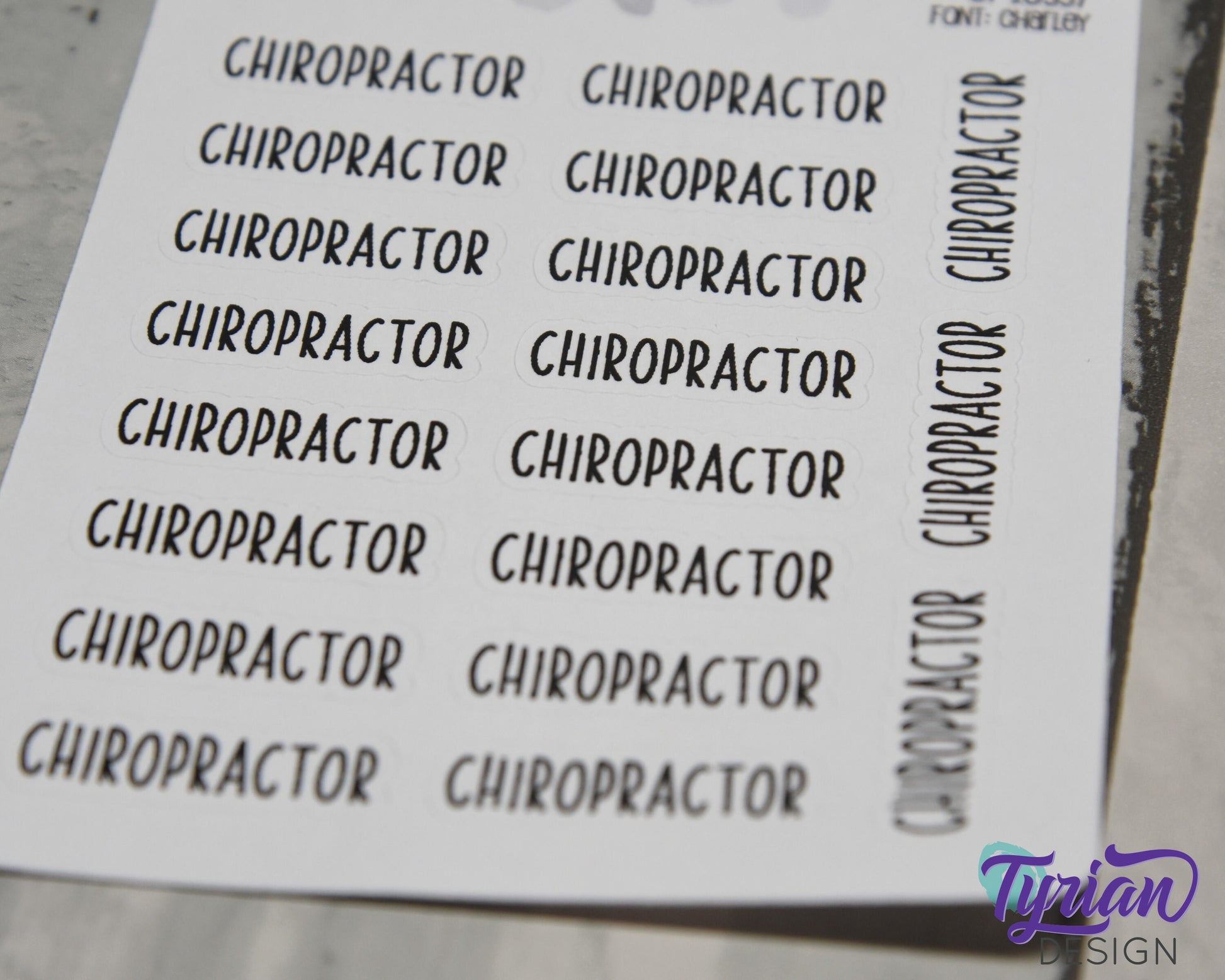 Chiropractor Stickers | .1.2" x .35" each | 19 Stickers | Charley Font