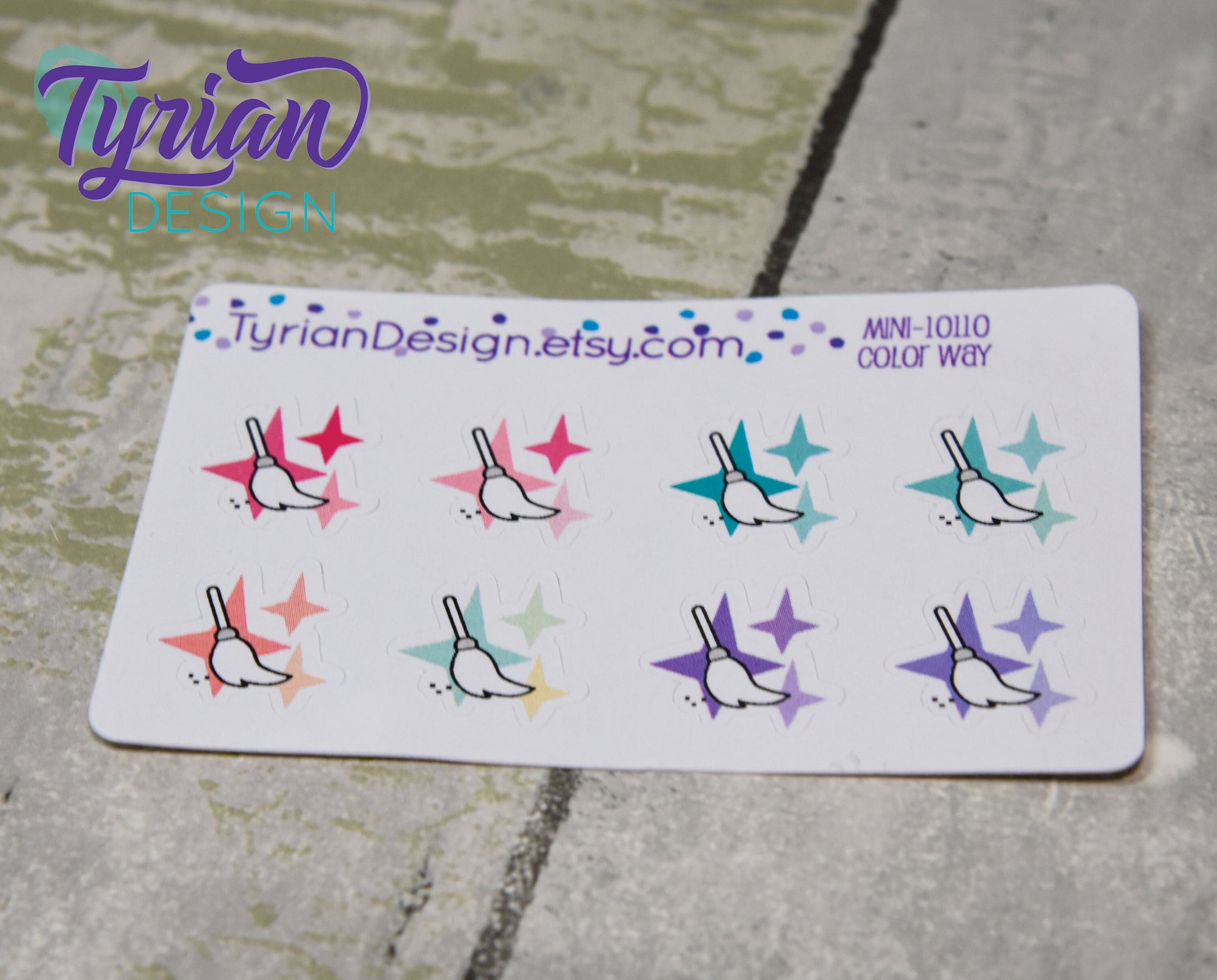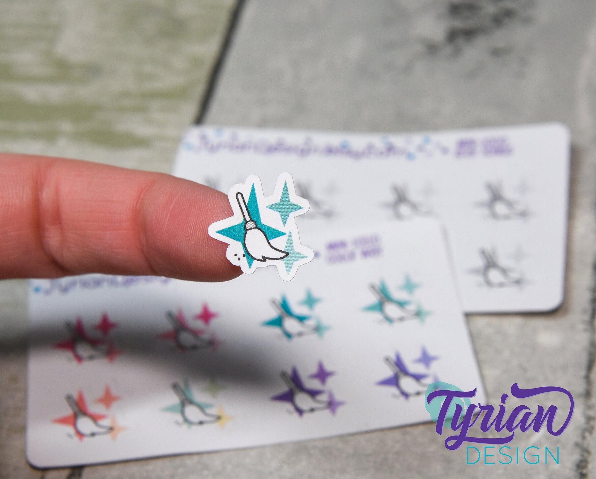 Cleaning Icon, Broom Stickers. Magic dust, Different color options. stickers for Planners, journals and calendars mini sticker sheet