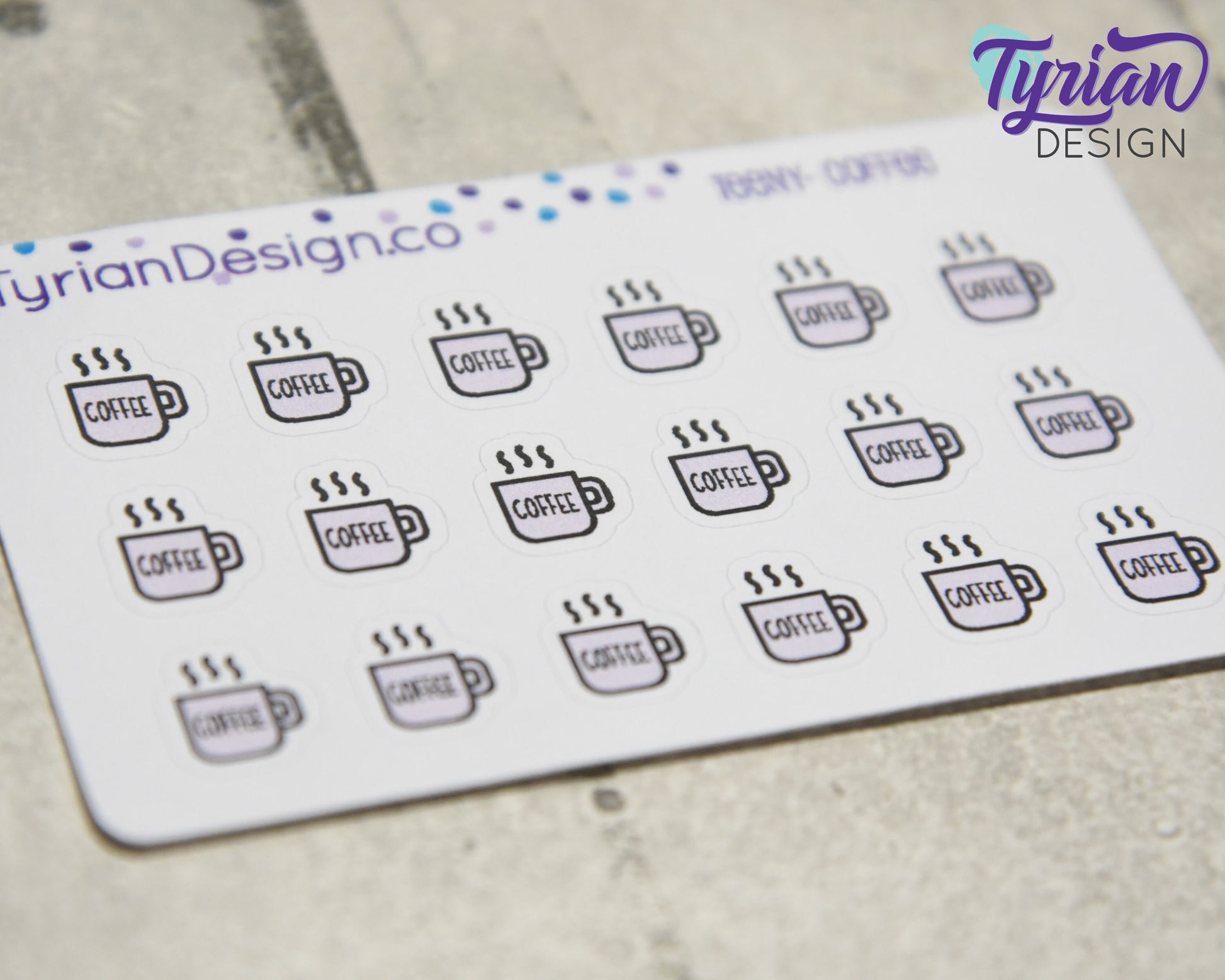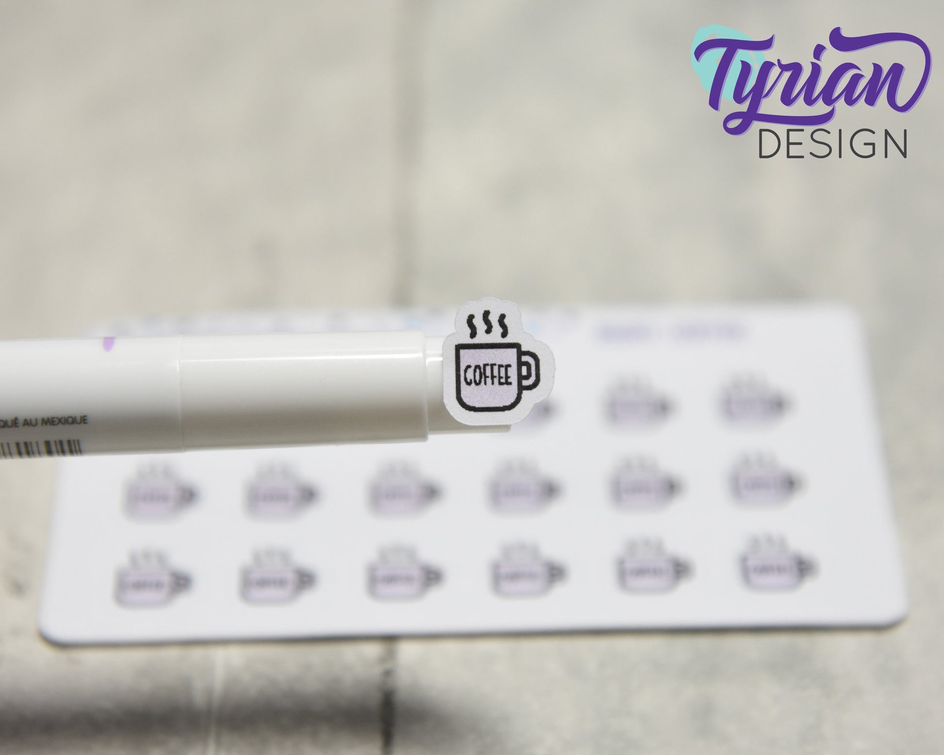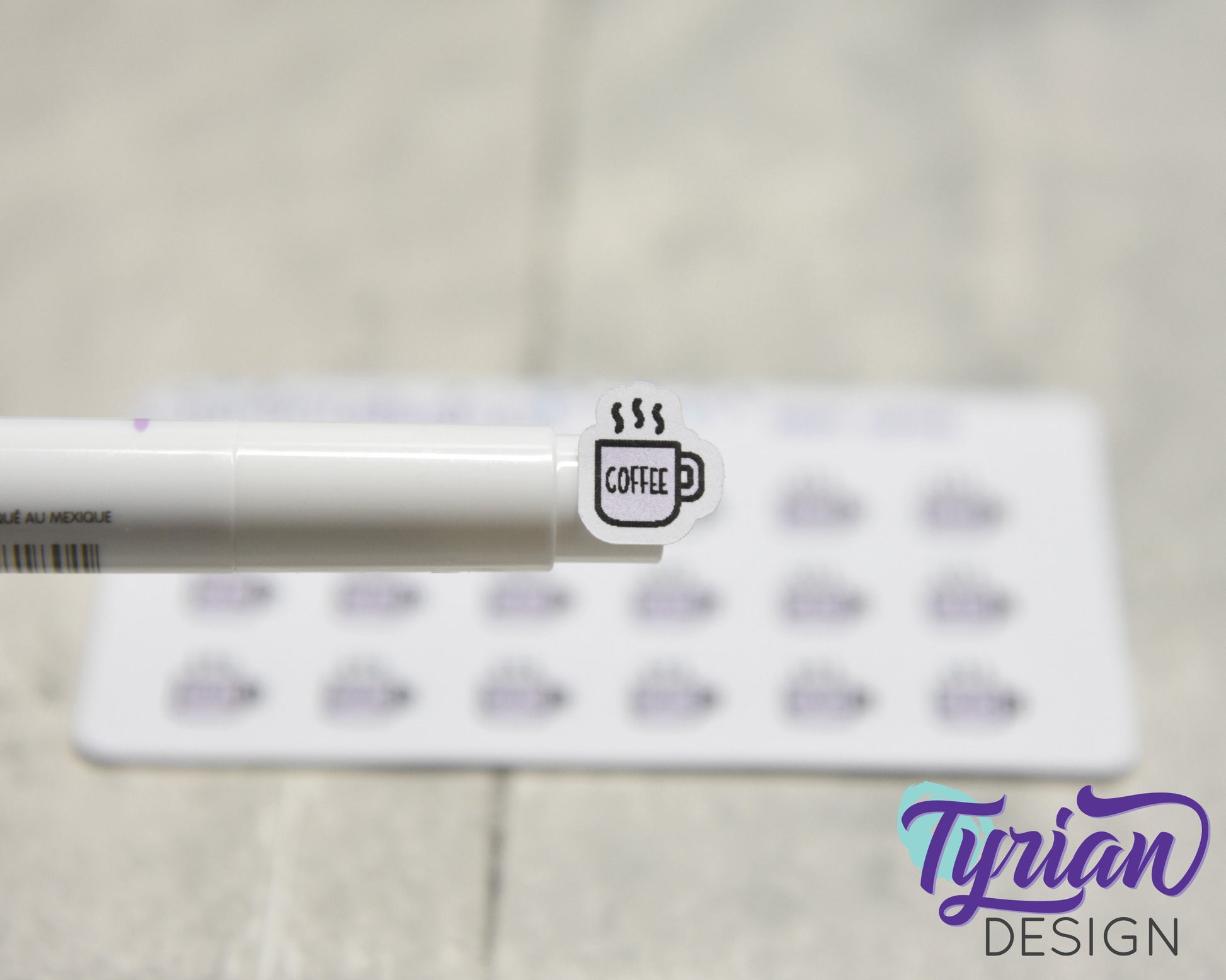 Coffee Icon Stickers |Tiny Coffee Mug on a mini sheet| Good morning Coffee | Icon Sticker | pocket planning | White or Clear Matte