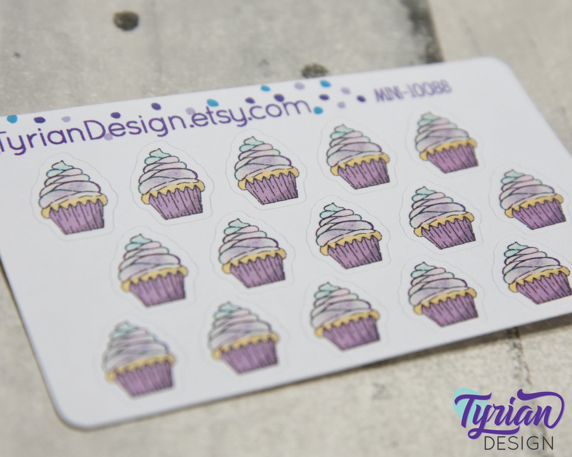 Cupcake Stickers Mini Sheet for Planners and Journals. mini cupcake stickers, birthdays, celebrations, clear or white matte stickers