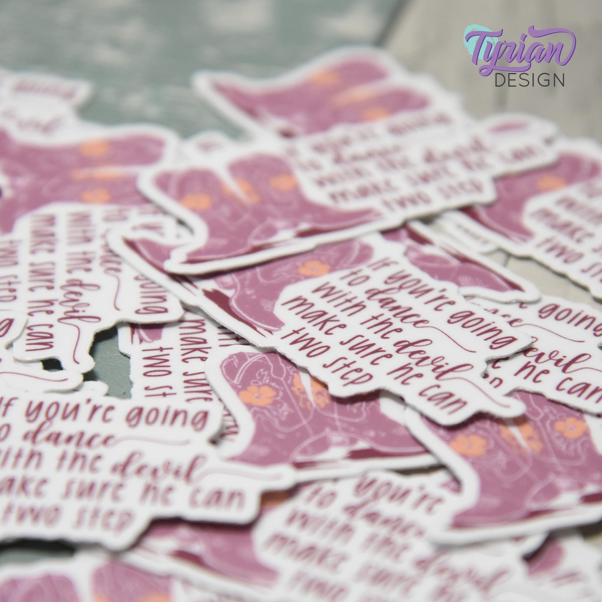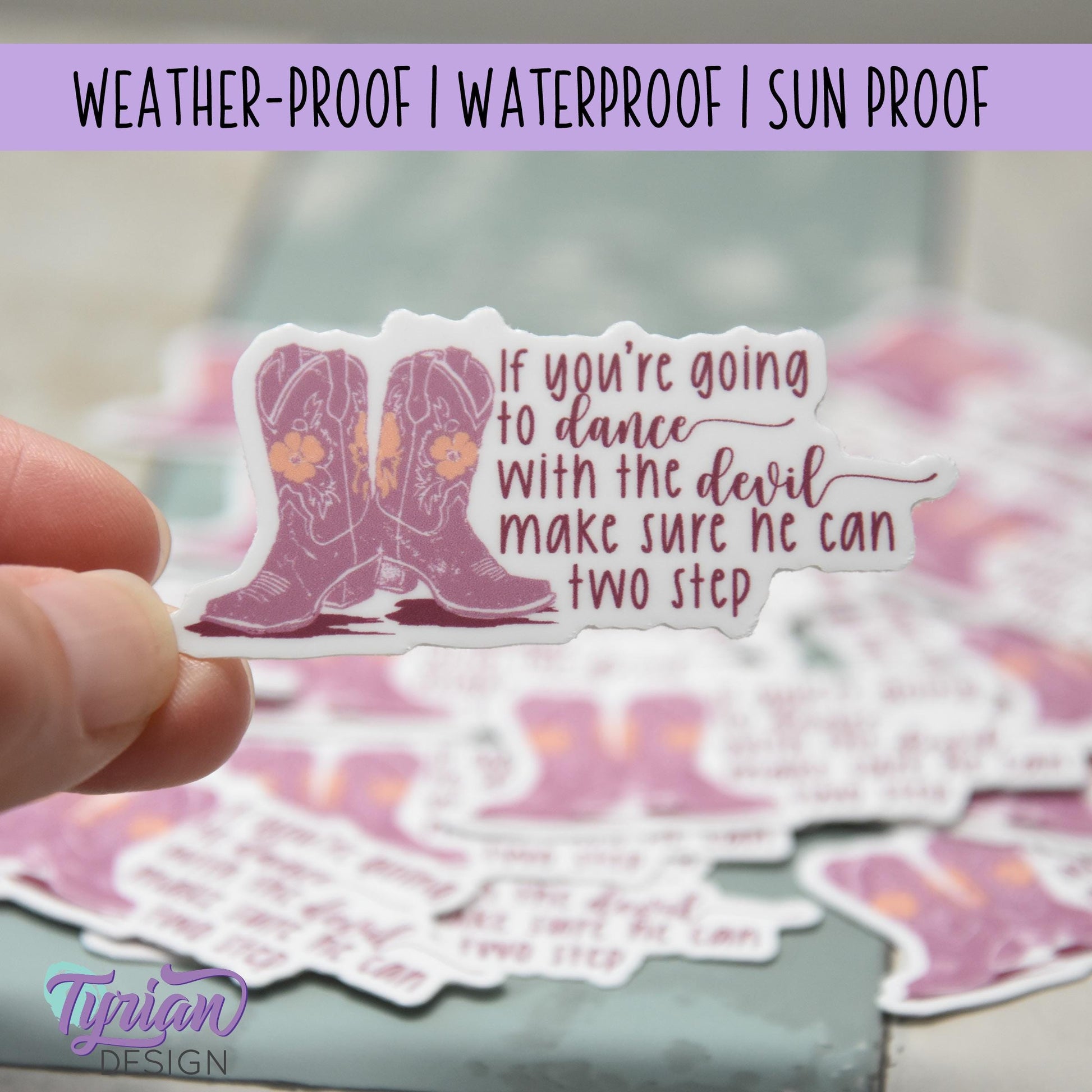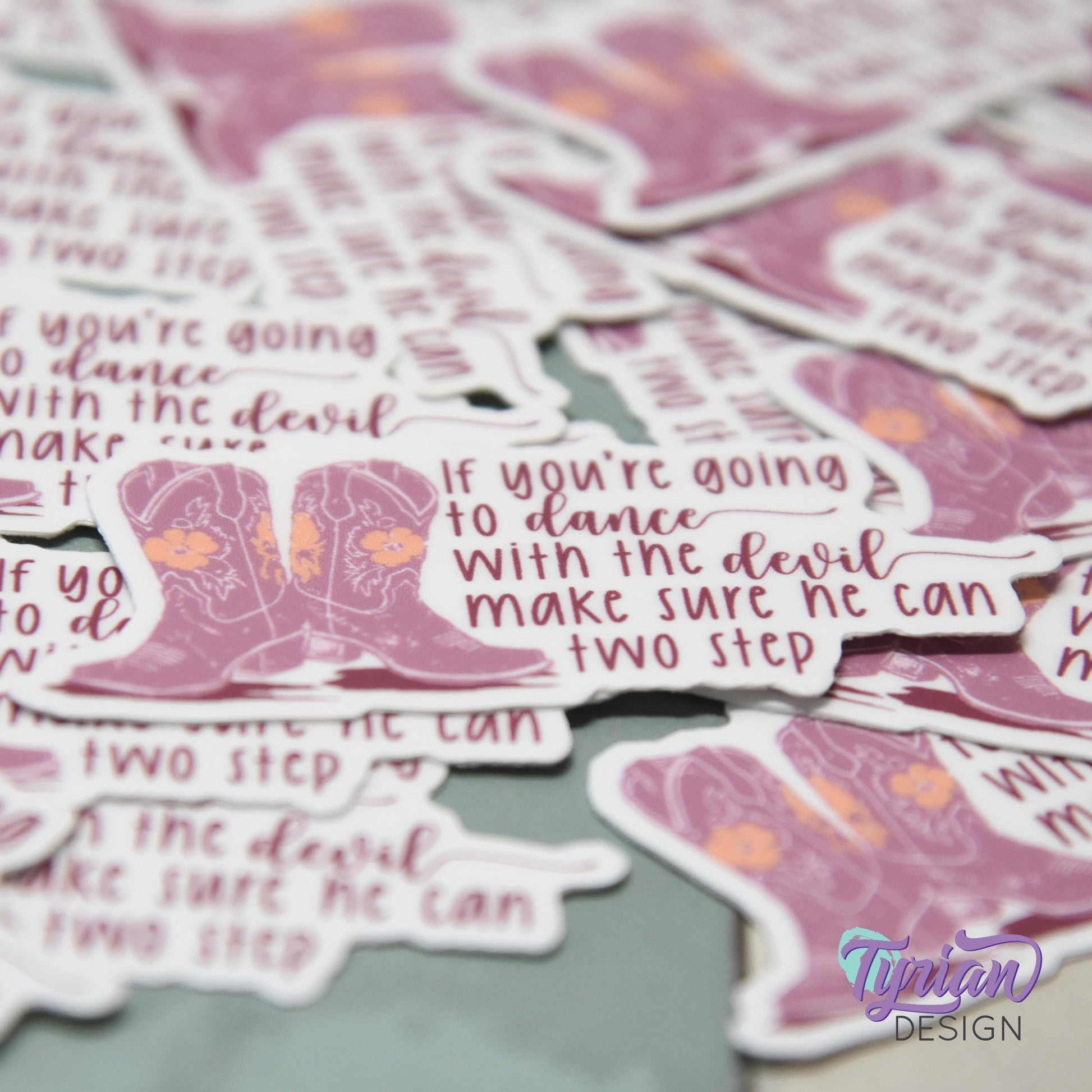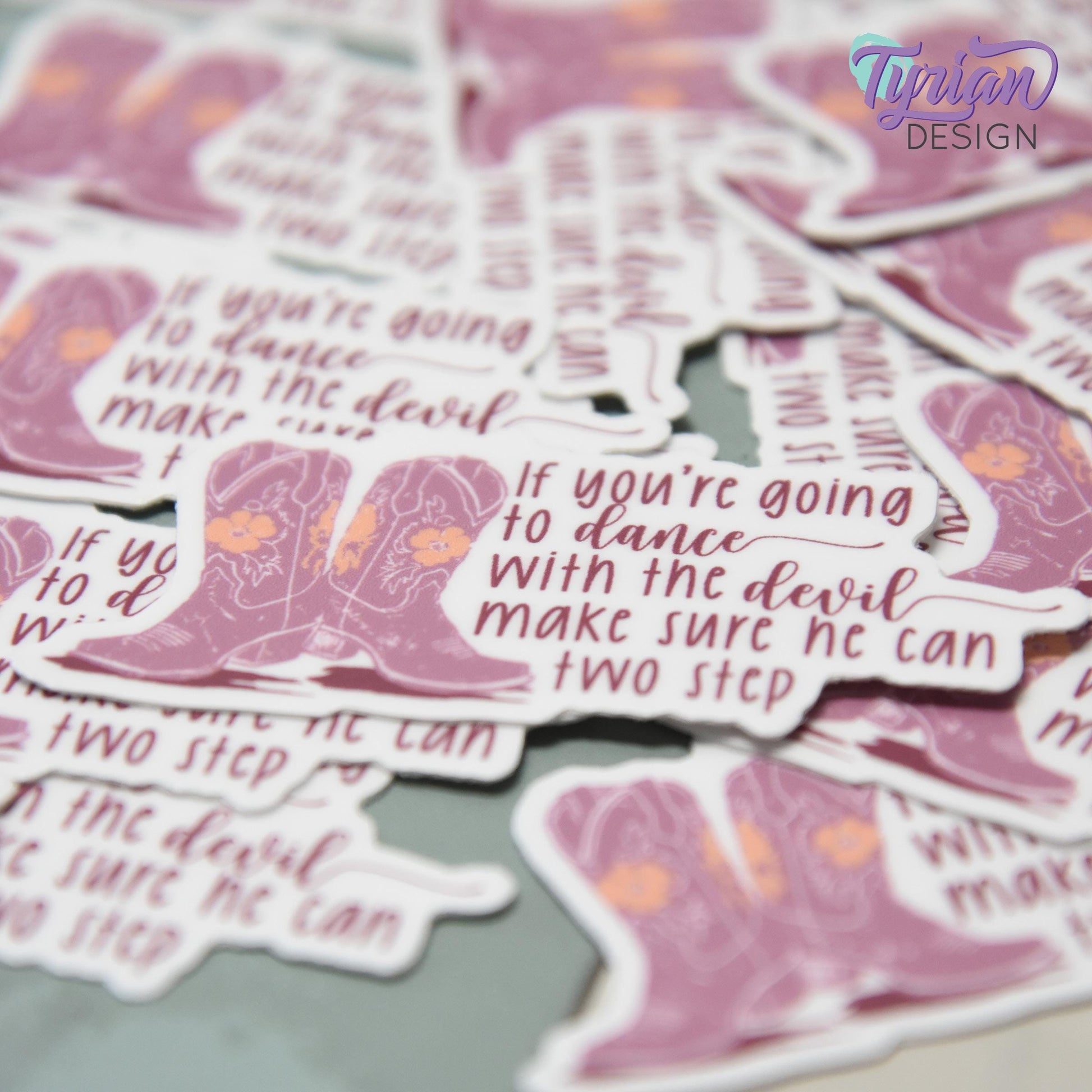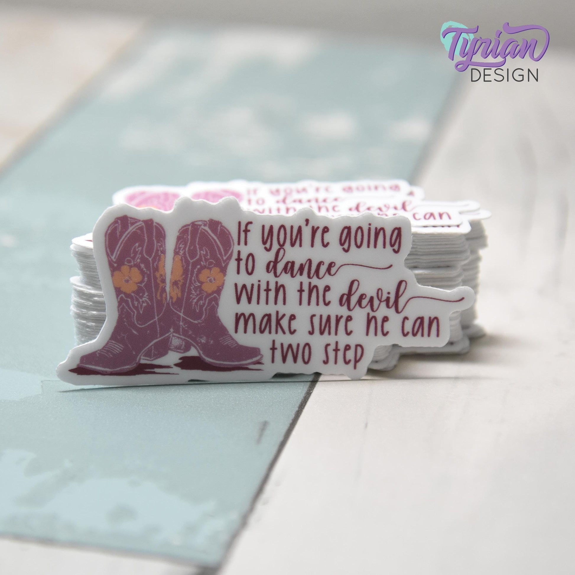 Dance with the Devil Vinyl Sticker | Cowboy Boots Sticker | Two Step Sticker | High quality weather proof vinyl | 2.5x1.2 inches