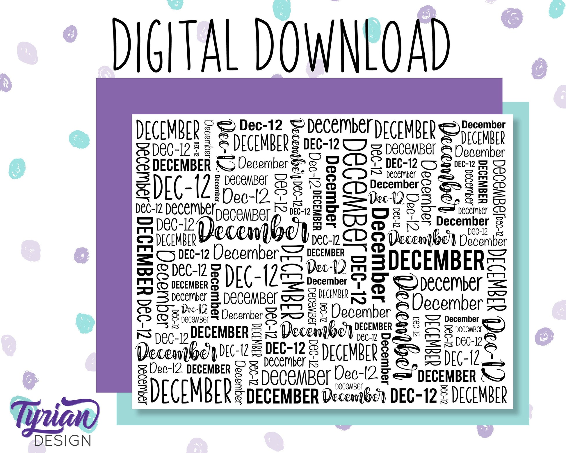Digital Paper - December Word Cloud Pattern - Printable letter size, Black and white file included