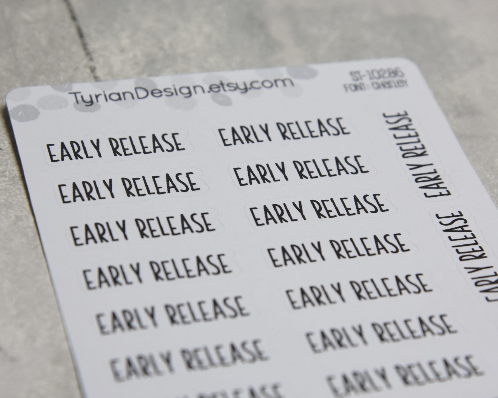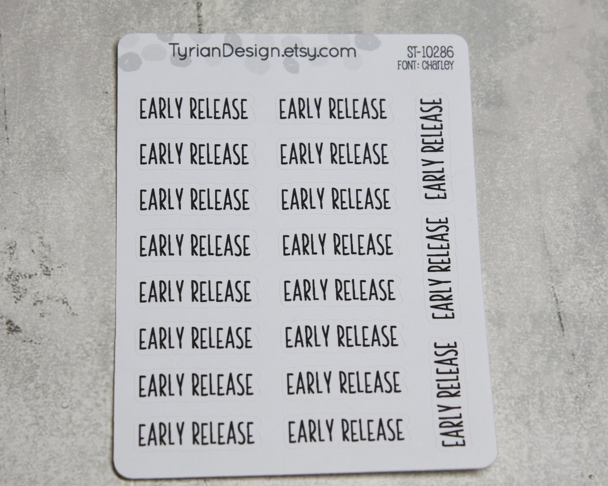 Early Release Stickers| 19 Stickers | 1.17" x .35" each| Charley Font