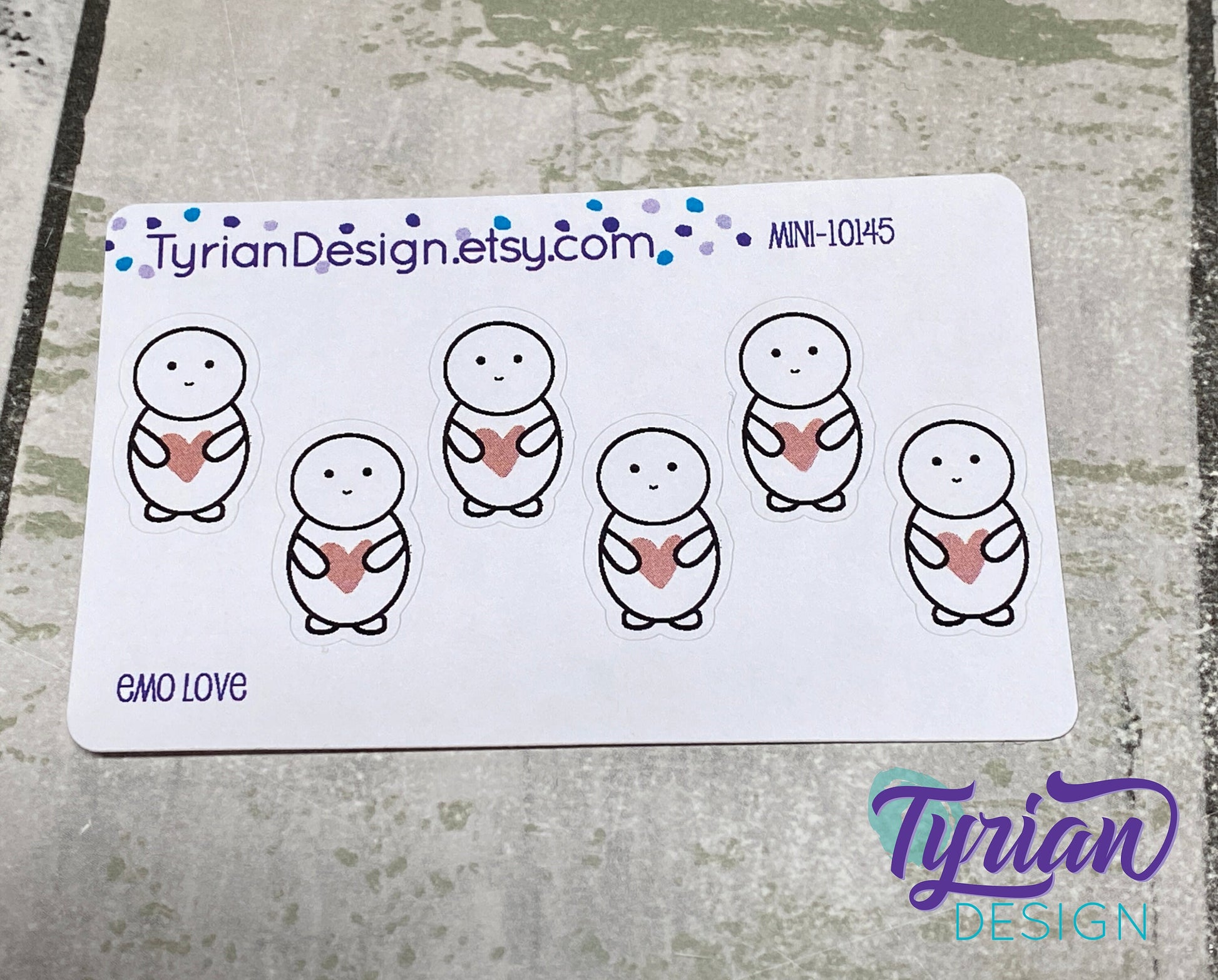 Emo Love character Sticker Mini Sheet. Emoji with faded red heart.