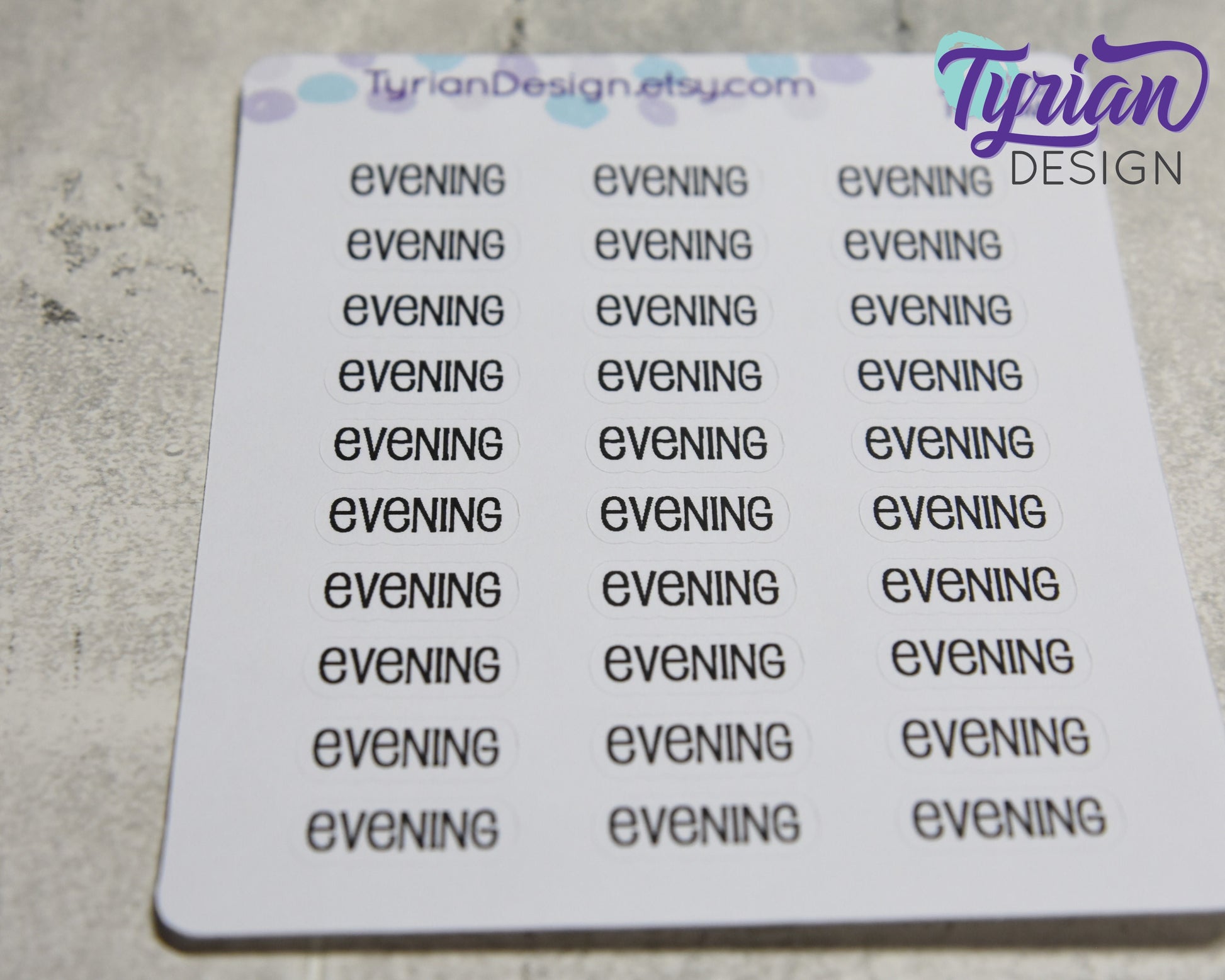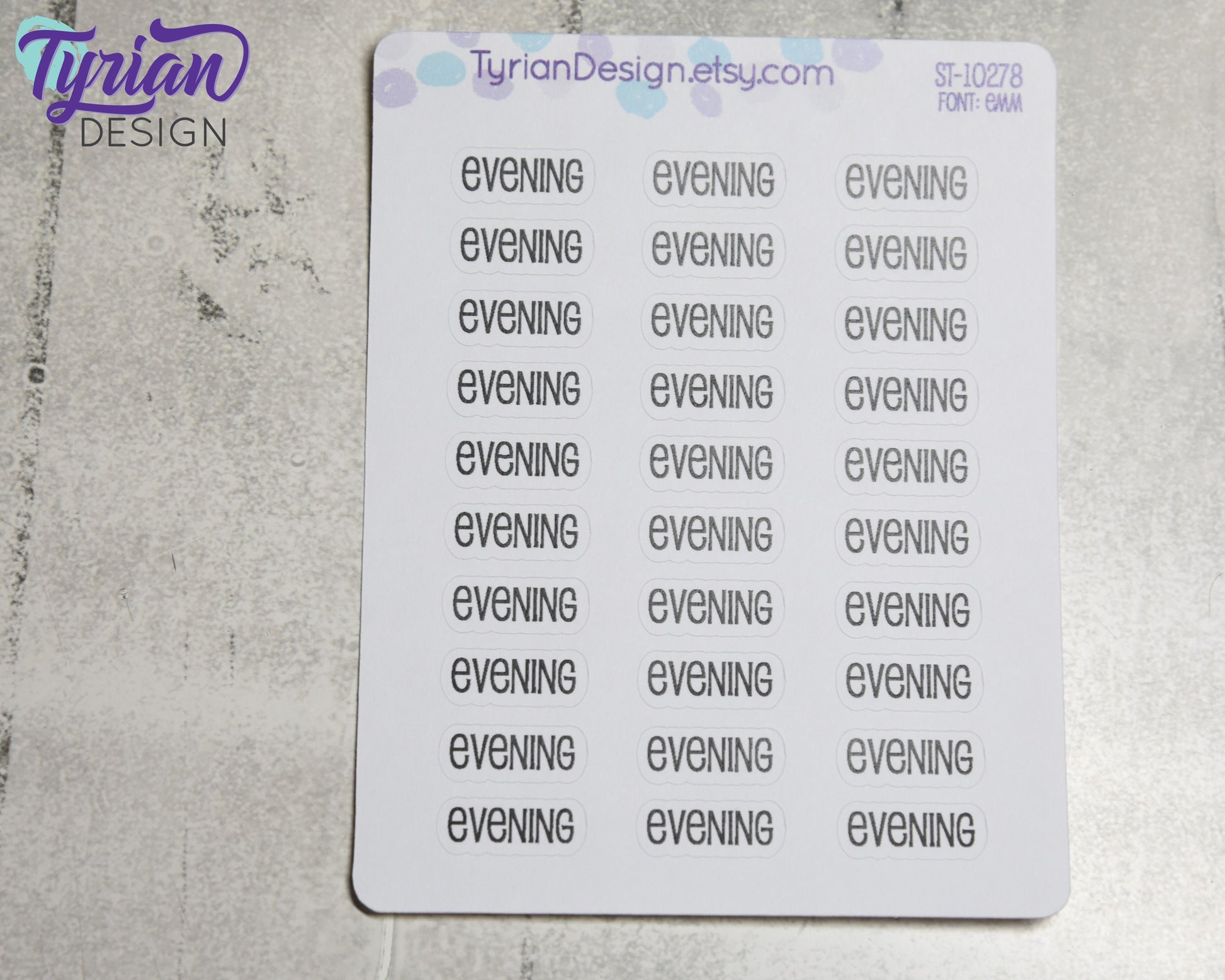 Evening Stickers | 30 Stickers | .75" x .3" Sticker size | Emm Font