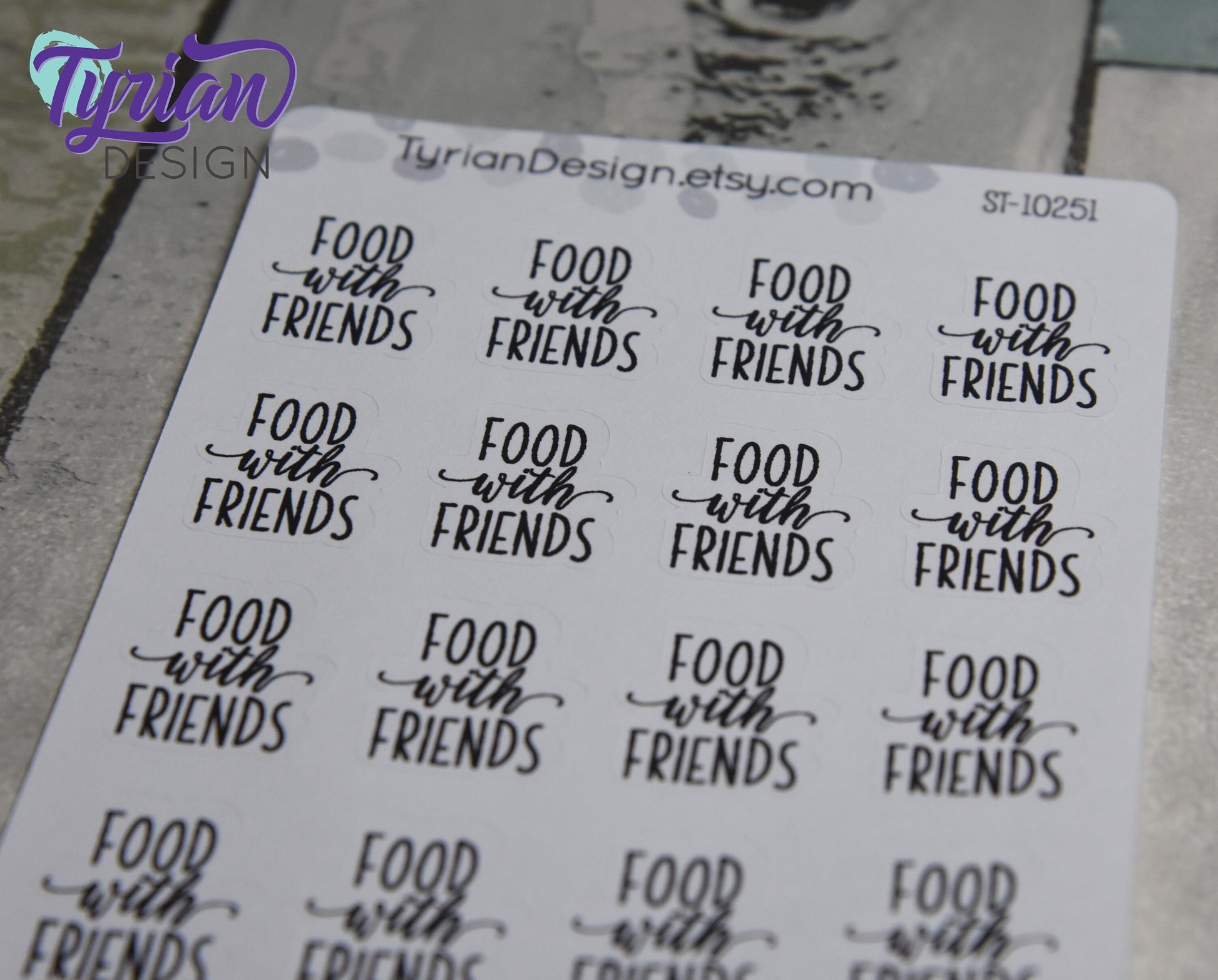 Food with Friends Stickers Sheet for Planners and Journals. Black Type, clear or white matte stickers - Dinner with Friends Stickers