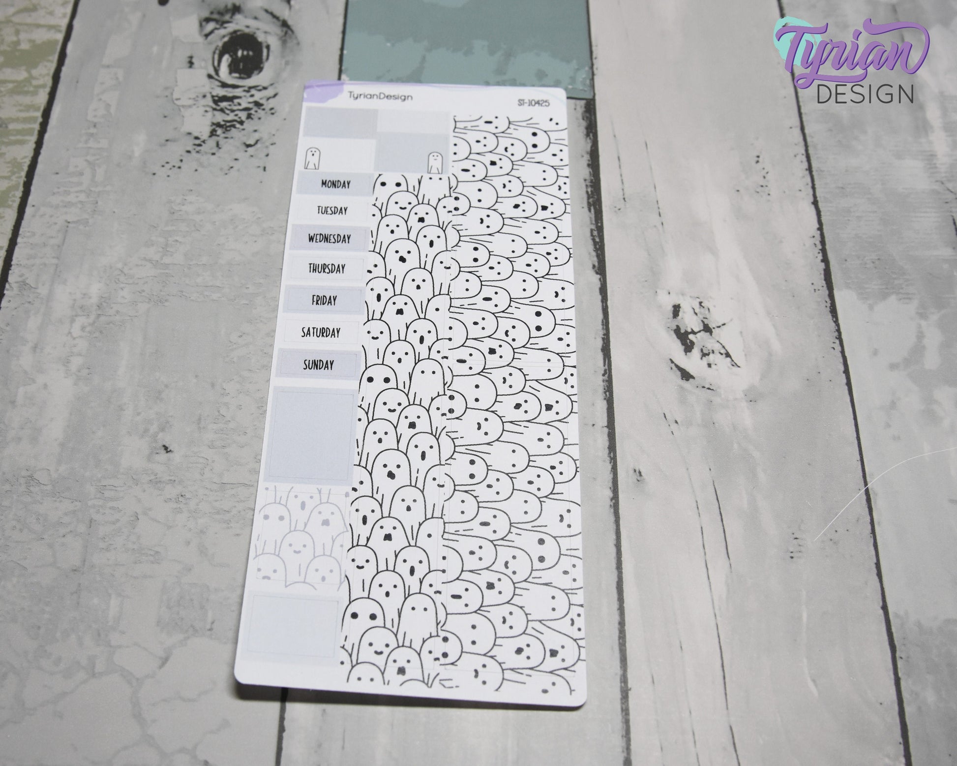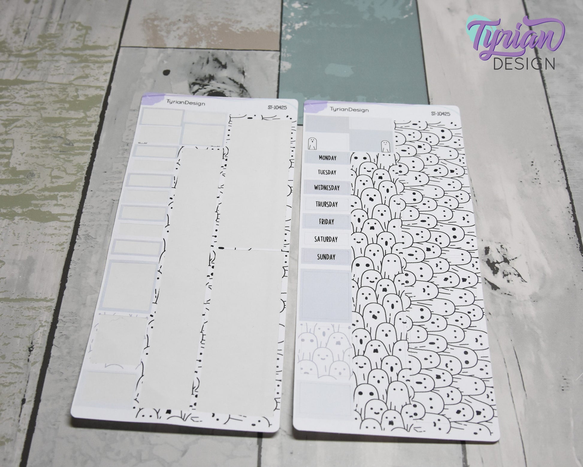 Ghosts Halloween Monthly Kit | Hobonichi Weeks | Monthly kit | Simple Hobonichi Kit | Sunday or Monday Start | 3.25x7.5 Sheet | 17 Stickers