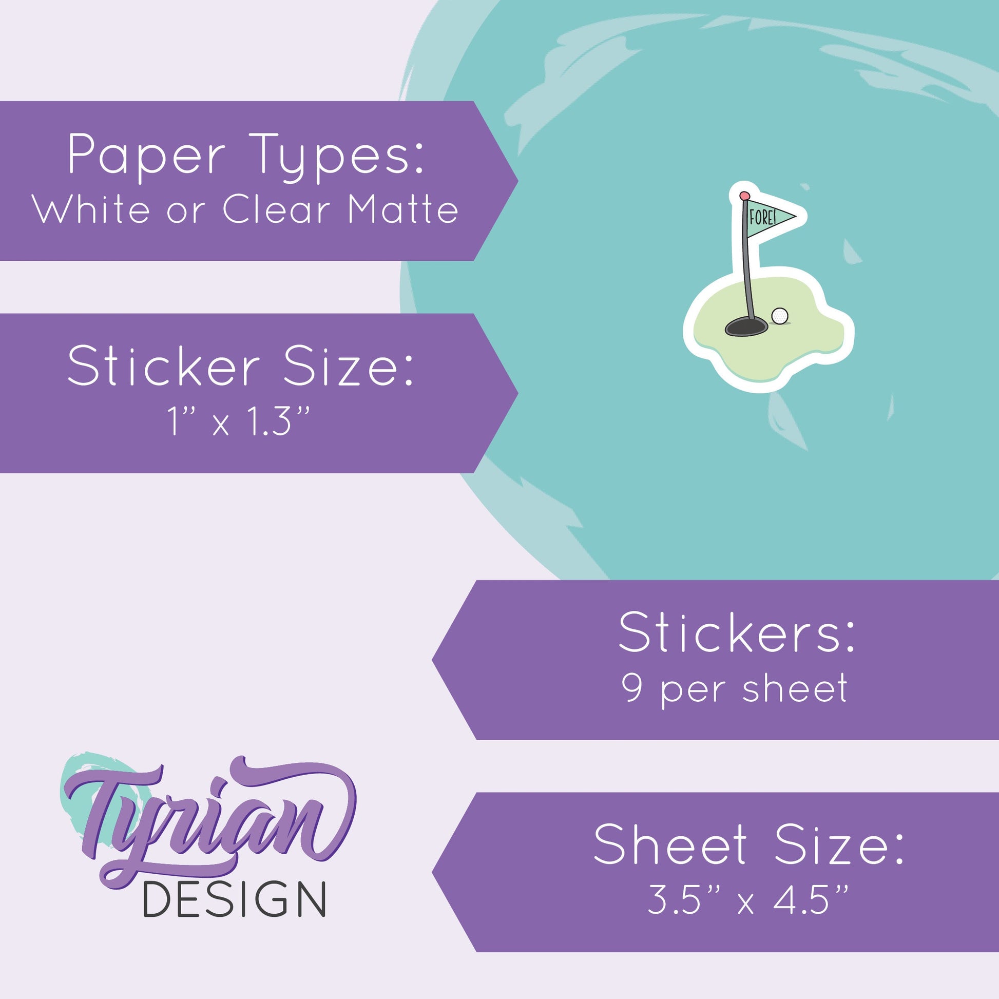 Golf Stickers | 9 Stickers per sheet | 1 x 1.3" each.