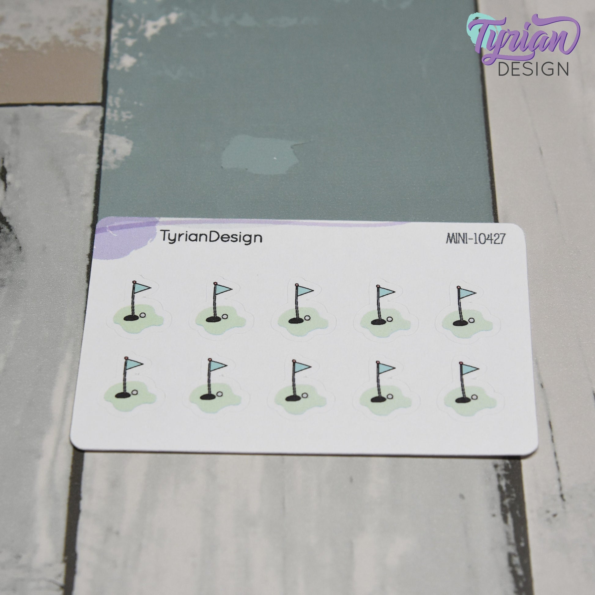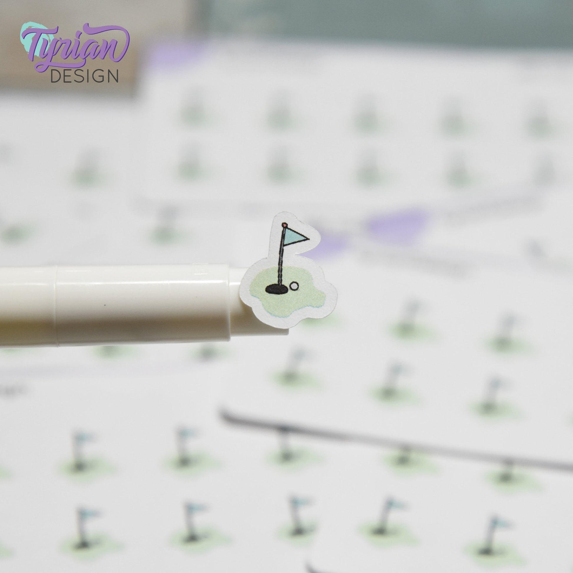 Golf Stickers | Mini Sheet of Golf Tee Time | 10 Stickers | .5 x .6" each | 3.375" x 2.125" Mini Sheet | White or Clear Matte
