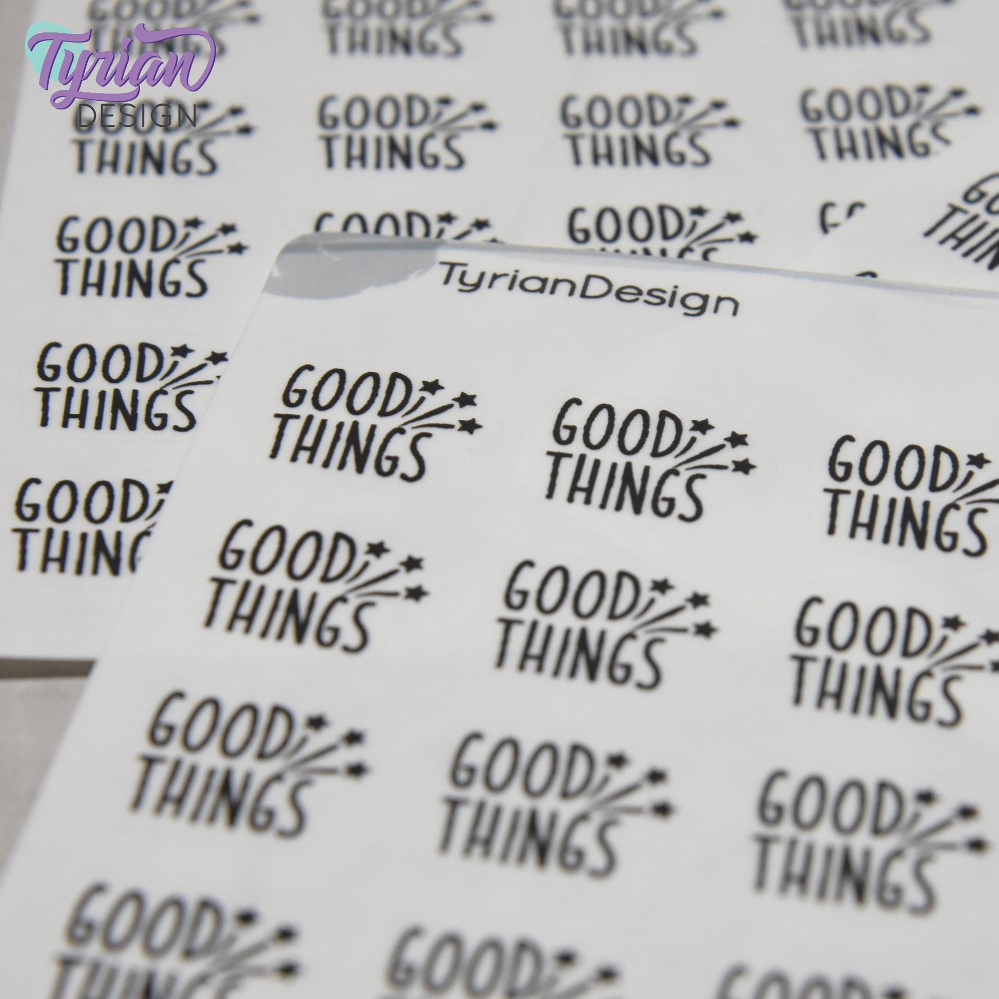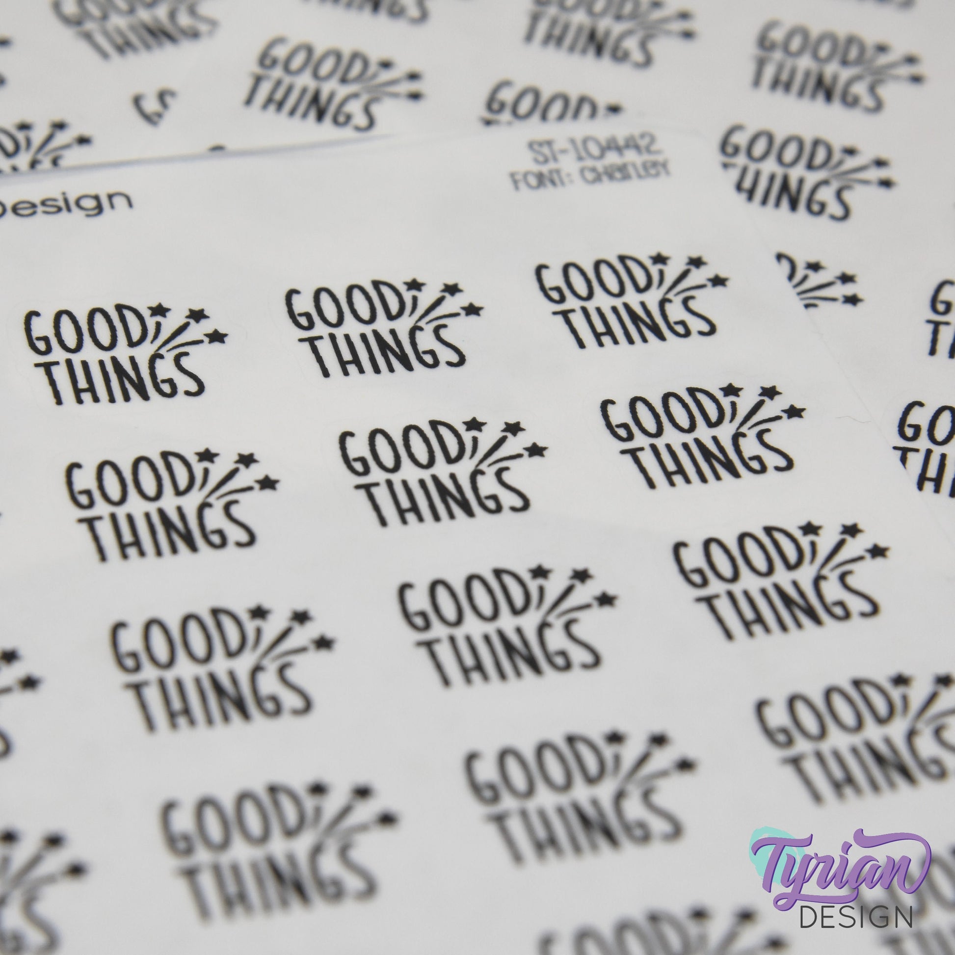 Good Things Sticker | Word Sticker | 20 Stickers | .74" x .6" Each | 3.5 x 4.5" Sheet | Charley Font | White or Clear