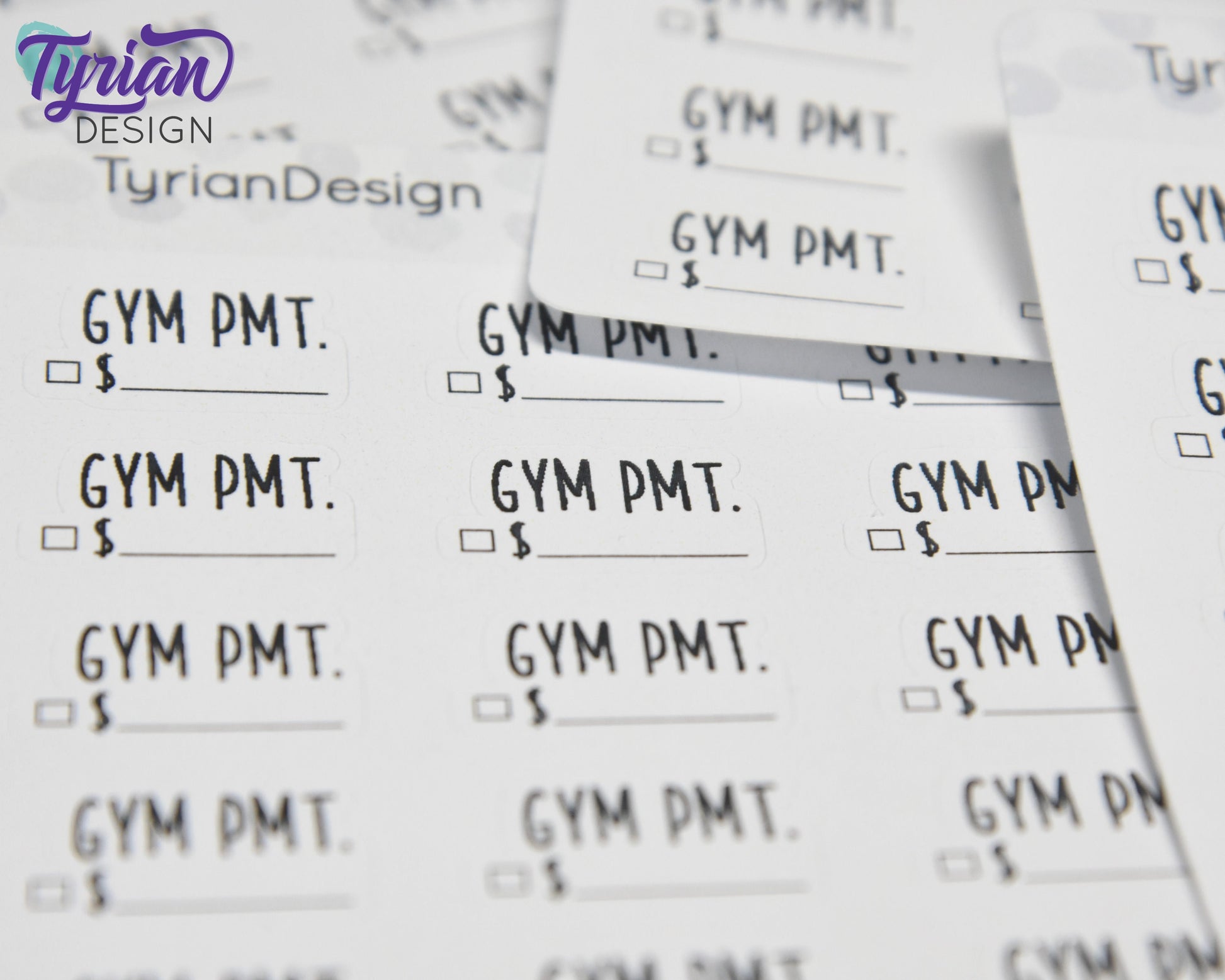 Gym Payment Stickers | Budget stickers | 18 Stickers | .87" x .54" Each | 3.5 x 4.5" Sheet | Charley Font | White or Clear