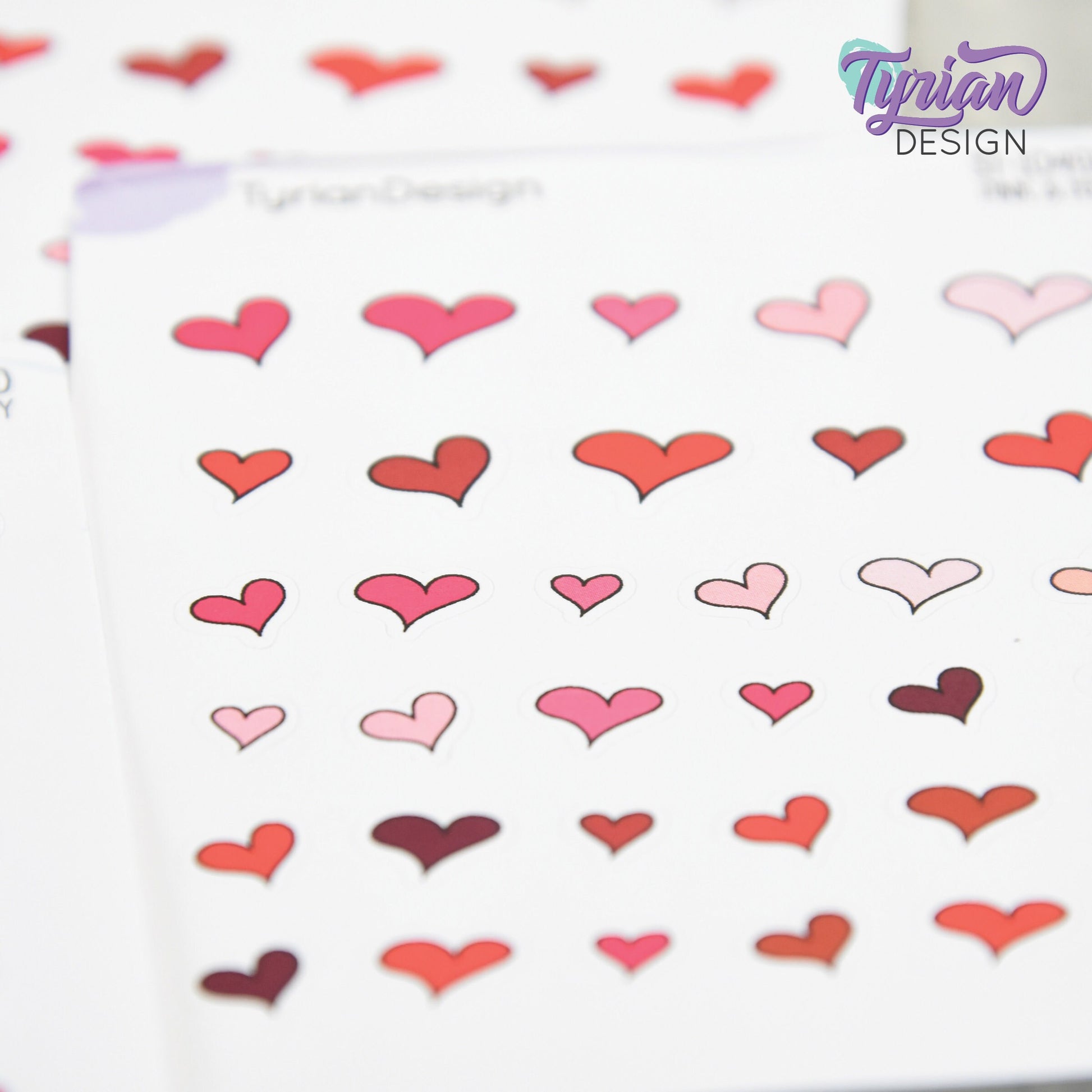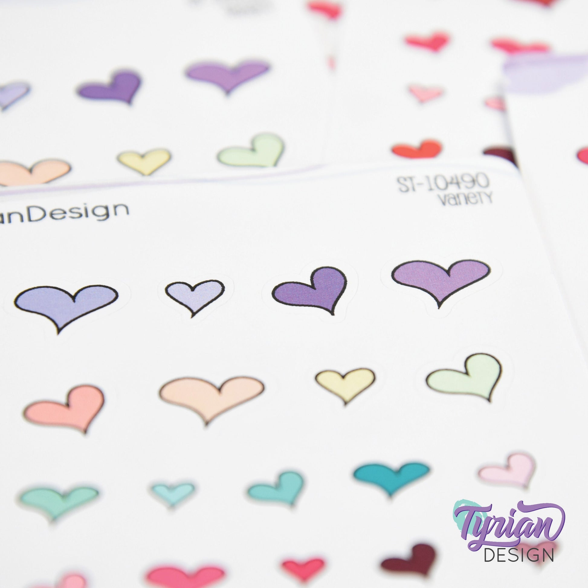 Hand Drawn Heart Stickers | Variety of Sizes | 30 Stickers per sheet | 1/2" max sticker size.