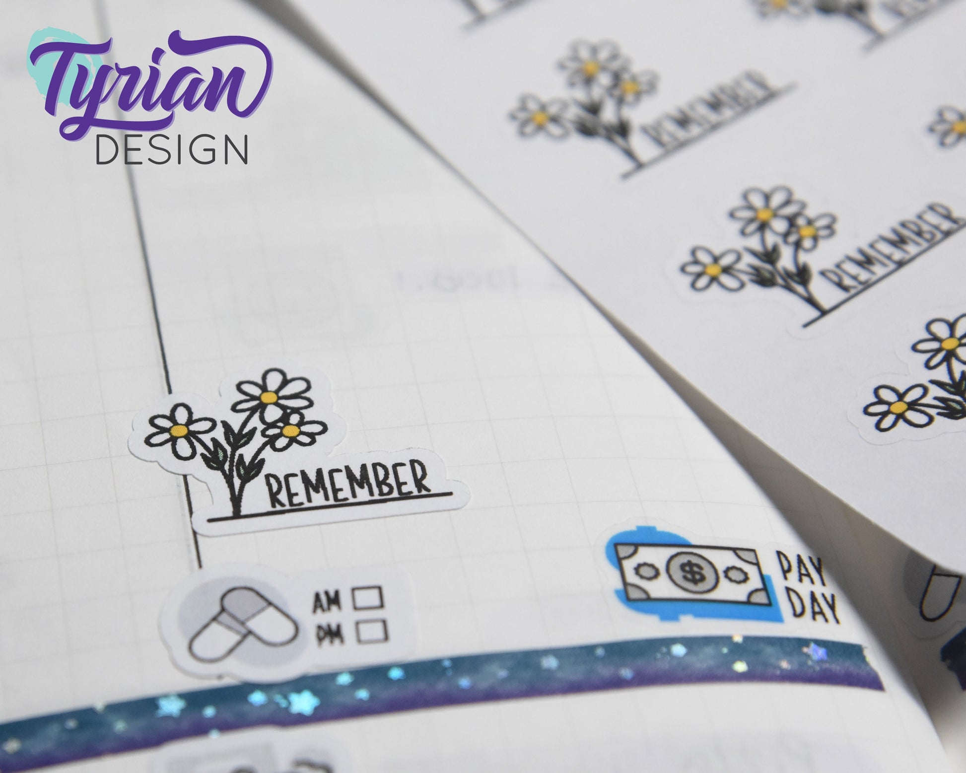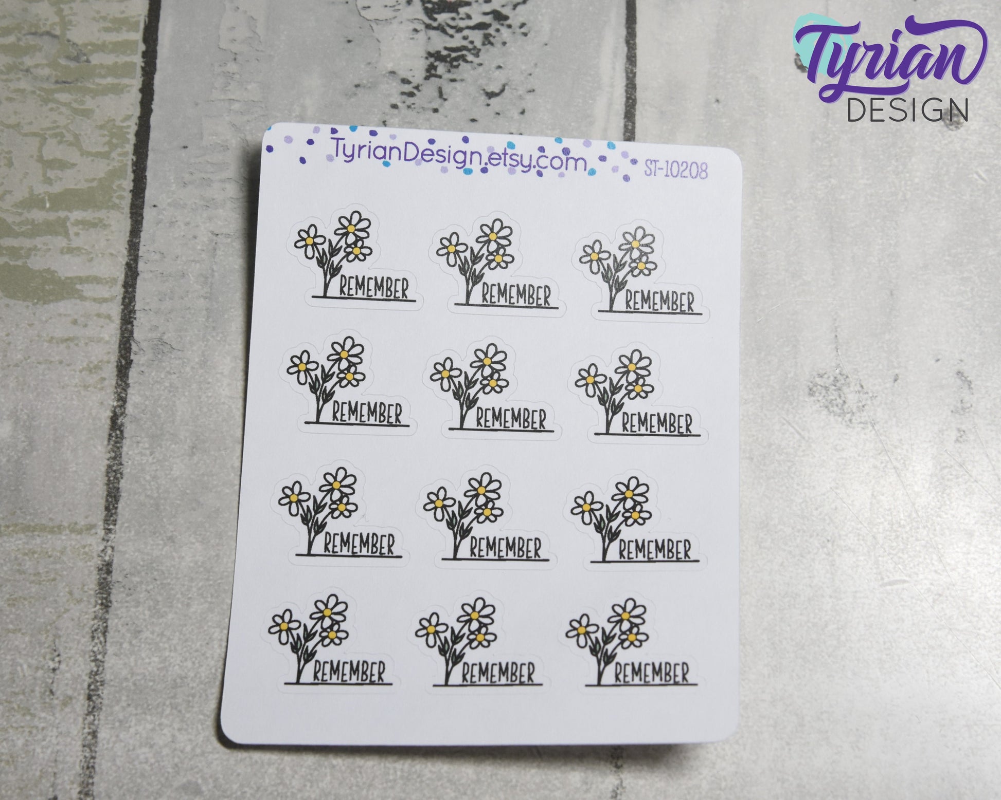 Hand Drawn Wild Daisies Remember Stickers. Want to remember something or someone? Great for Planners, journals and calendars.