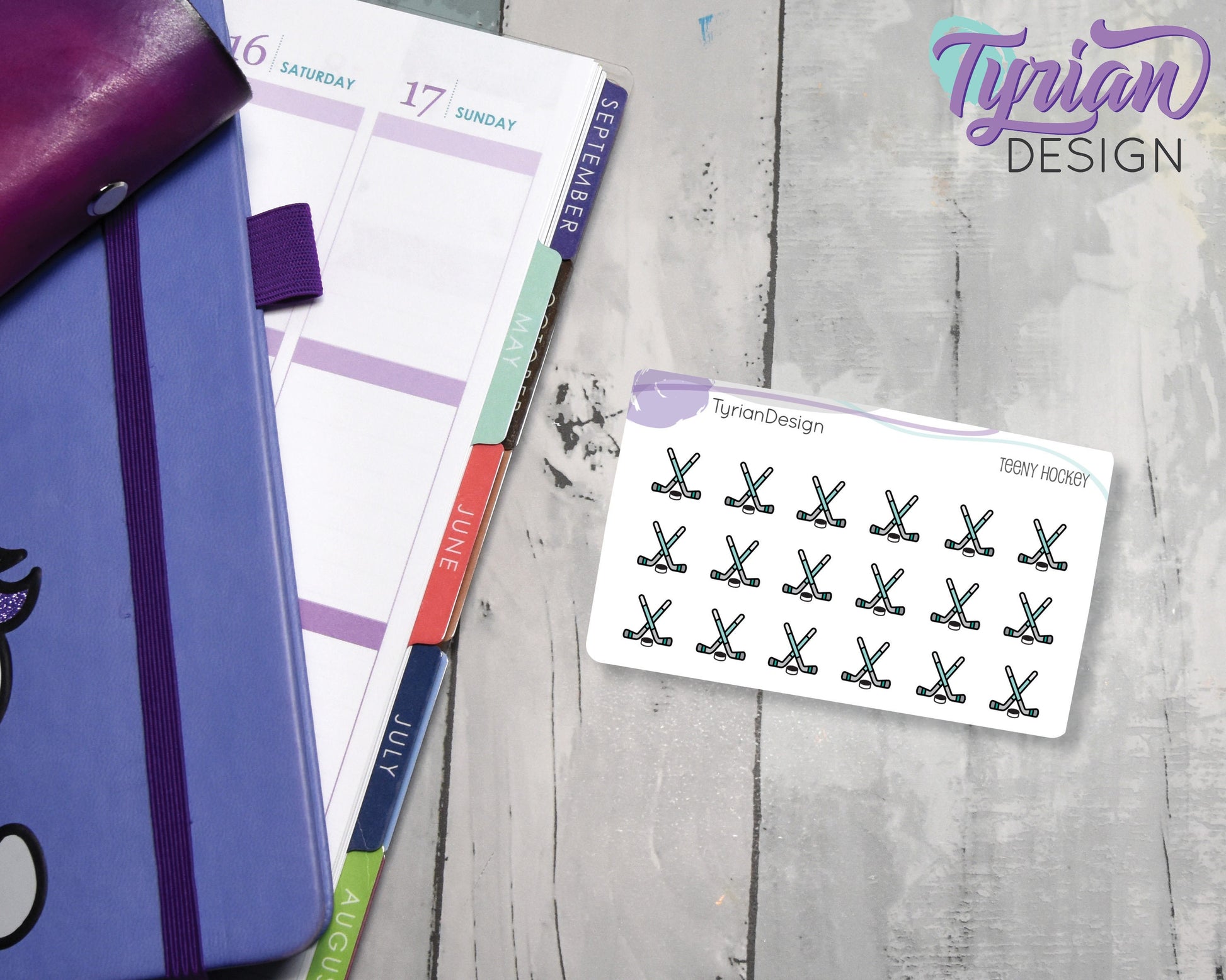 Hockey Stickers | Tiny Hockey stick stickers | Mini sheet | 18 stickers | .43 x .45" each | Hockey icon | White or Clear Matte