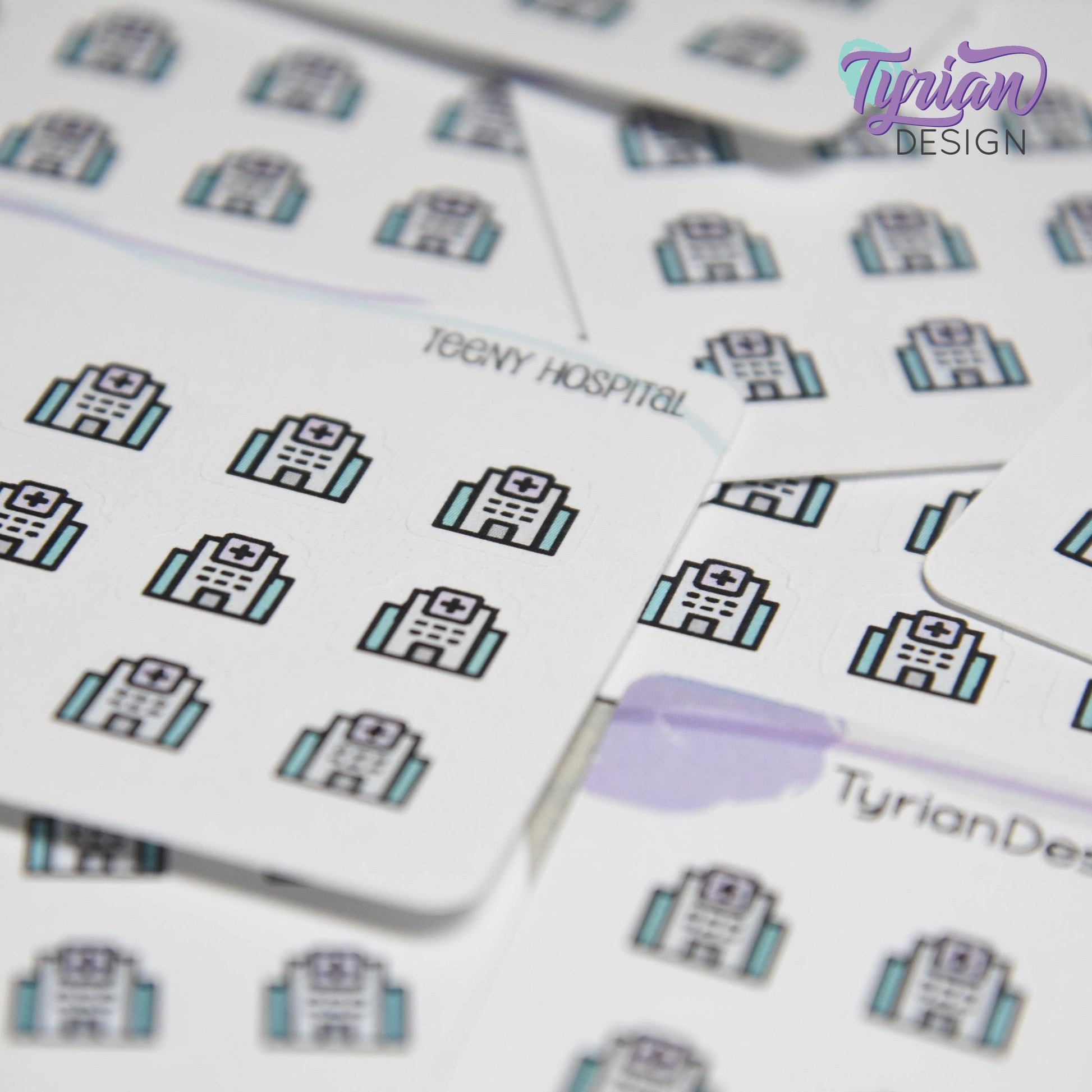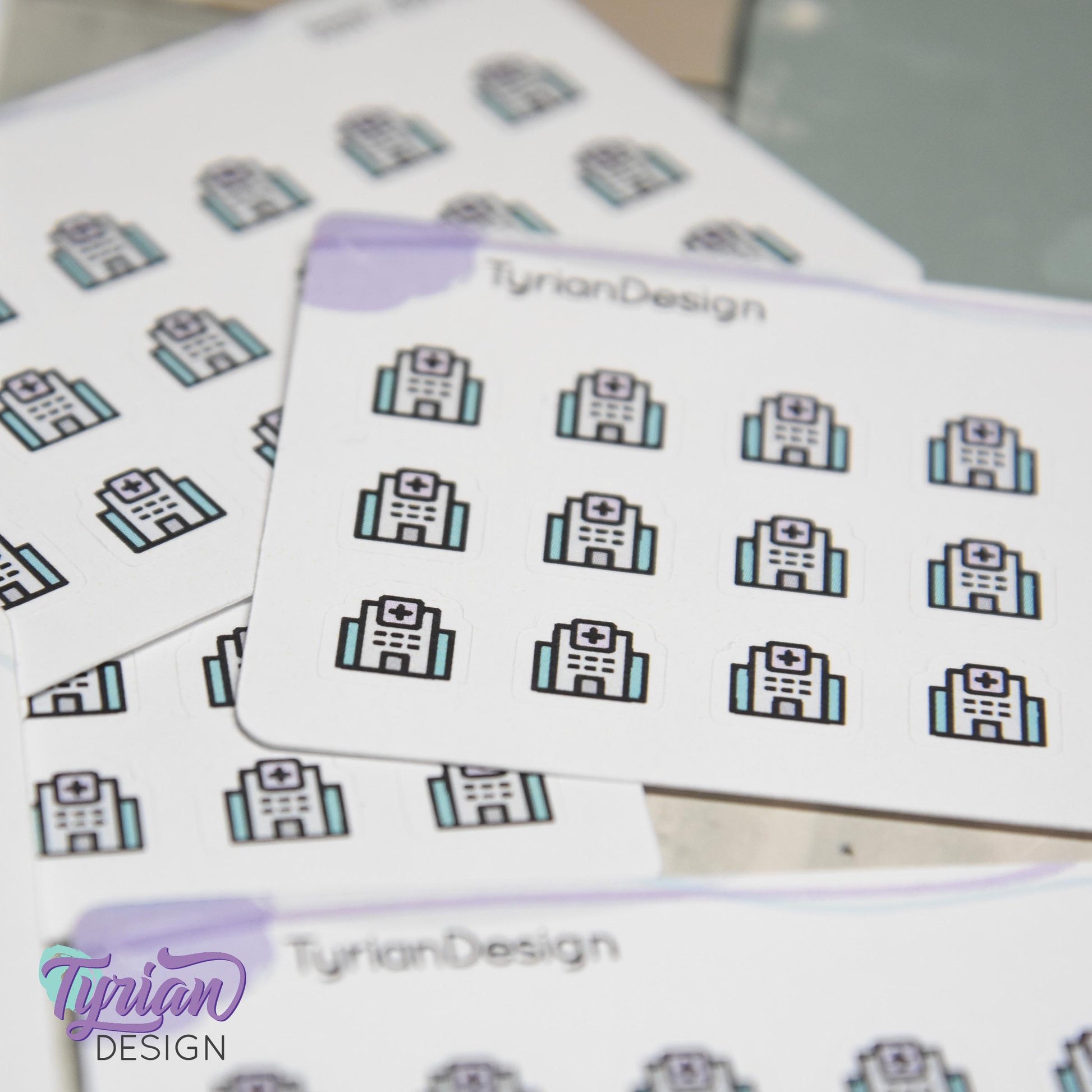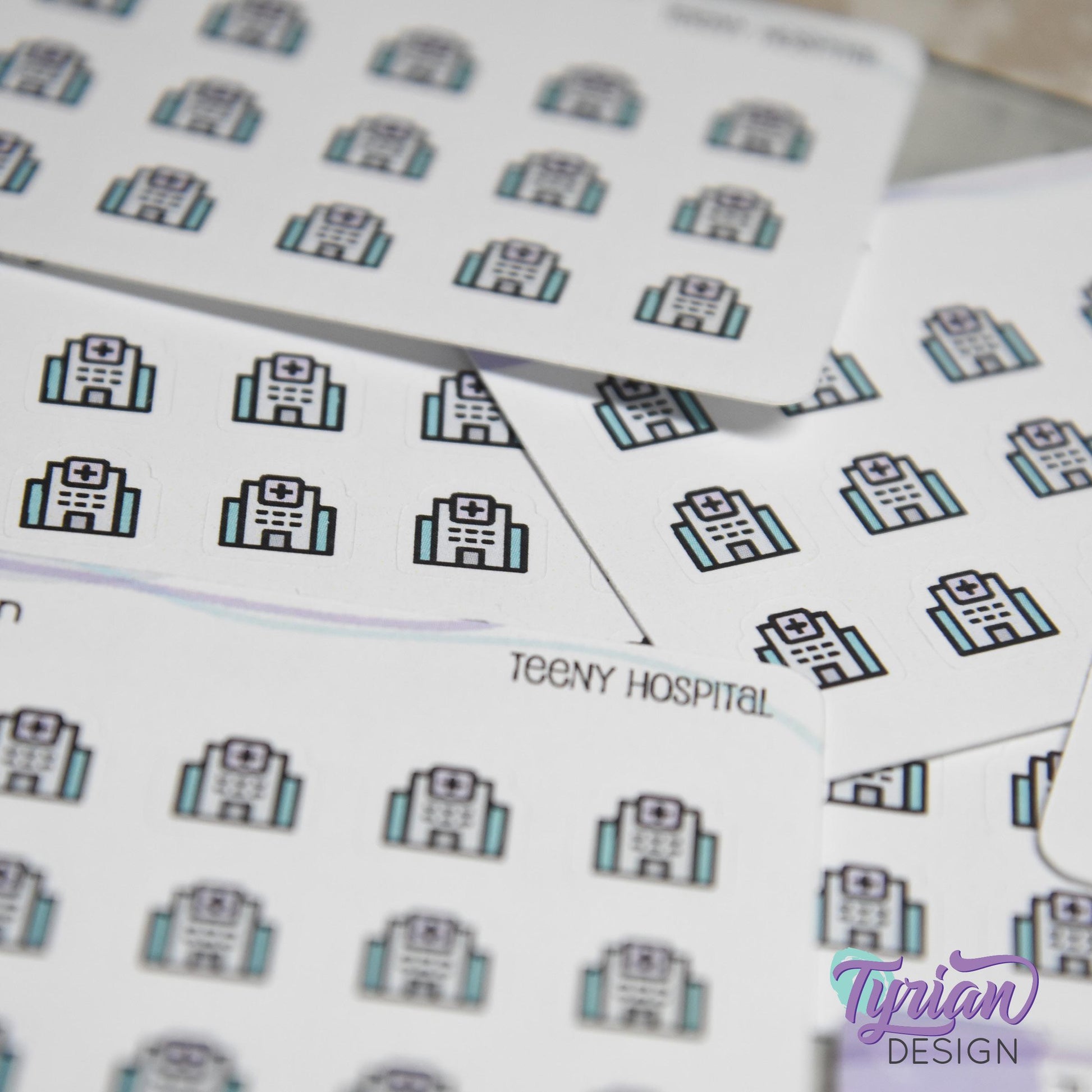 Hospital Stickers | Tiny Hospital | Mini Sheet | 18 stickers | .41 x .41" each | Medical Building icon sticker | White or Clear Matte