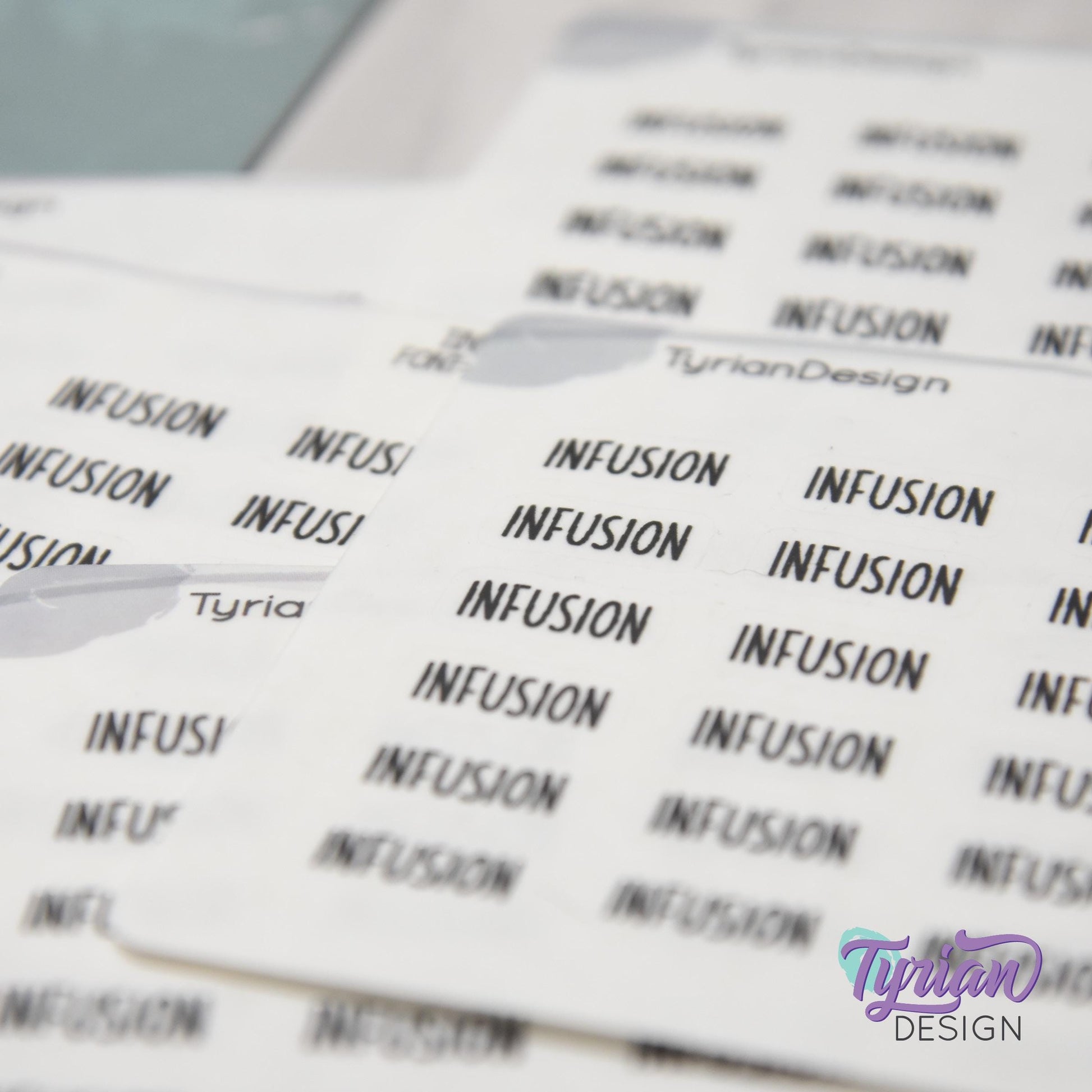 Infusion Stickers | 24 Stickers | .59 x .28" each | Font: Charley