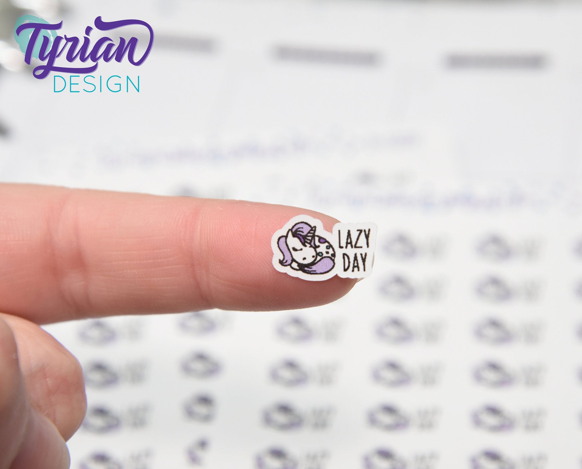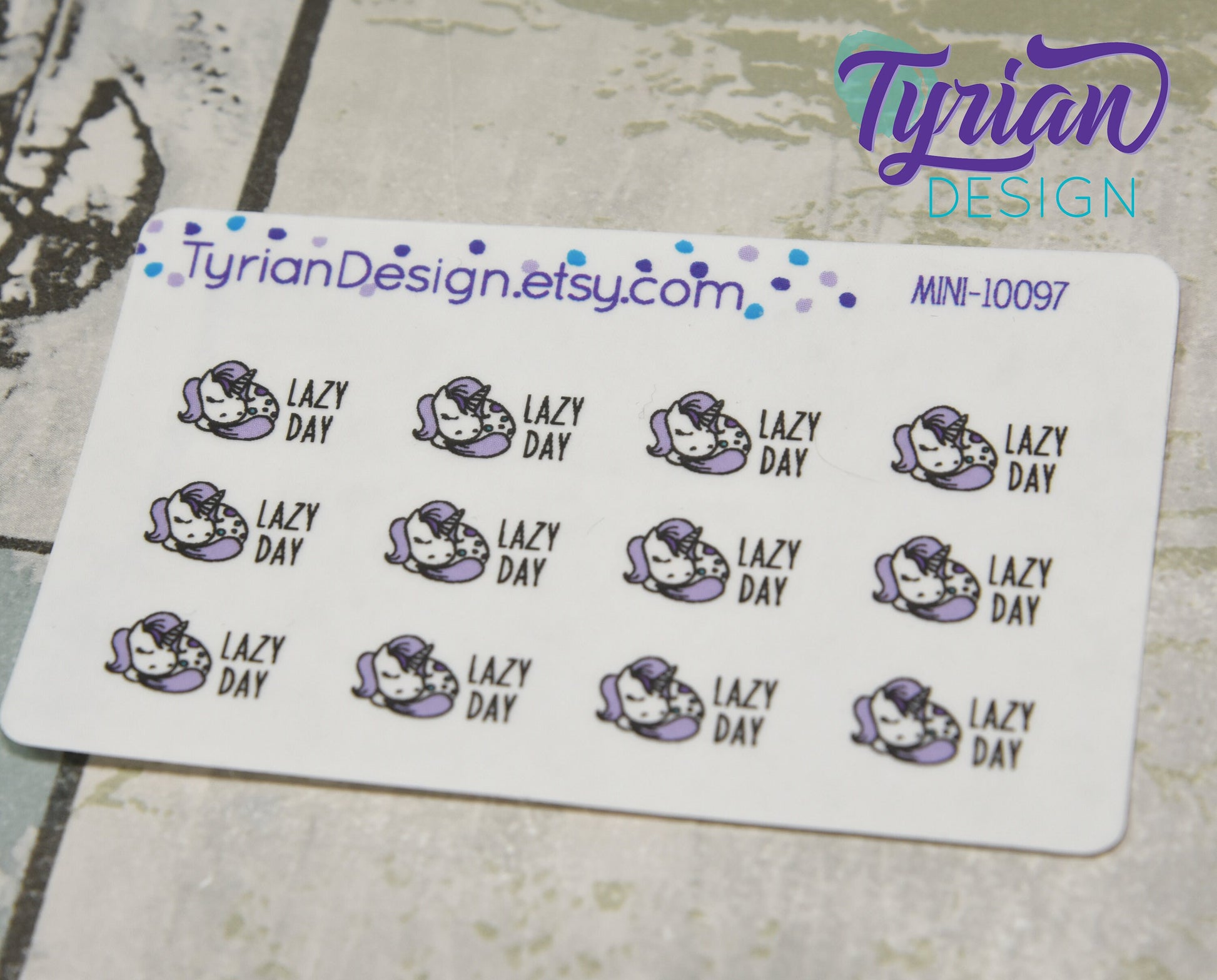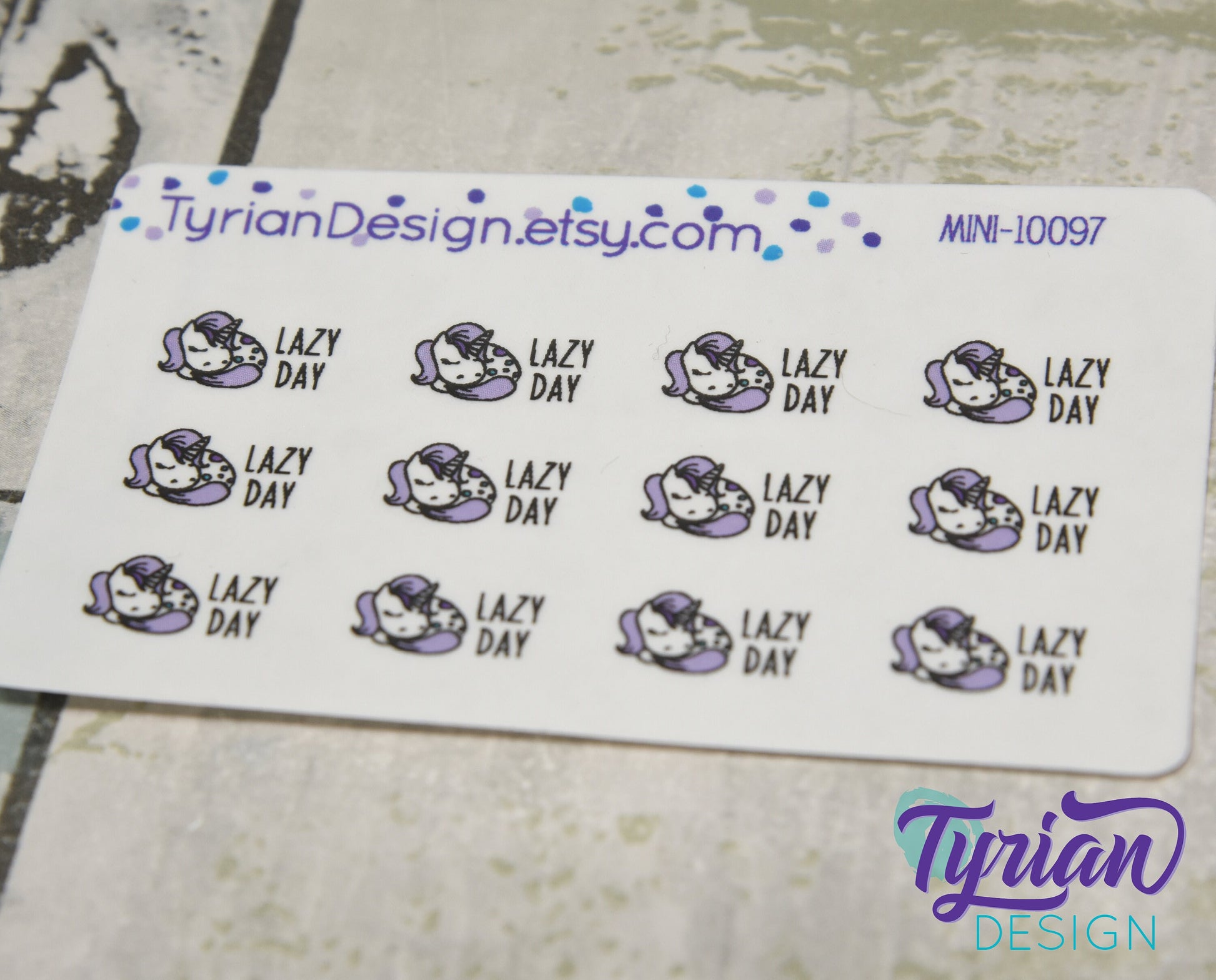Lazy Day Sleeping Unicorn mini sticker sheet with purple mane with Turquoise accents. Small napping Unicorn Great for Planners & Journals