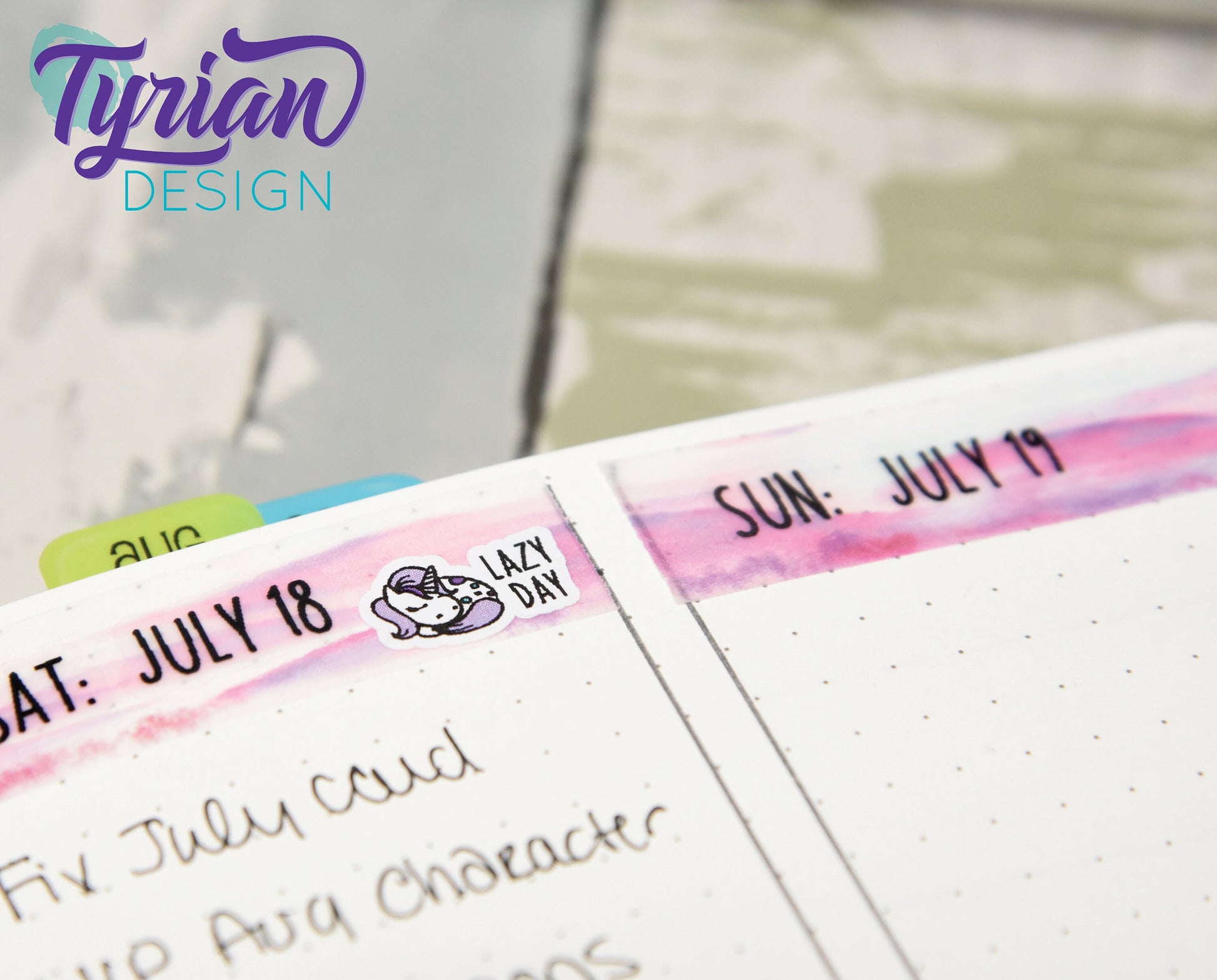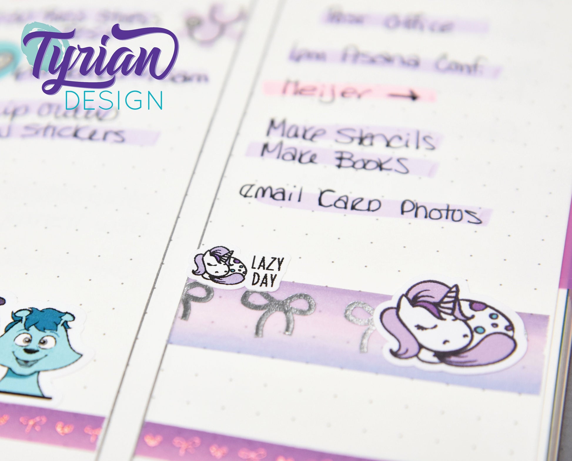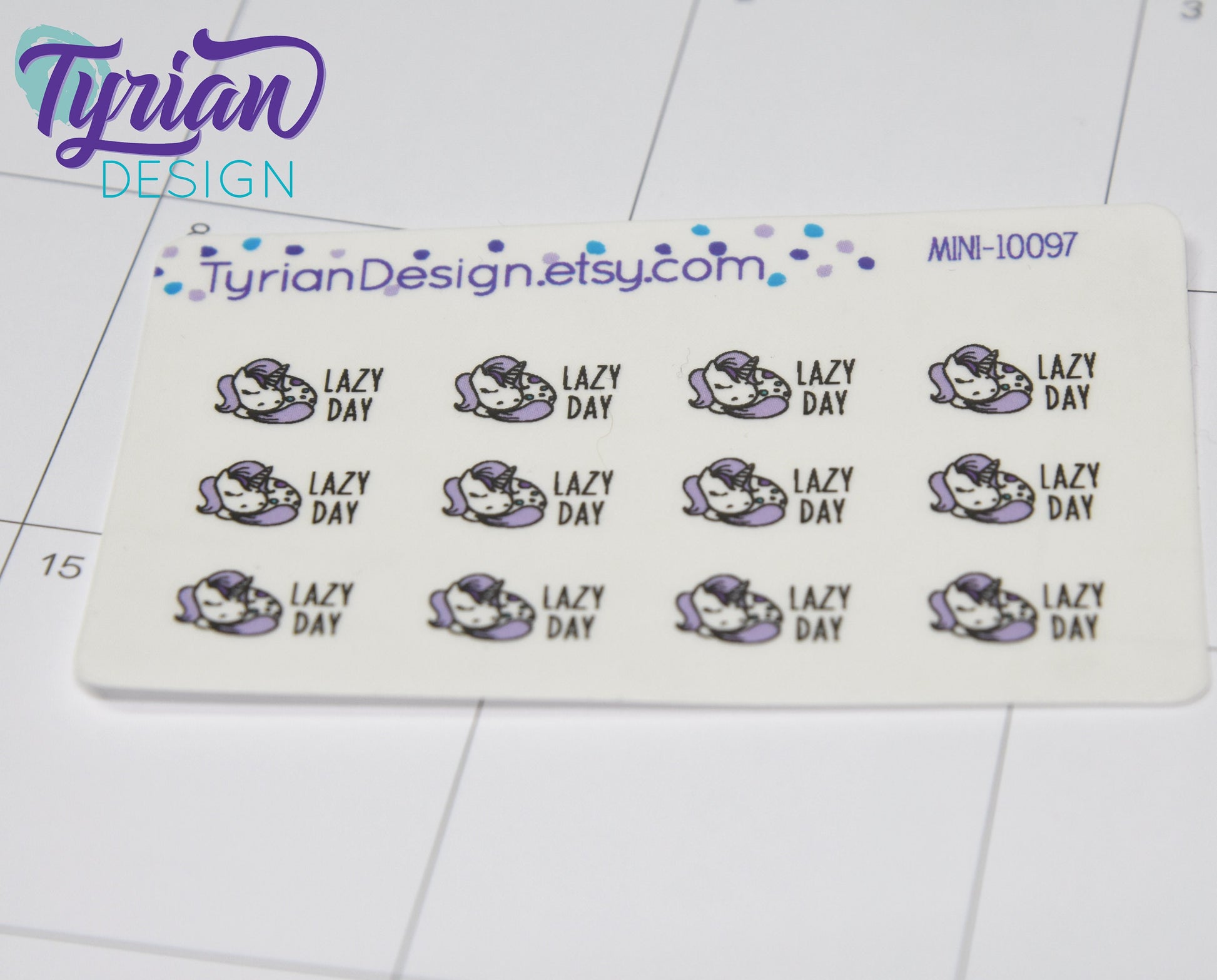 Lazy Day Sleeping Unicorn mini sticker sheet with purple mane with Turquoise accents. Small napping Unicorn Great for Planners & Journals
