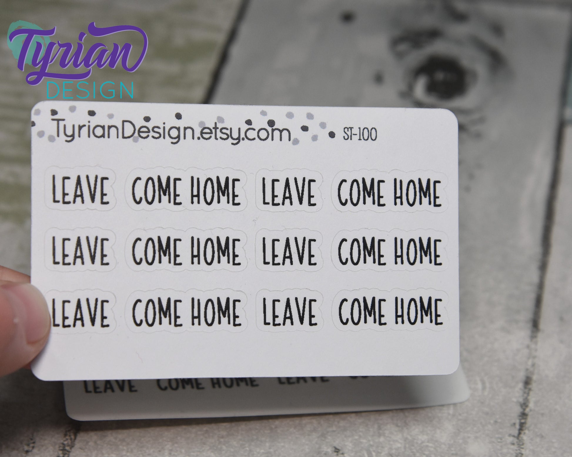 Leave and Come Home Stickers Mini Sheet for Planners and Journals. Black Type, clear or white matte stickers - Road Trip, Vacation, Getaway
