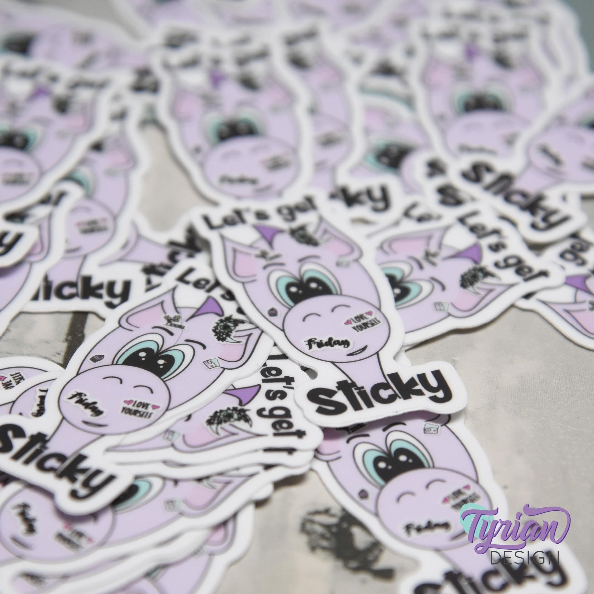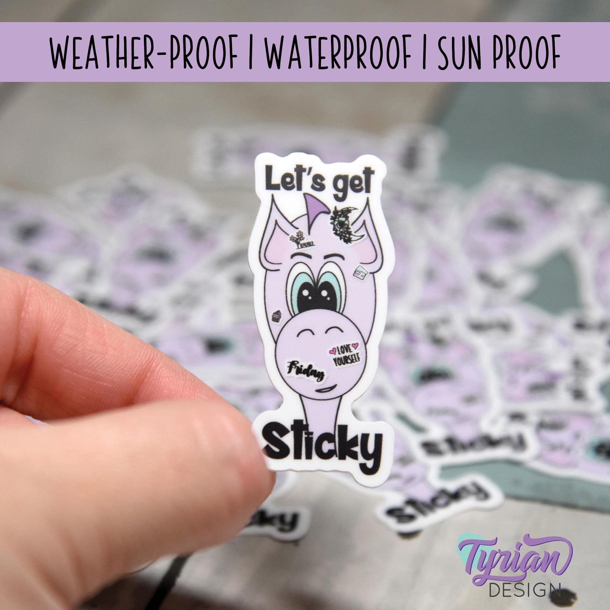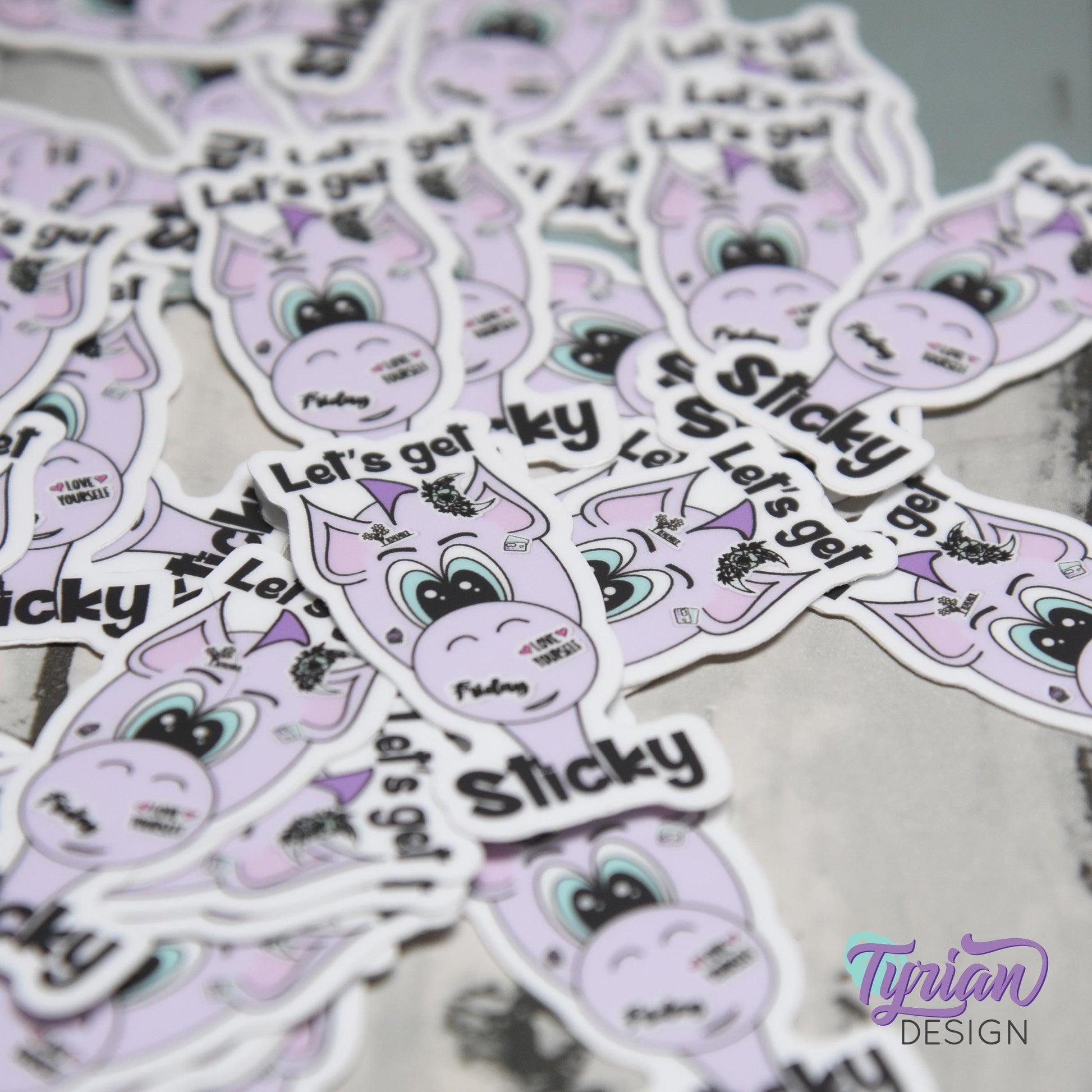 Let's Get Sticky Vinyl Sticker | Dragon Sticker | I love Stickers |1 x 2 Inches | High quality weather proof vinyl | Purple Dragon