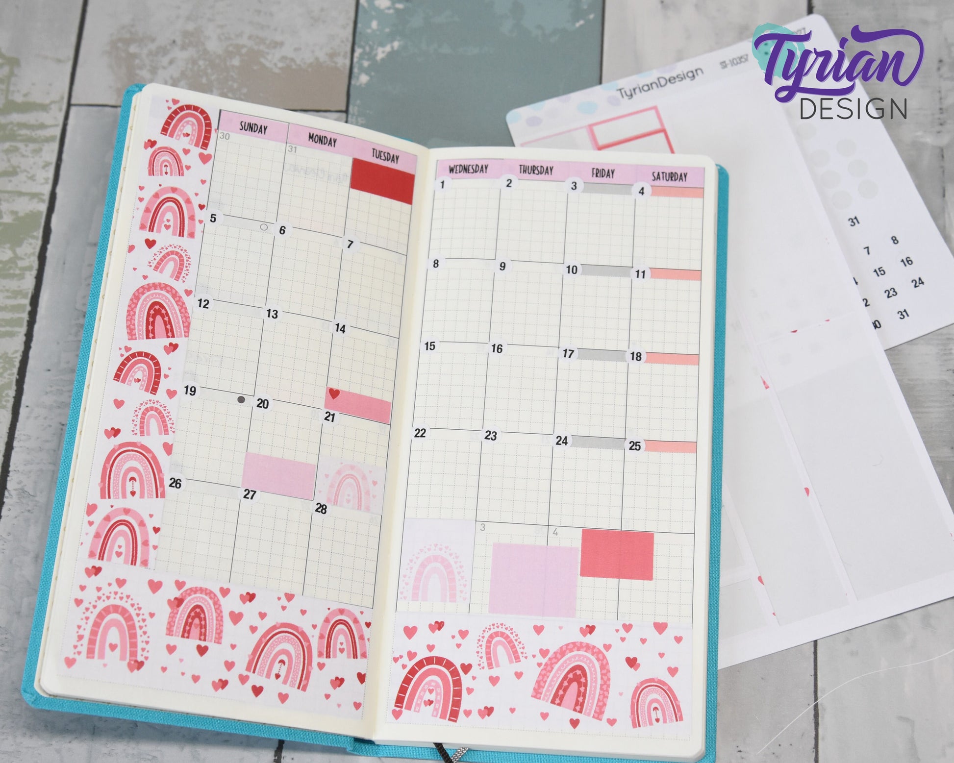 Love Rainbow Monthly Kit | Hobonichi Weeks | Monthly kit | Simple Hobonichi Kit | Sunday or Monday Start | 3.25x7.5 Sheet | 17 Stickers