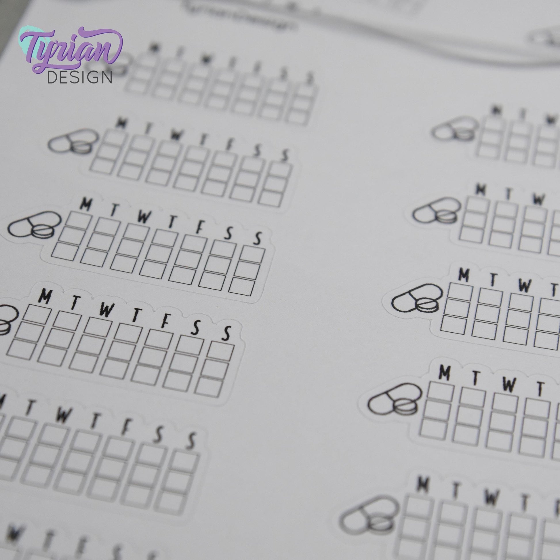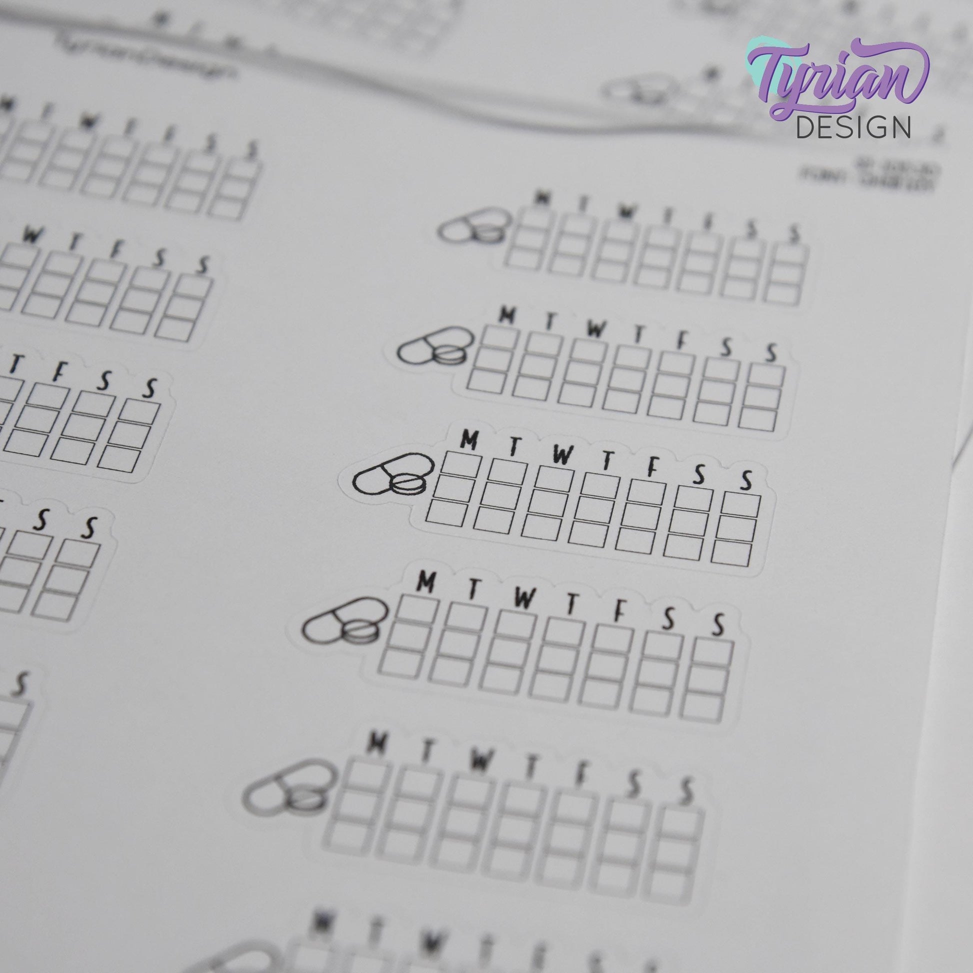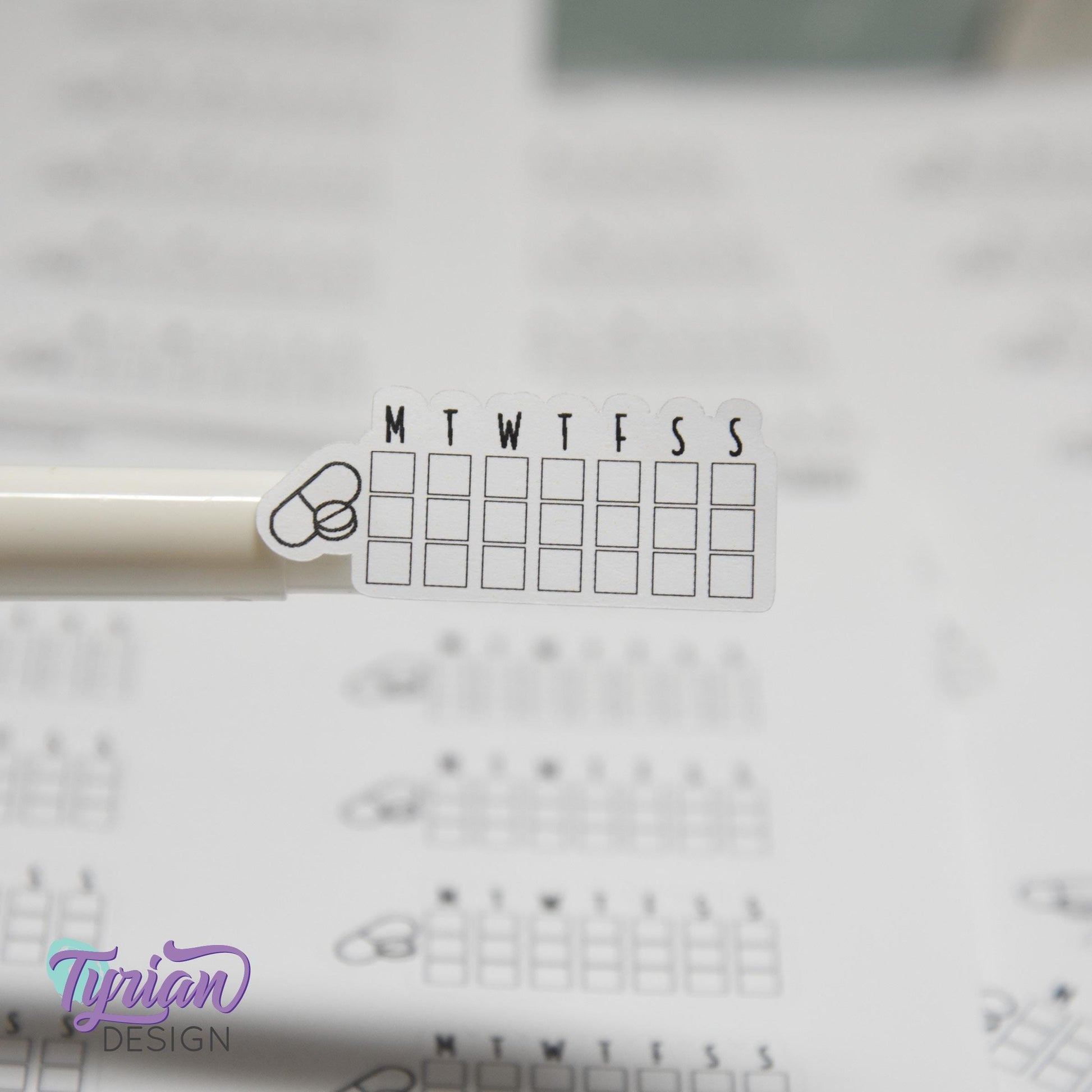 Medicine Tracker Sticker | Weekly Tracker | Pill Tracker | 16 stickers per sheet | 5x7 sheet | White or Clear Matte | Font Charley