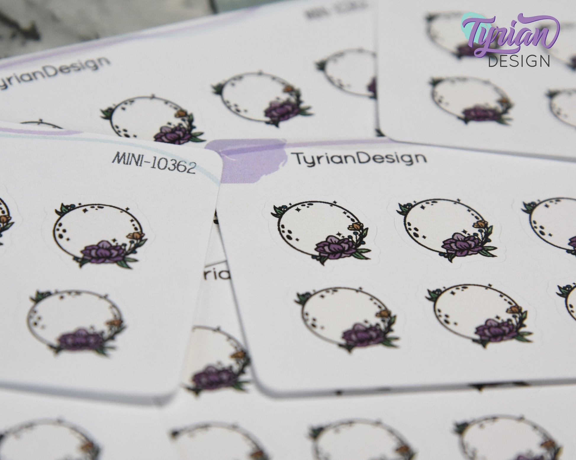 Mini Moon Stickers | Mini Sheet of Full Purple Flower Moon | 8Stickers | .65 x .65" each | 3.375" x 2.125" Mini Sheet | White or Clear Matte