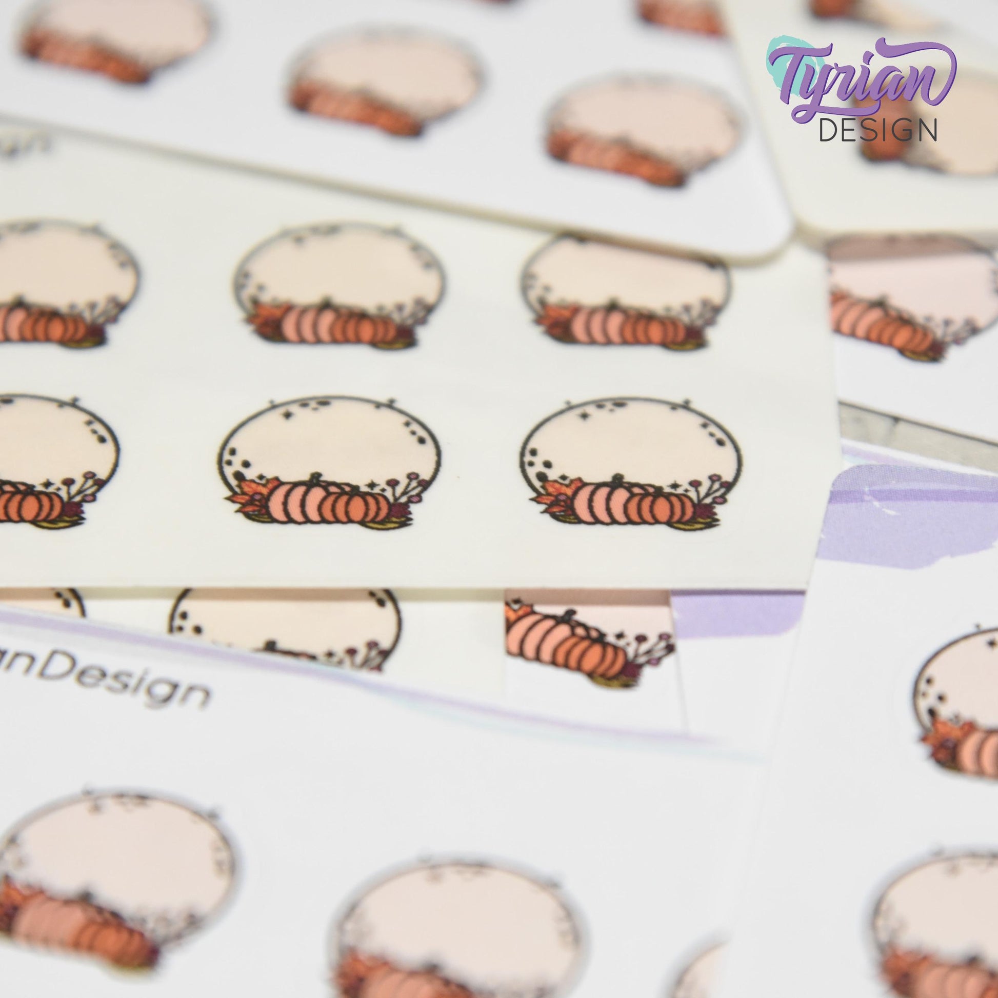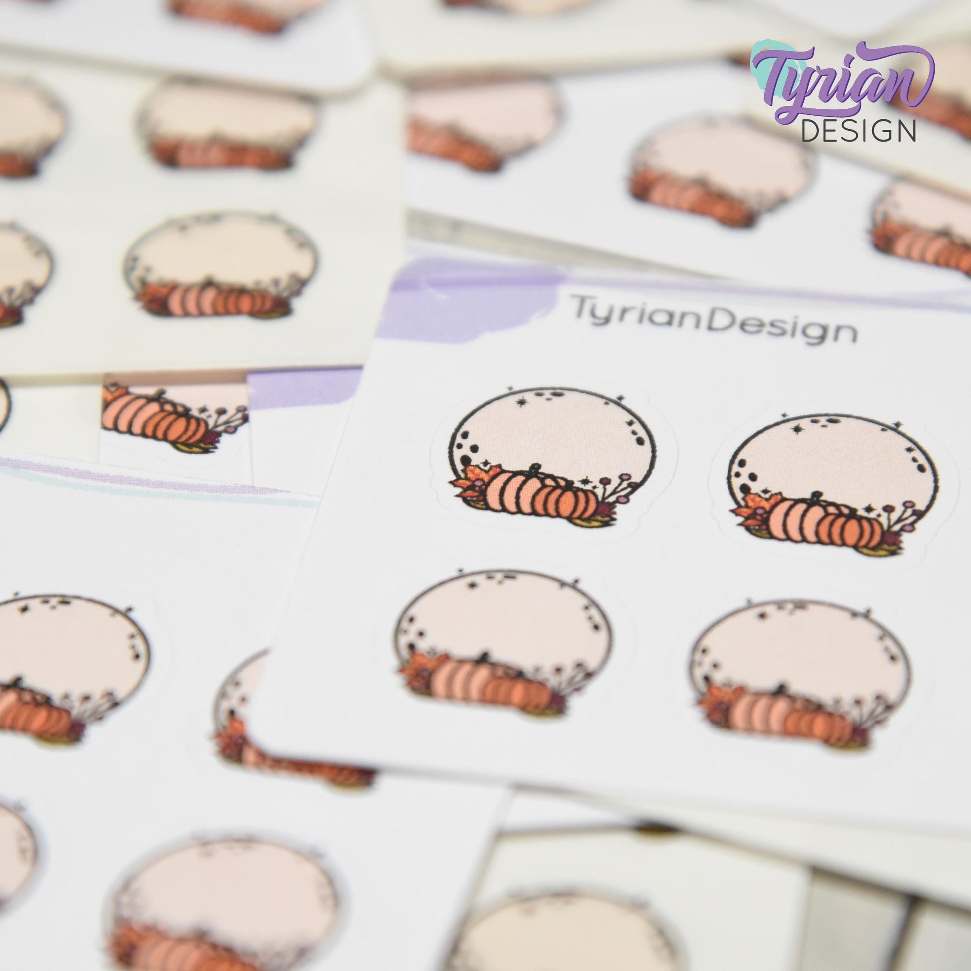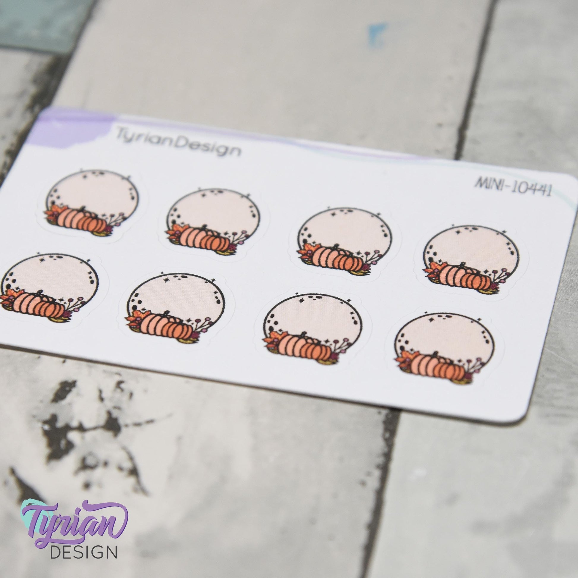 Mini Moon Stickers | Mini Sheet of Pumpkin Moon | 8 Stickers | .66 x .69" each | 3.375" x 2.125" Mini Sheet | White or Clear Matte