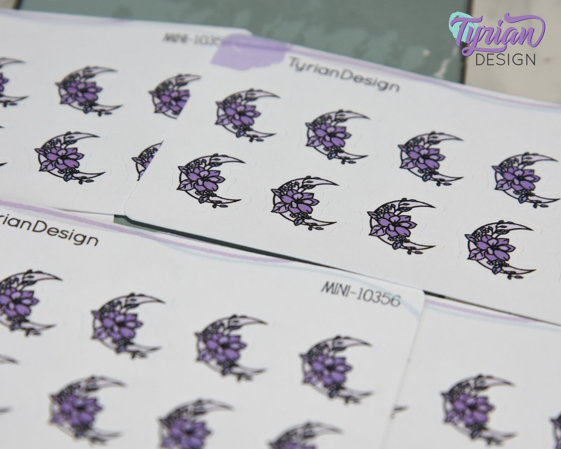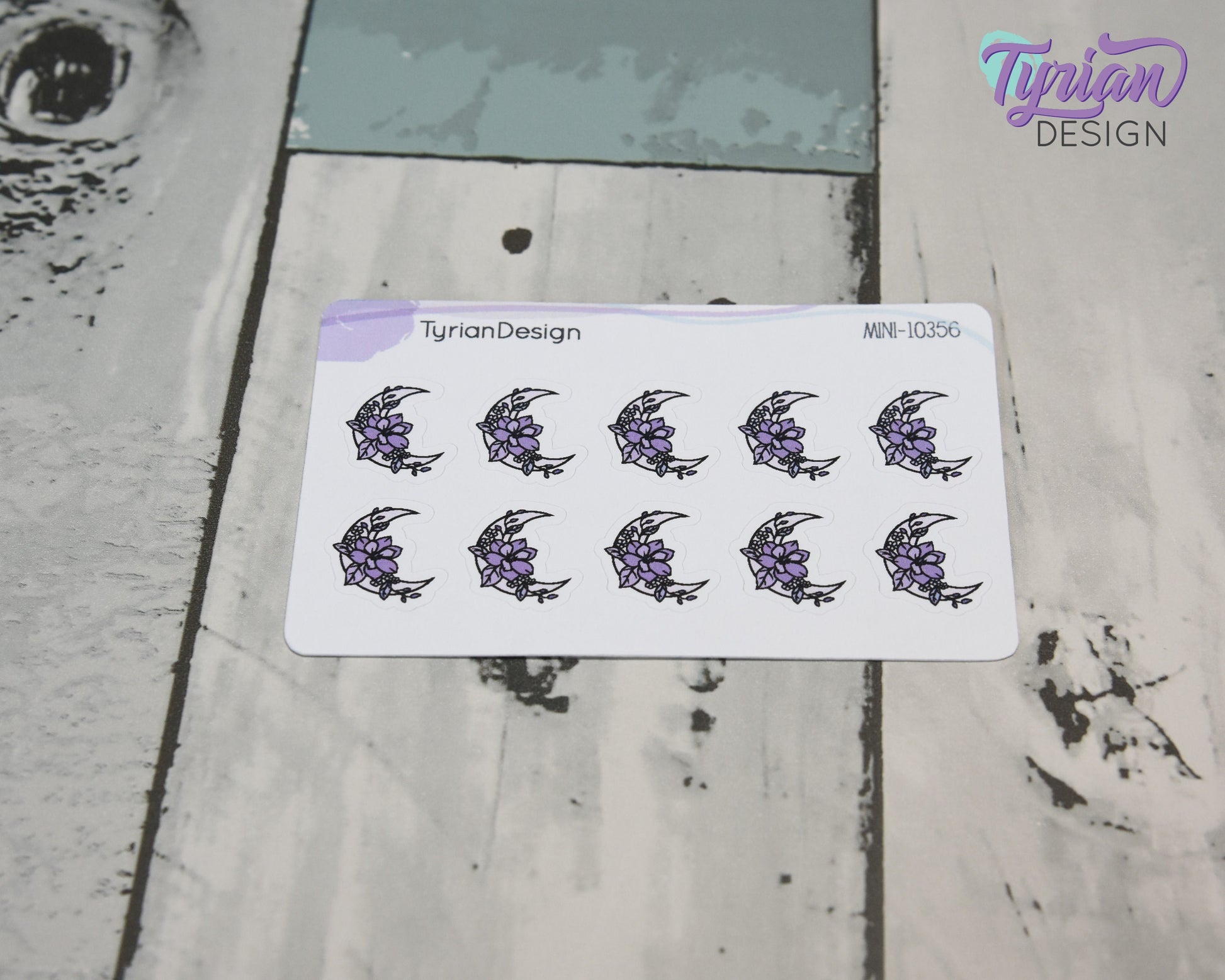 Mini Moon Stickers | Mini Sheet of Purple Moon | 10 Stickers | .6 x .65" each | 3.375" x 2.125" Mini Sheet | White or Clear Matte