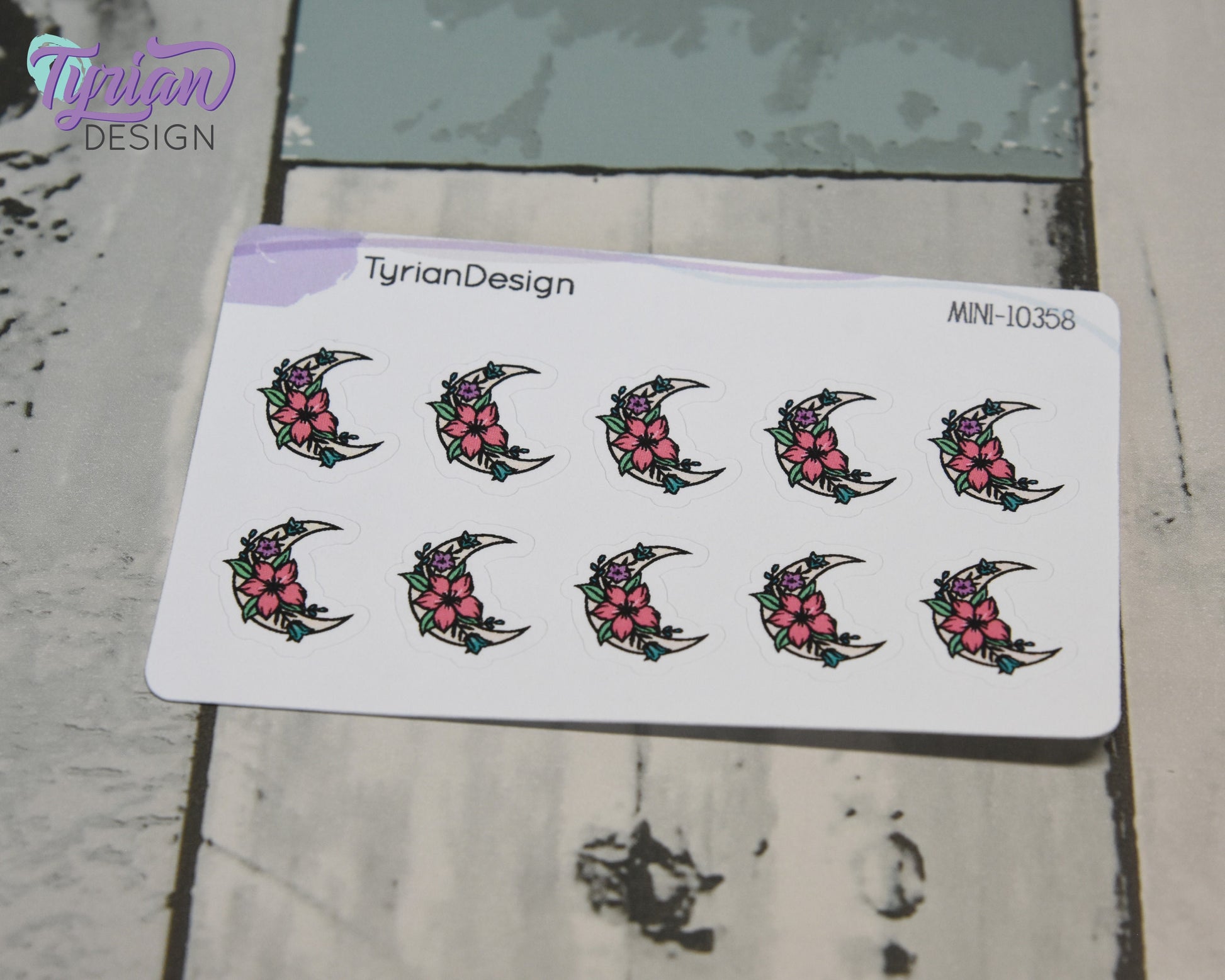 Mini Moon Stickers | Mini Sheet of Spring Moon | 10 Stickers | .6 x .64" each | 3.375" x 2.125" Mini Sheet | White or Clear Matte