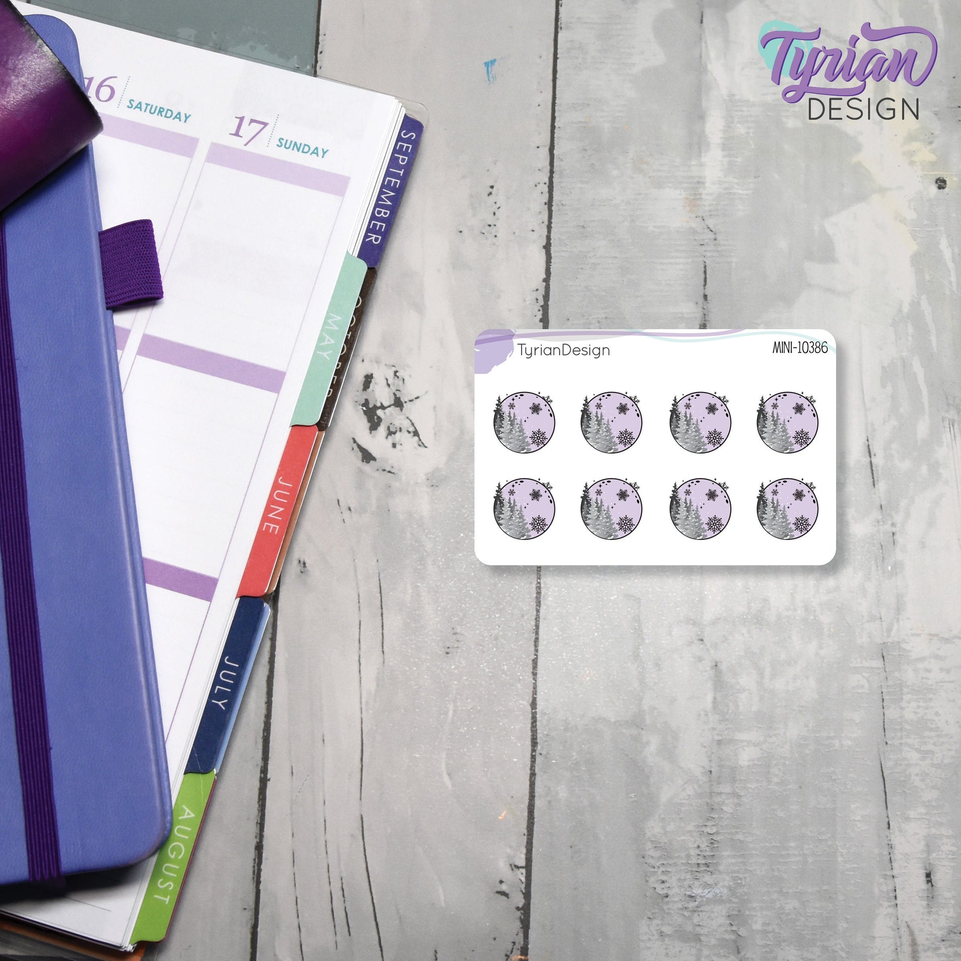 Mini Moon Stickers | Mini Sheet of Winter Moon | 8 Stickers | .65 x .64" each | 3.375" x 2.125" Mini Sheet | White or Clear Matte
