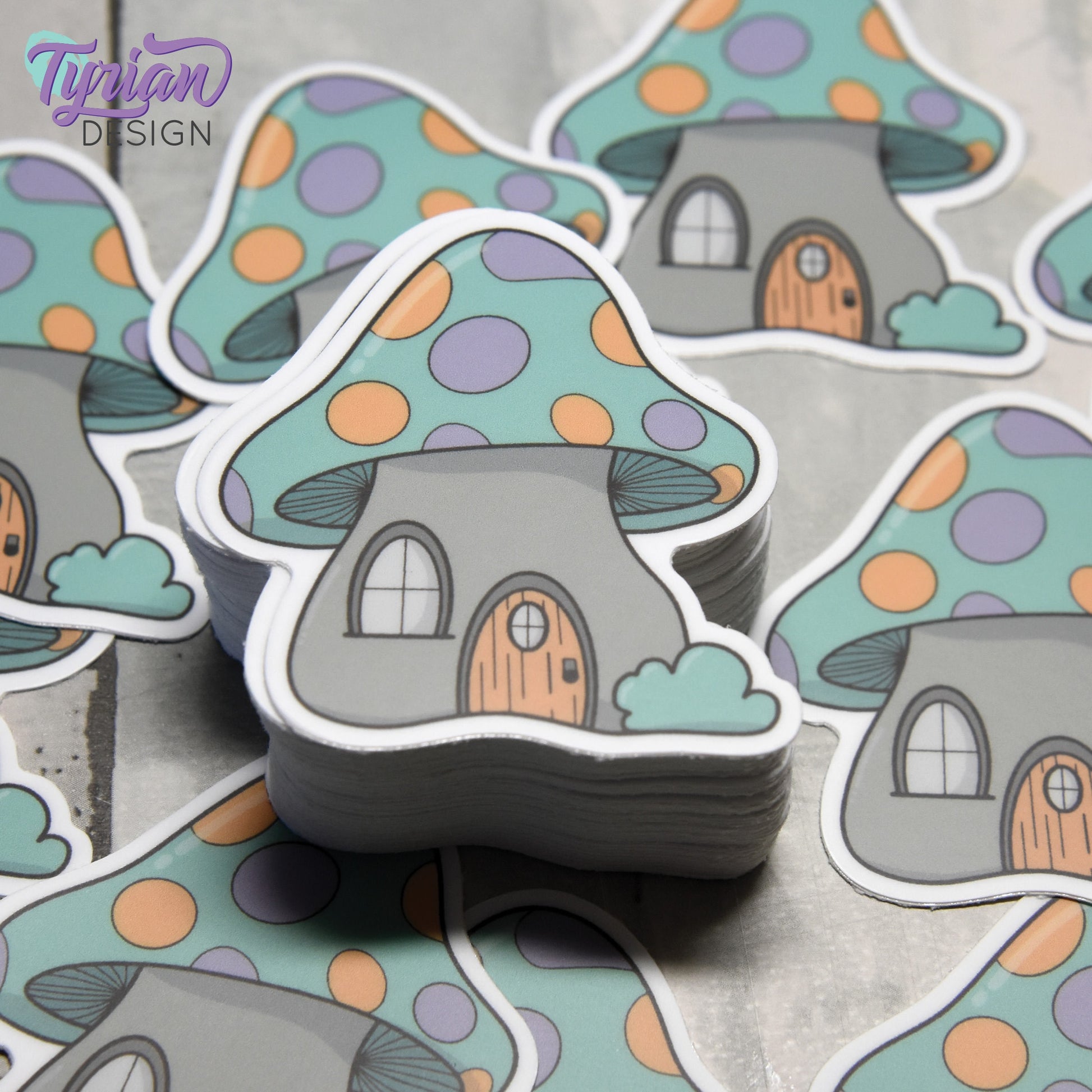 Mushroom House Vinyl Sticker | High quality weather proof vinyl | 1.85 x 2" | Fairy House Sticker| Little House sticker | Tumbler Sticker