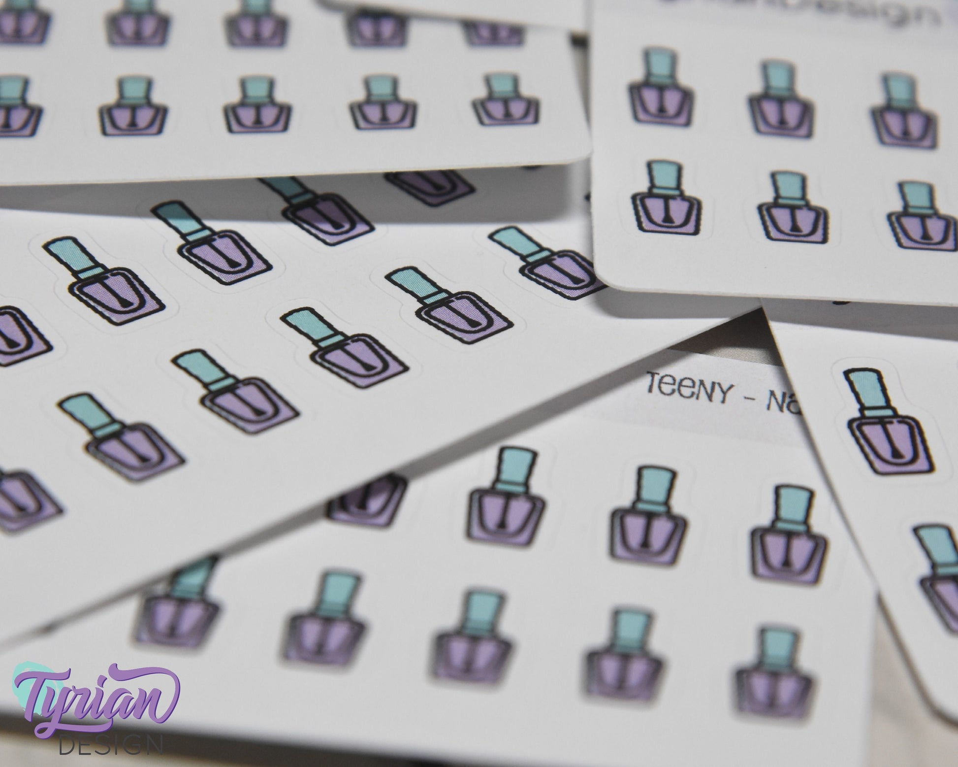 Nails Teeny Stickers | Nail Polish stickers | 16 Stickers | .33" x .58" Each | 3.375" x 2.125" Mini Sheet | White or Clear