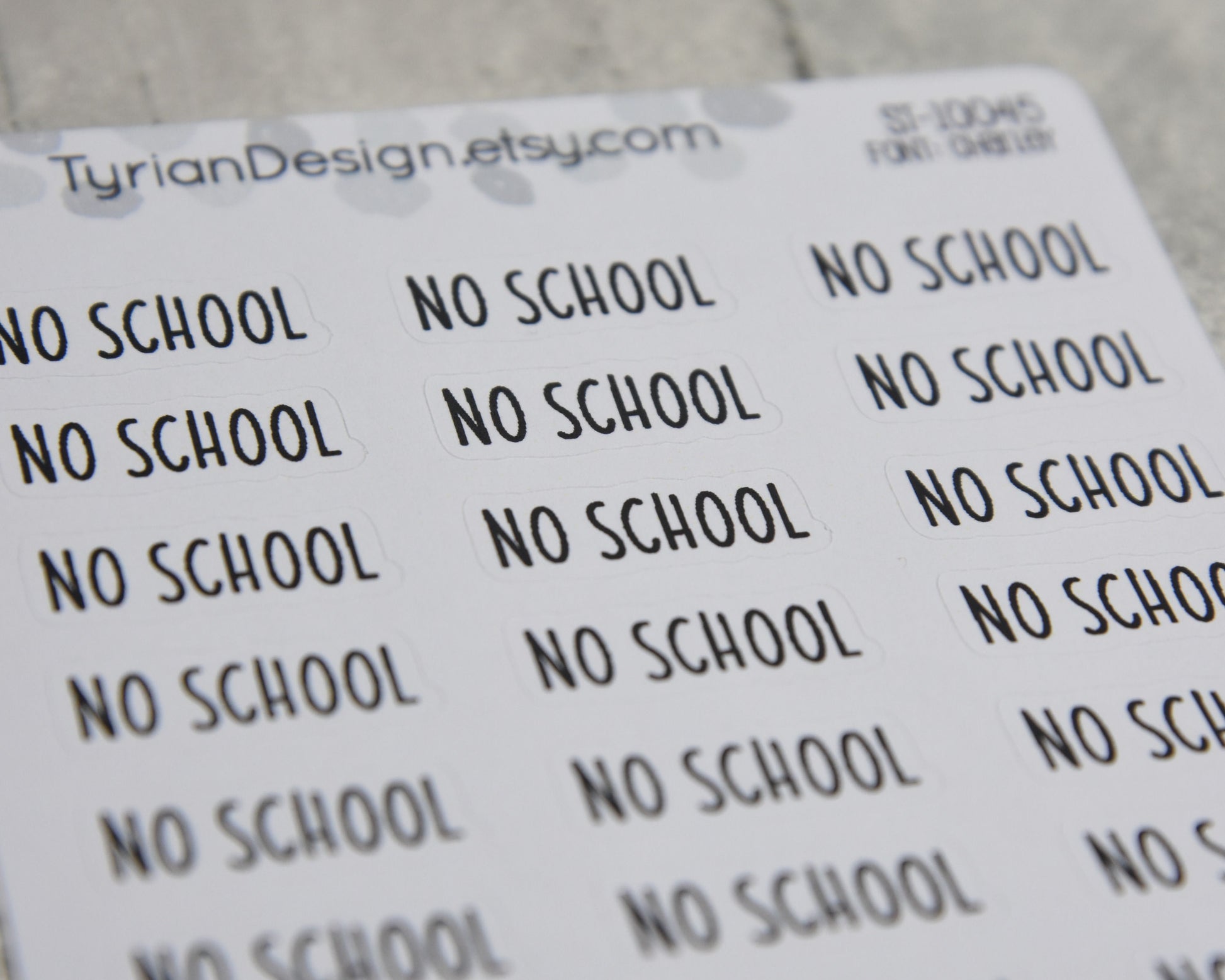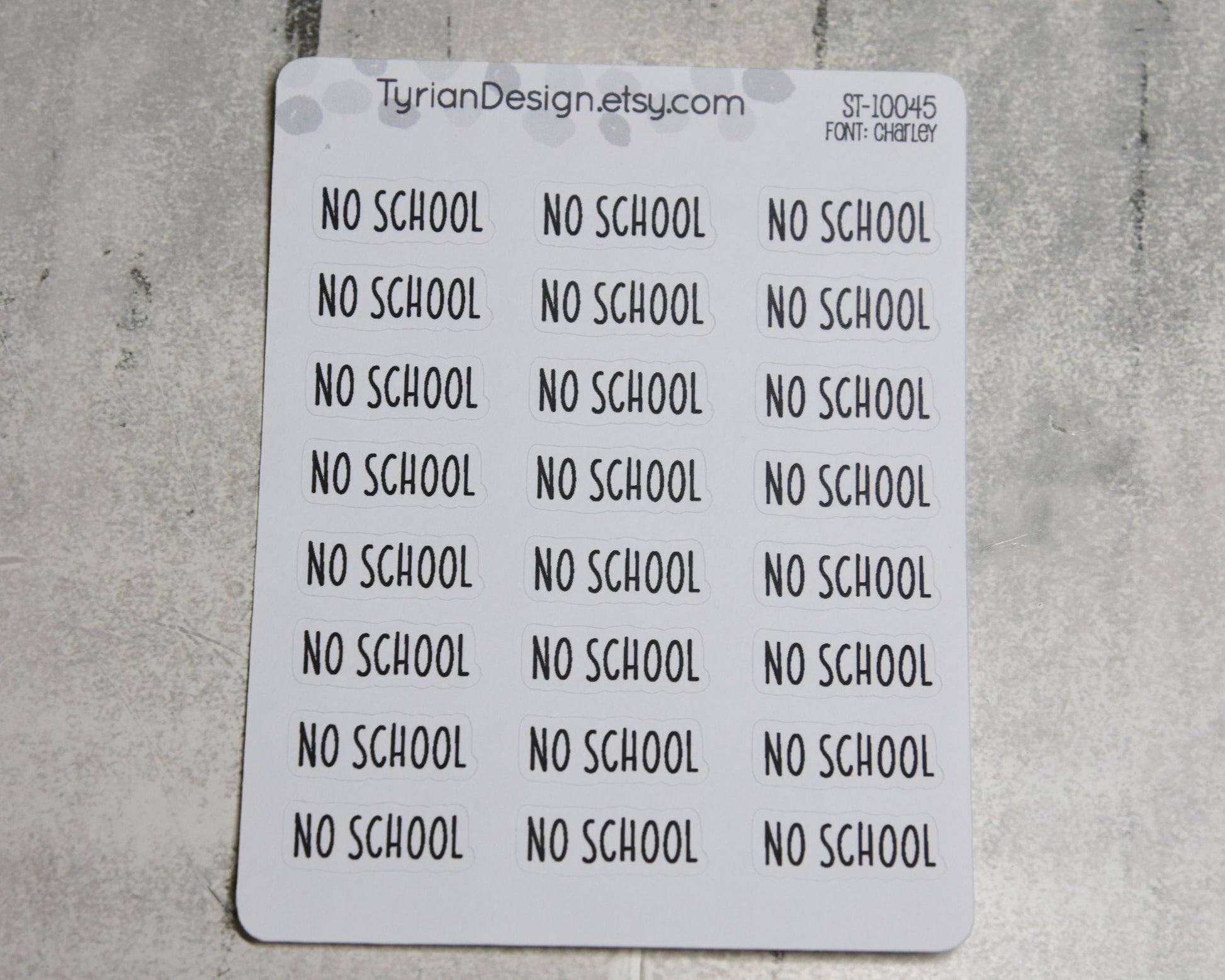 No School Stickers | 24 Stickers | 1" x .35" Sticker size | Charley Font