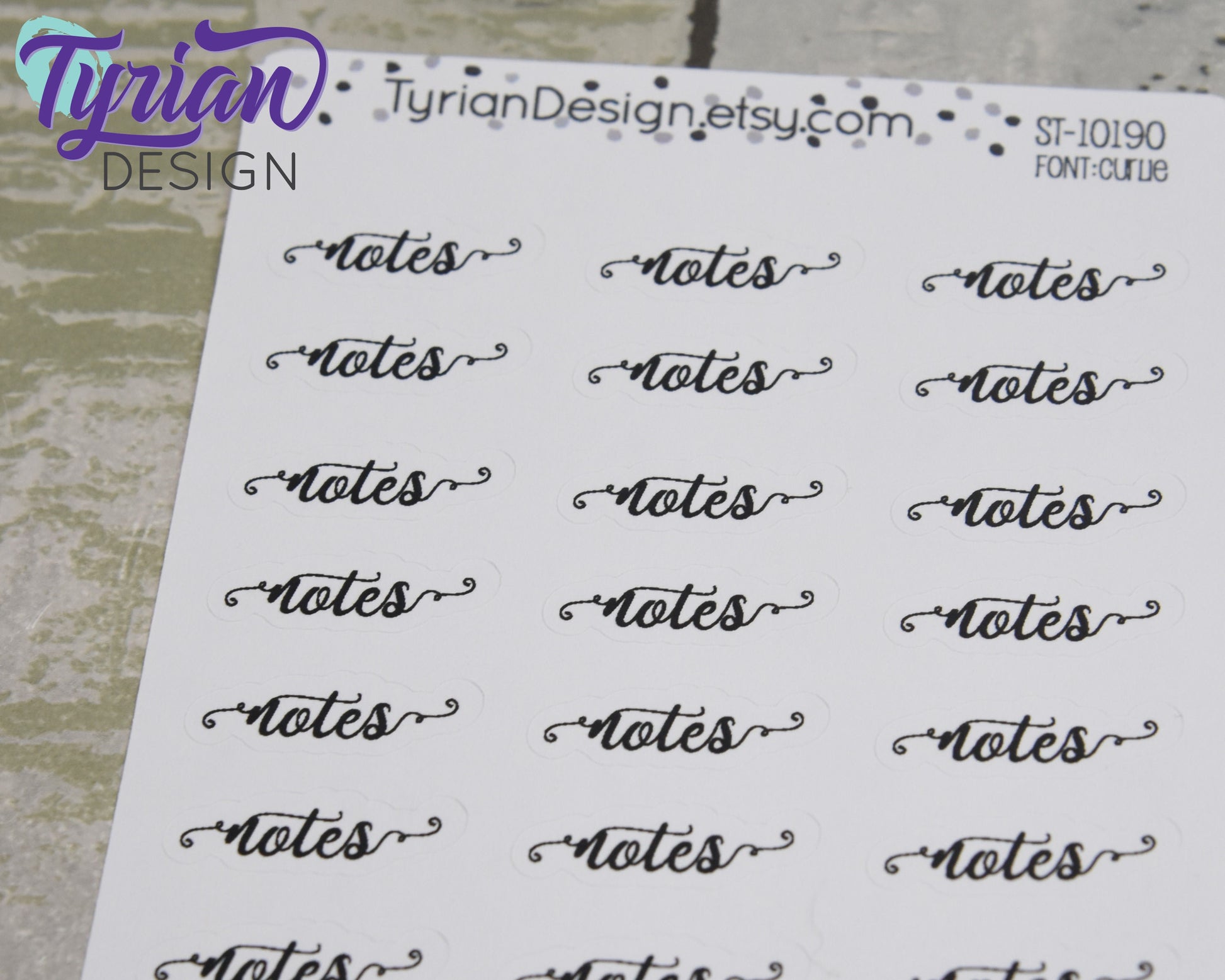 Notes script Stickers | 24 Stickers | .95" x .31" each. | Curlie Font