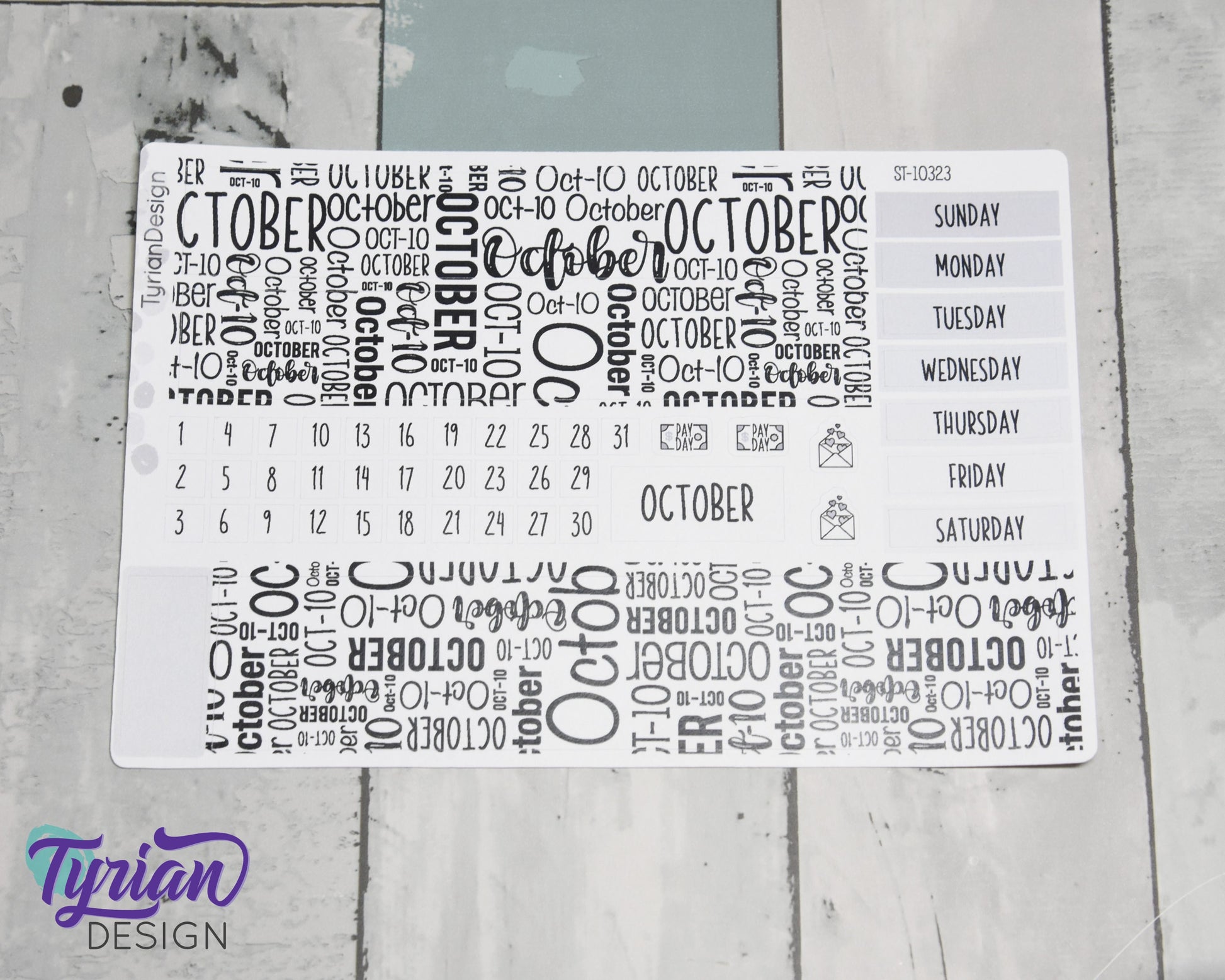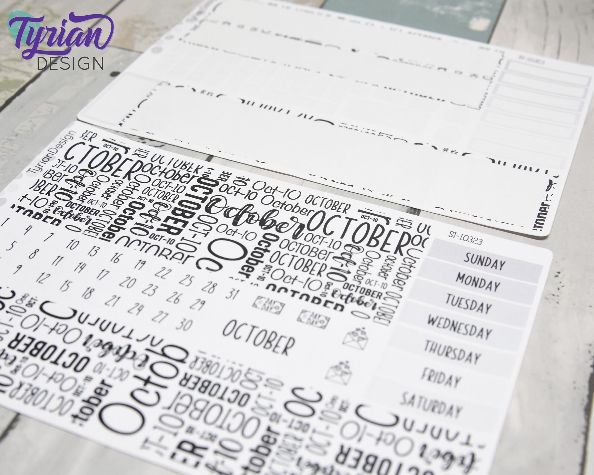 October Monthly Kit | Hobonichi Cousin | Monthly kit A5 | Simple Hobonichi Kit | Sunday or Monday Start | 5x7 Sheet | 47 Stickers