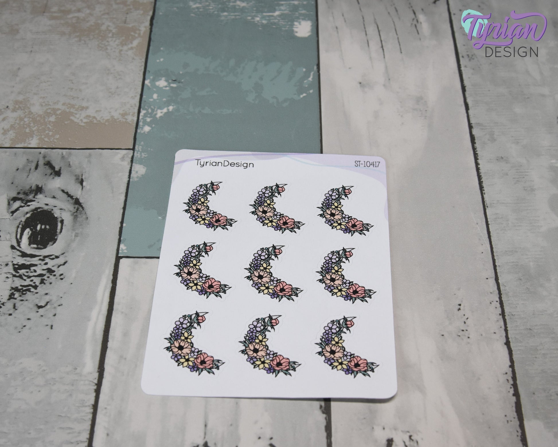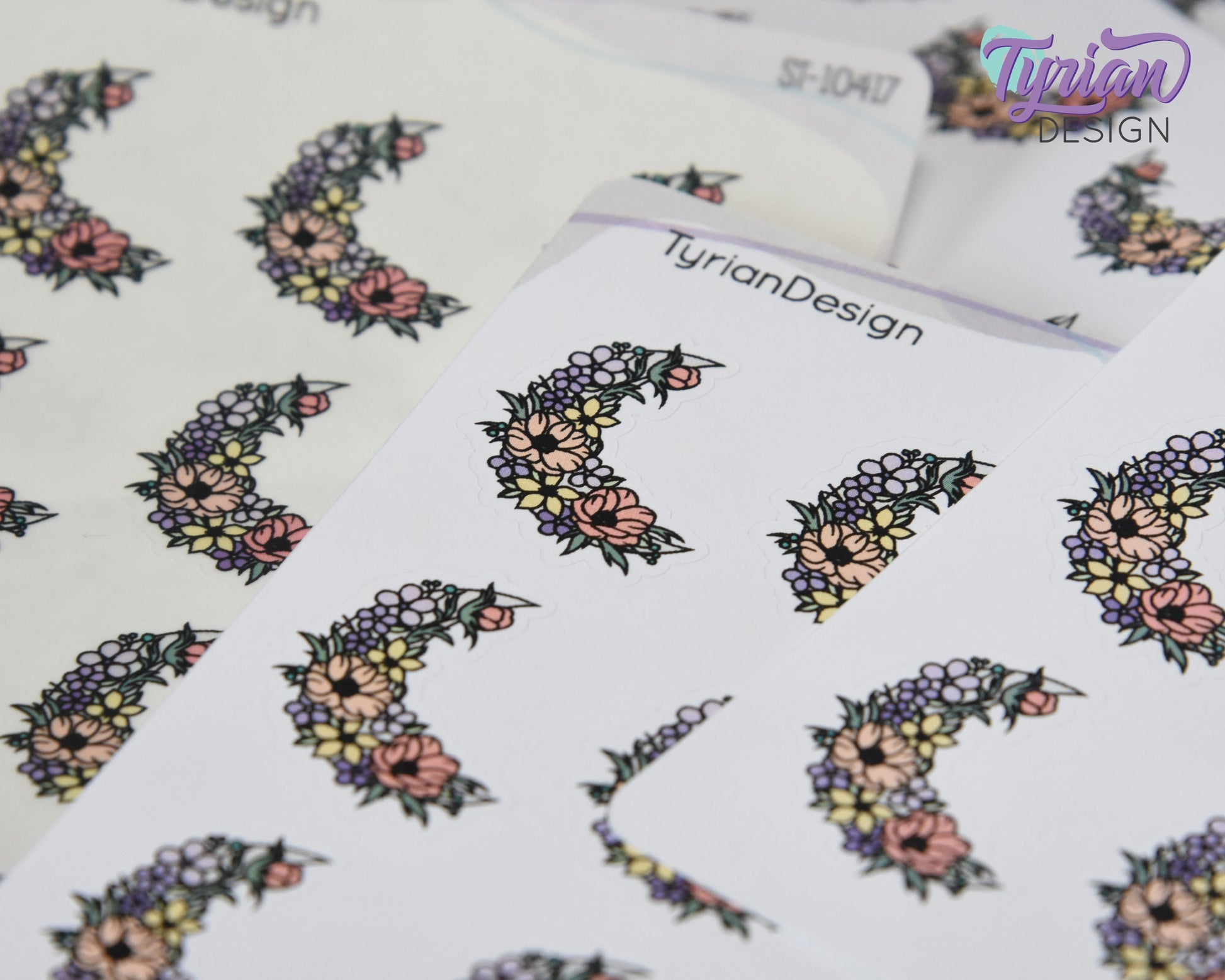 Pastel Flower Moon Stickers | Spring Flower Moon | 9 Stickers per sheet | 1 x 1.1" Sticker size | | 3.5 x 4.5" Sheet | White or Clear Matte