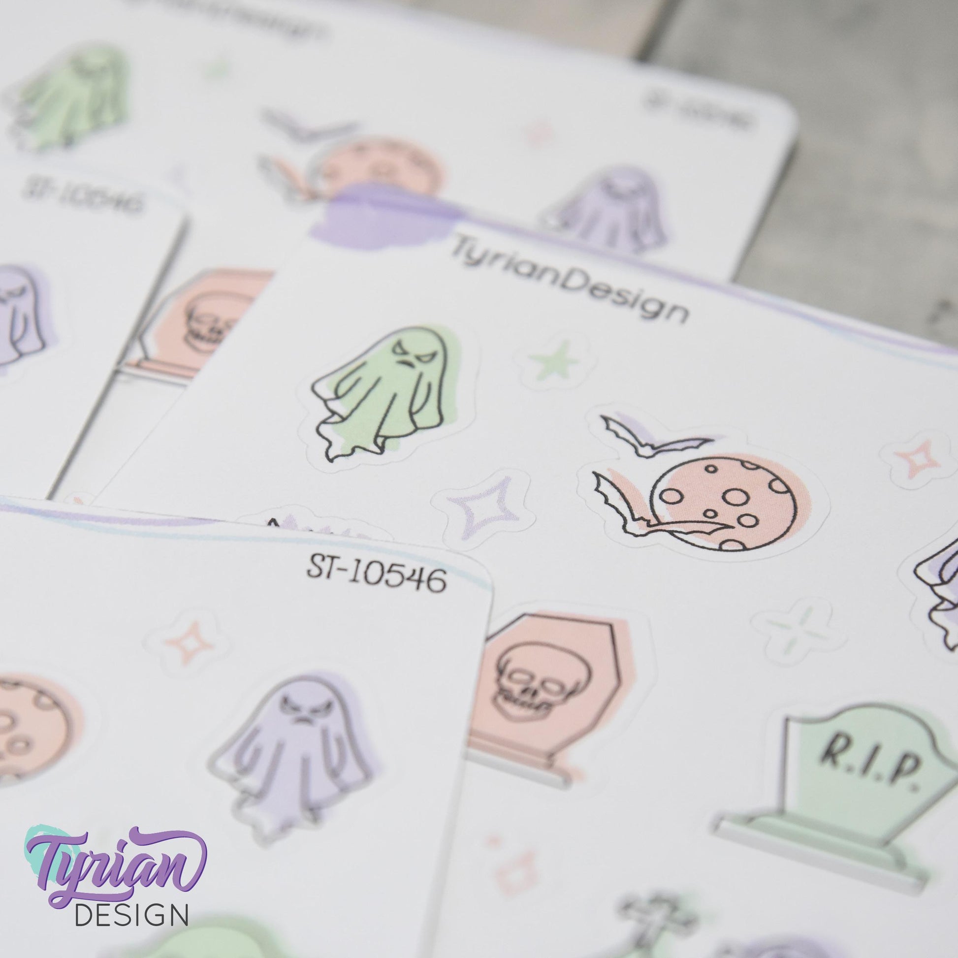 Pastel Halloween Doodles | Spooky Cute Planner & Journal Stickers | 16 Stickers | Haunting | White or Clear Matte | 3.5" x 4.5" Sheet