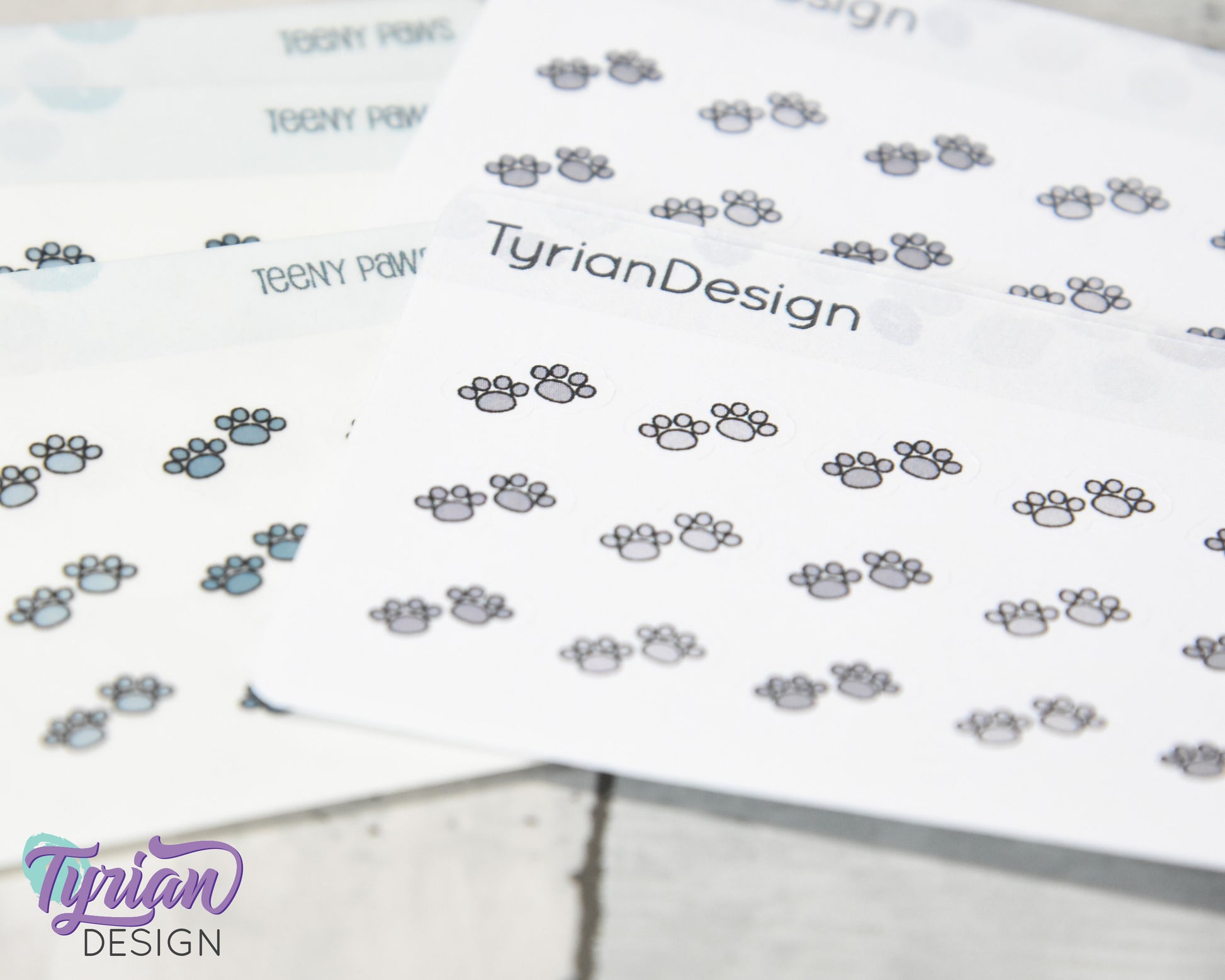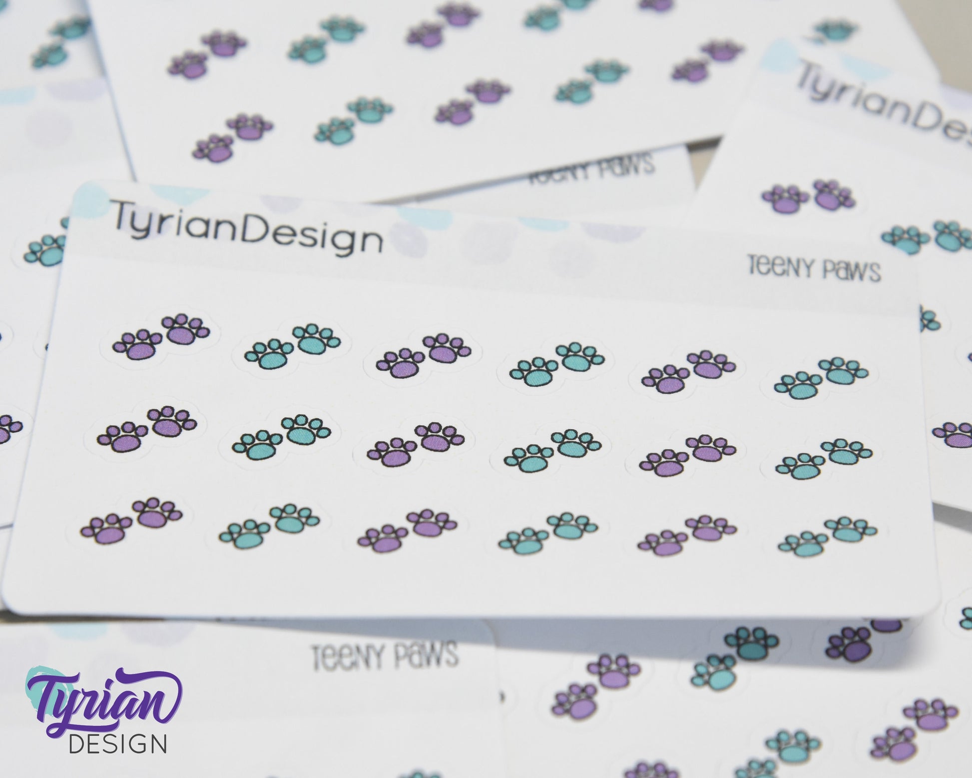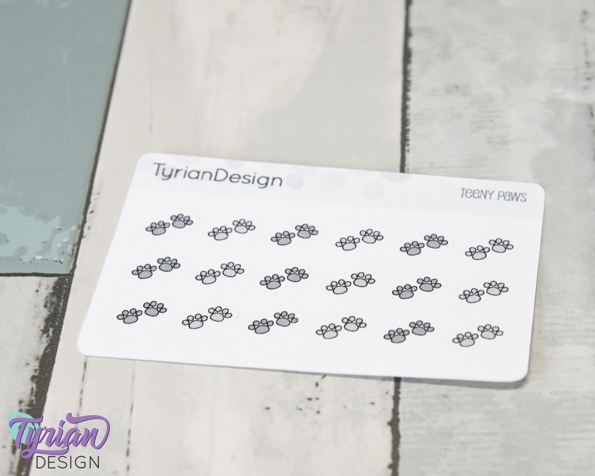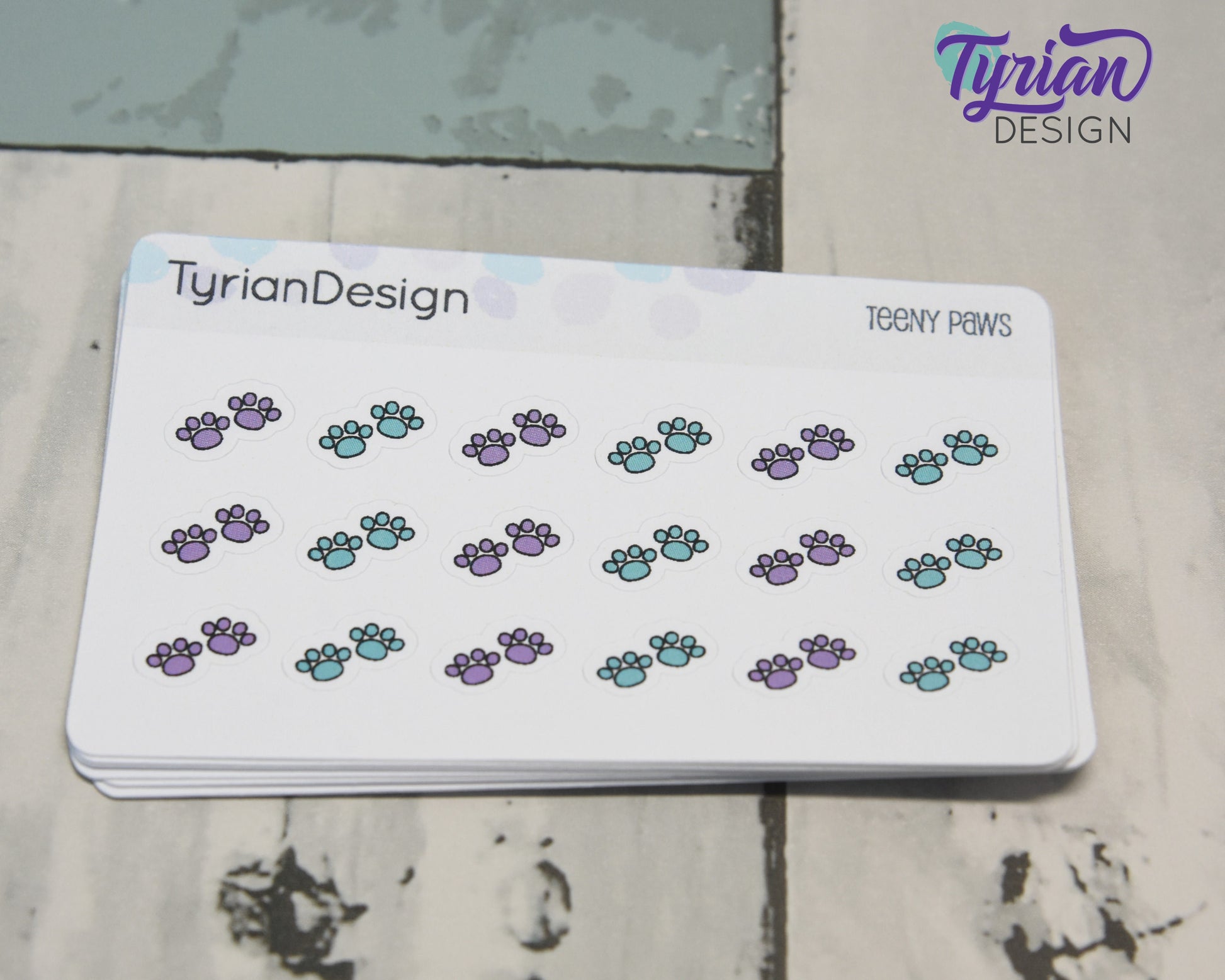 Paw Print Teeny Stickers | Tiny Paw stickers | 18 Stickers | .46" x .34" Each | 3.375" x 2.125" Mini Sheet | White or Clear