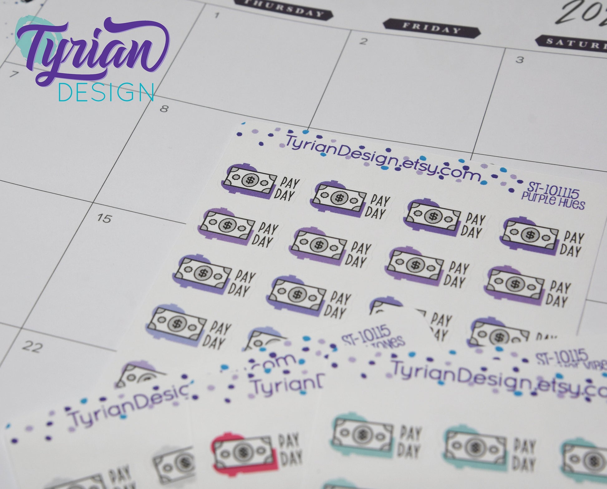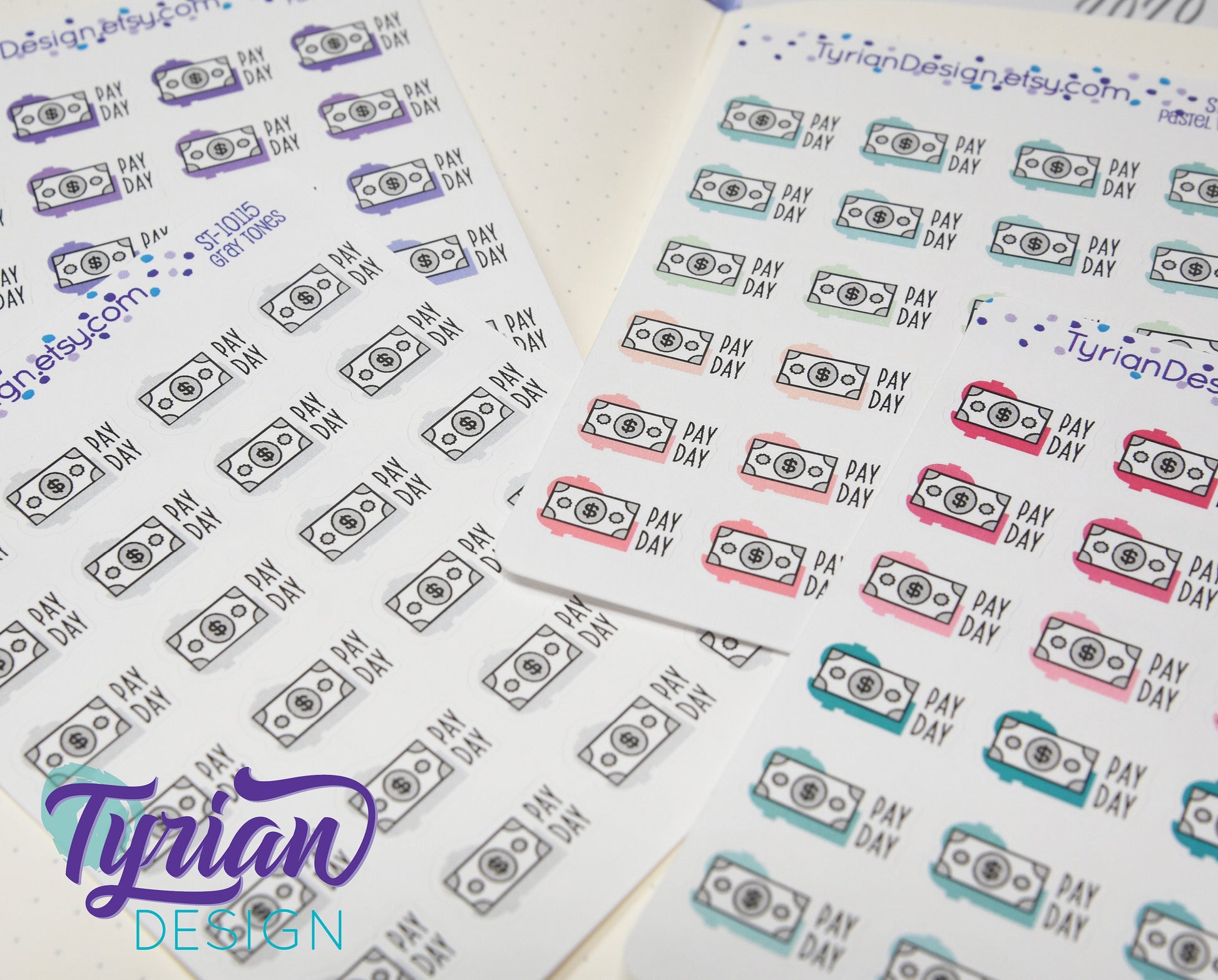 Pay Day Stickers. Different color options. Keep track of salary pay days with stickers Great for budget Planners, journals and calendars