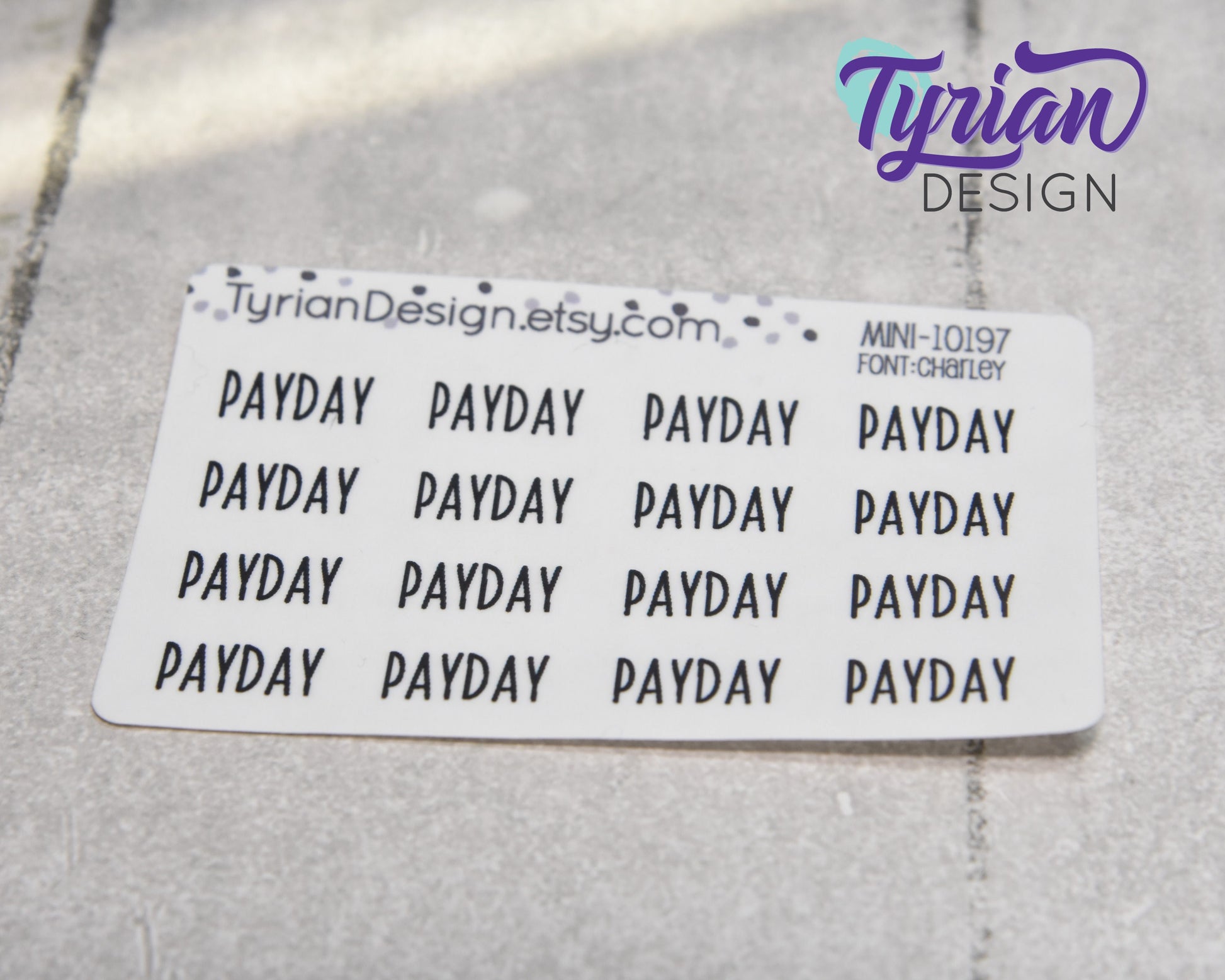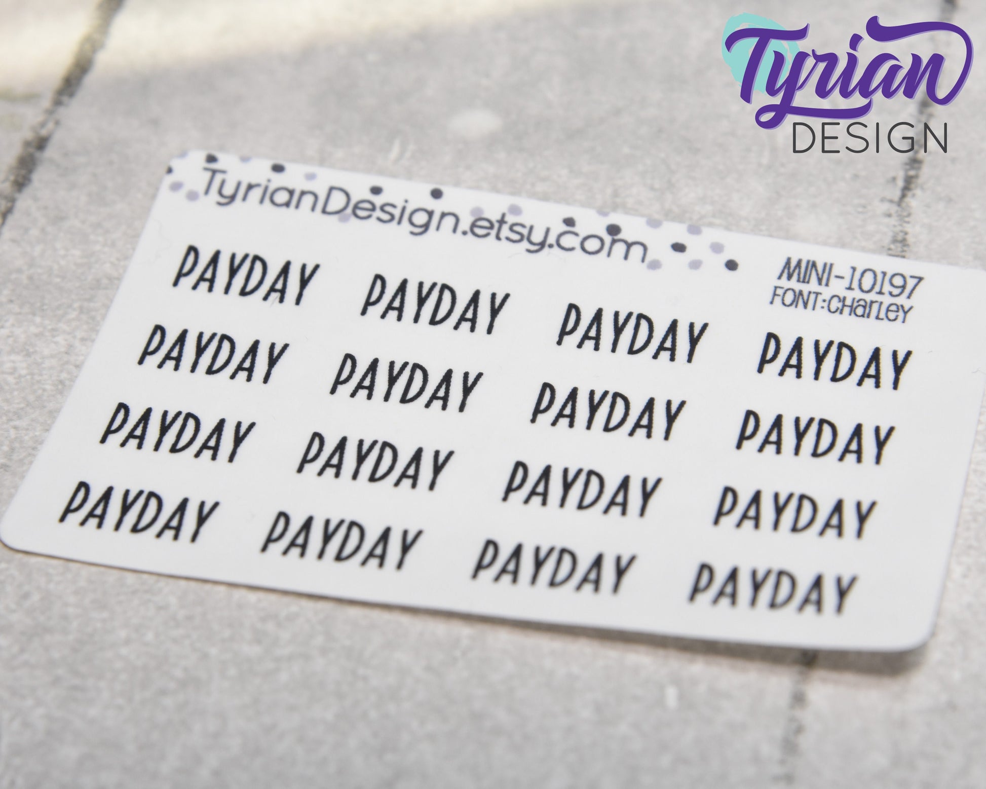 Payday Day Stickers Mini Sheet for Planners and Journals. Black Type, clear or white matte stickers - Pay check Stickers